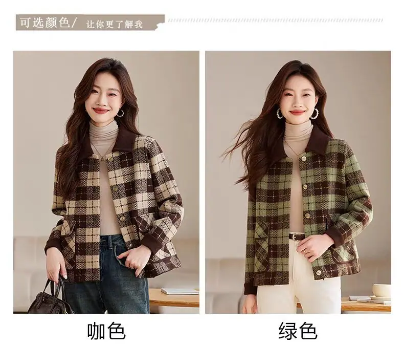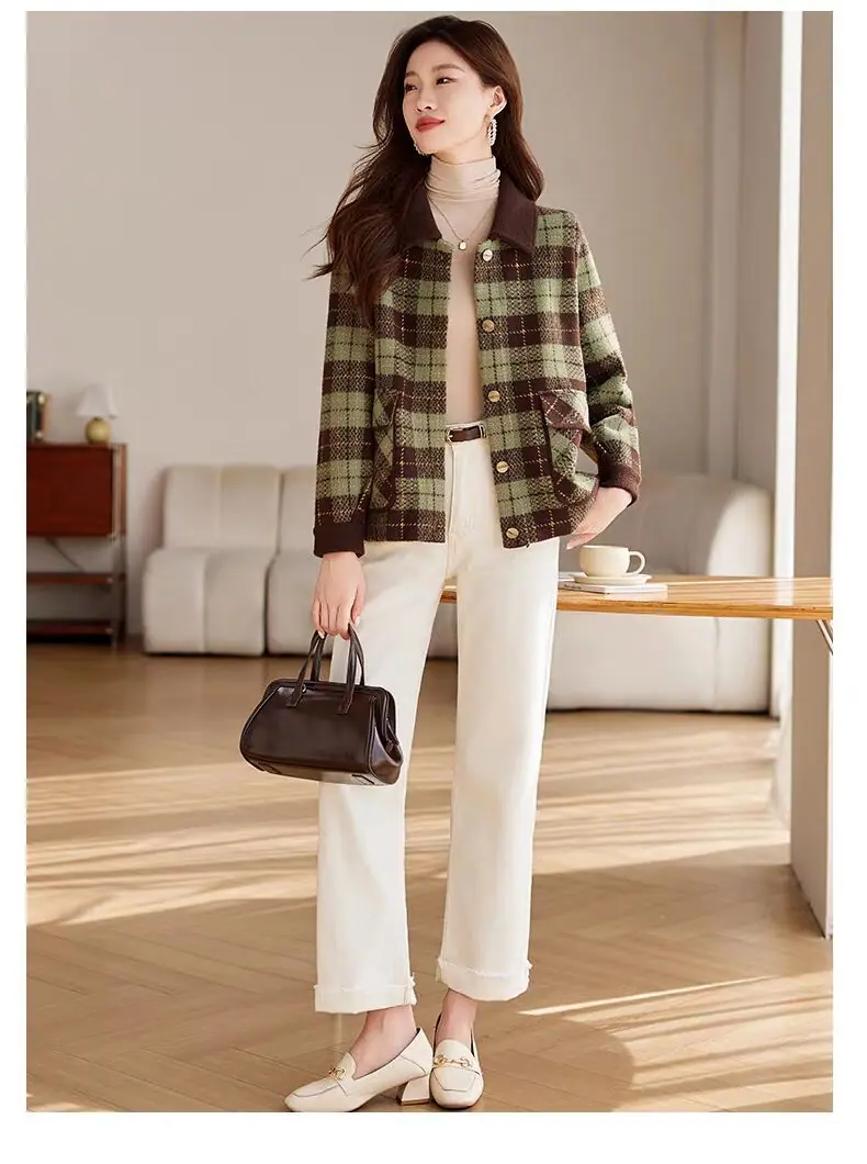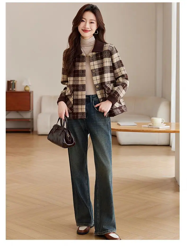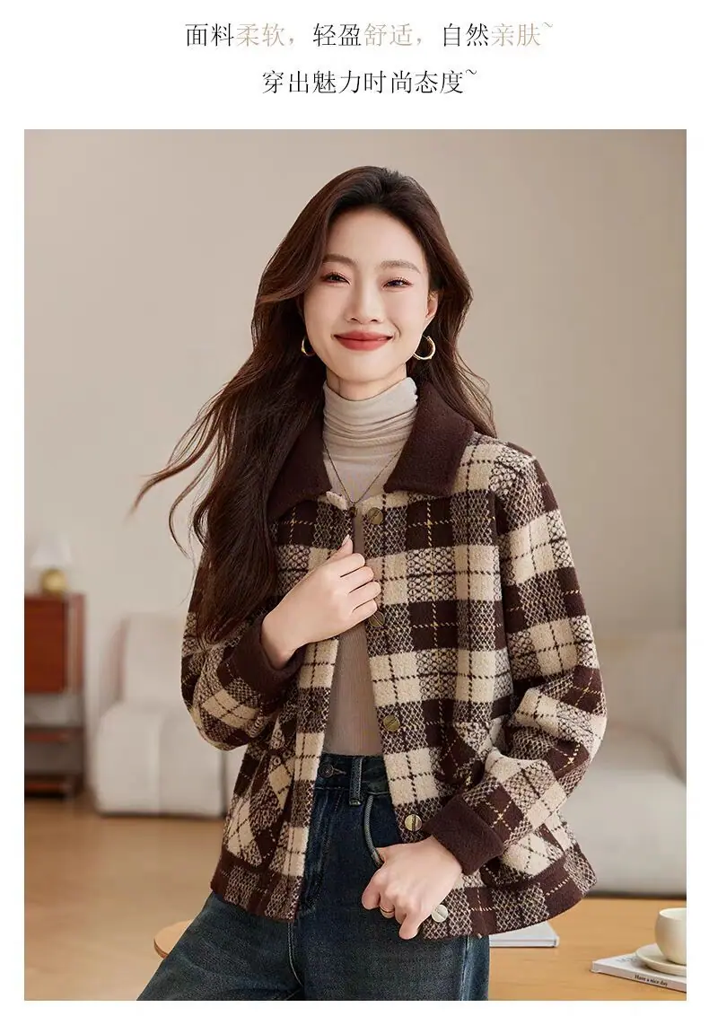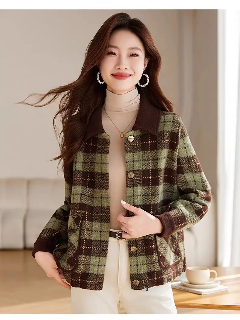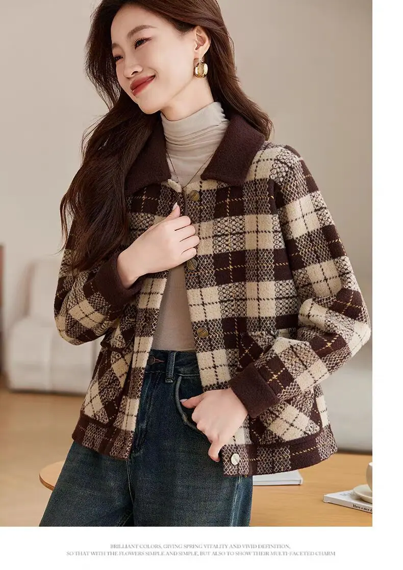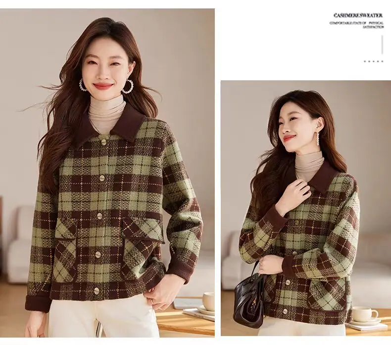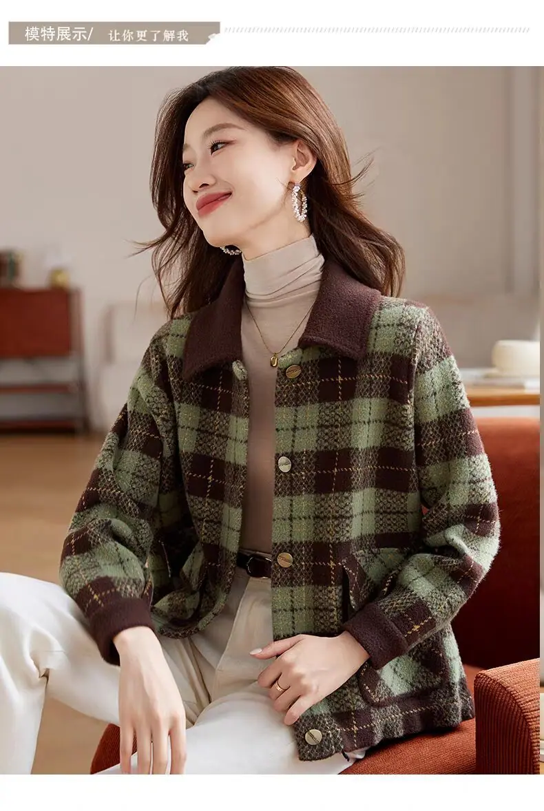 Abrigo cárdigan de punto tweed a cuadros estilo Chanel para mujer otoño invierno 2025 nuevo versátil cuello cuadrado corto cálido top marea