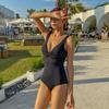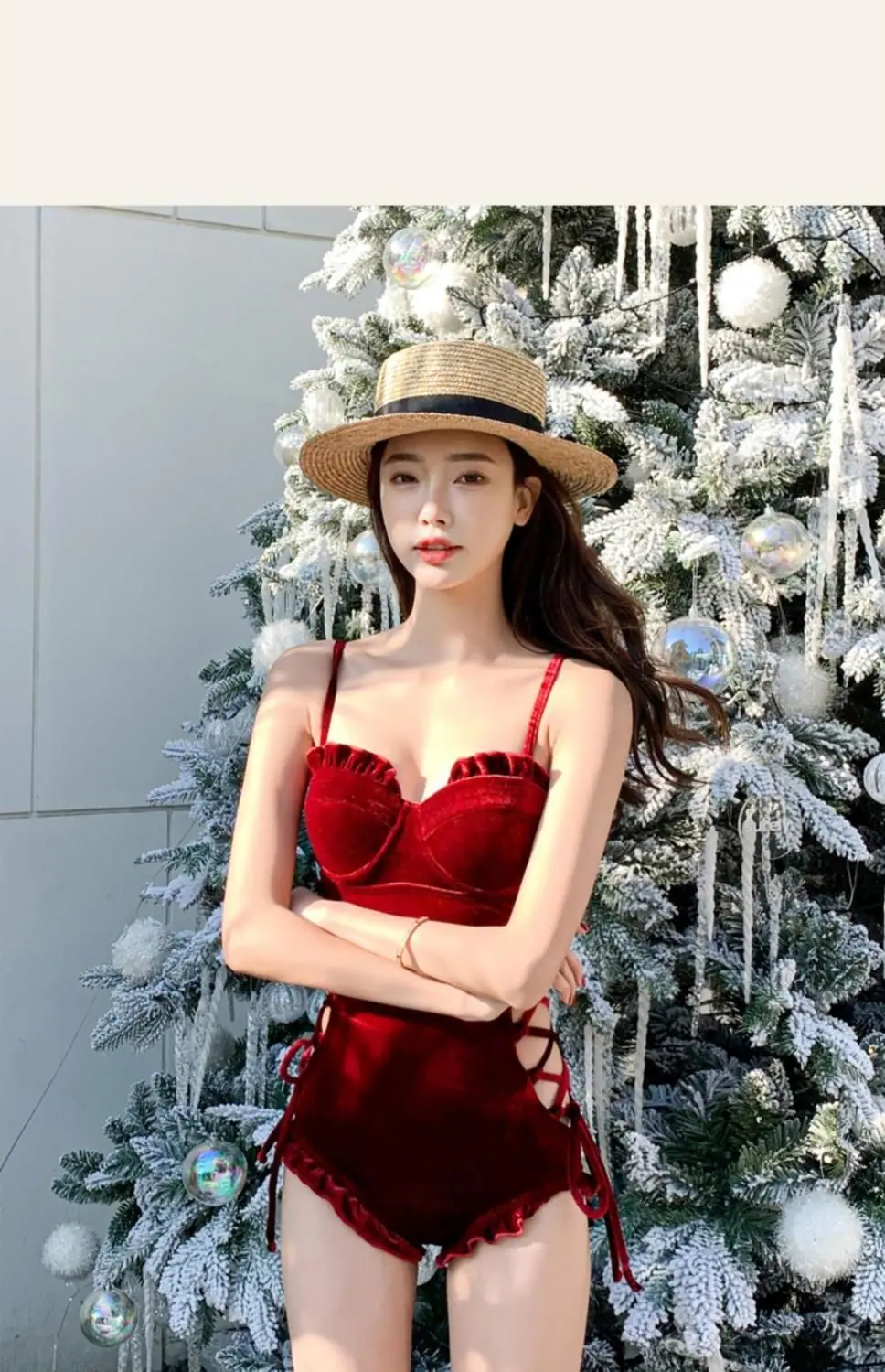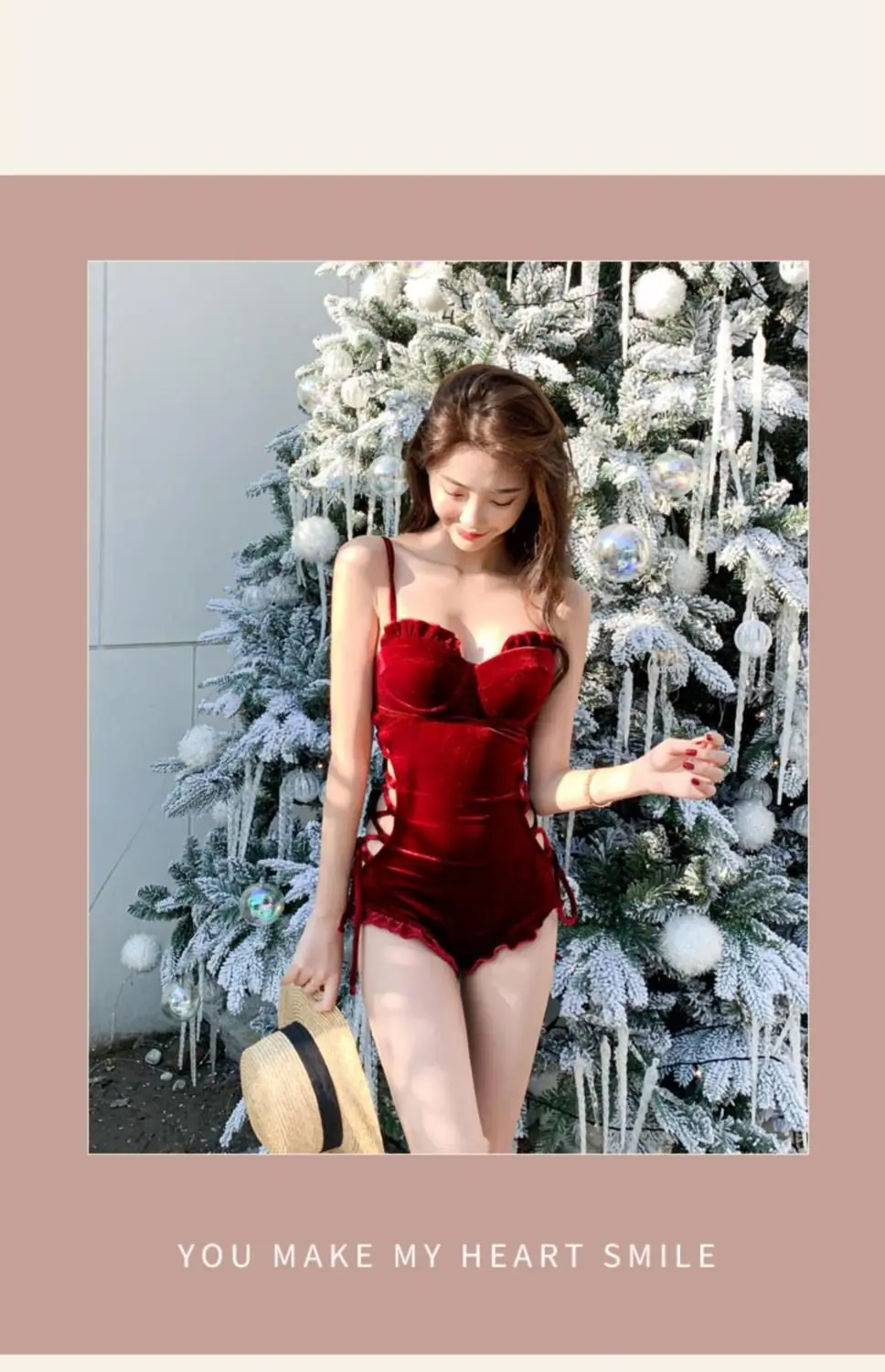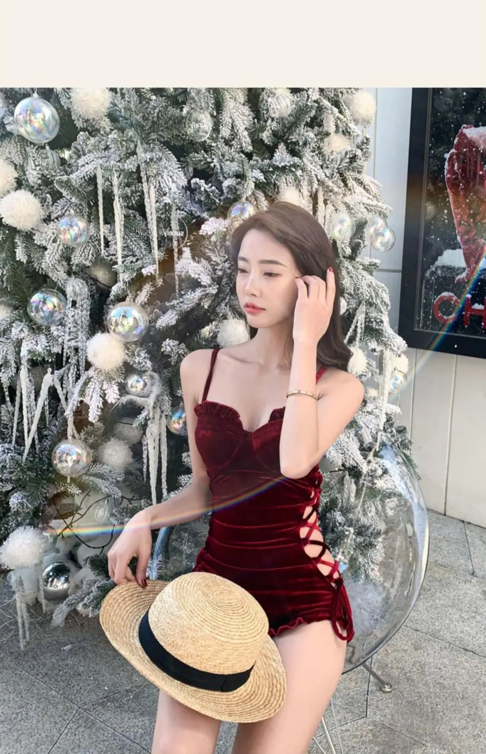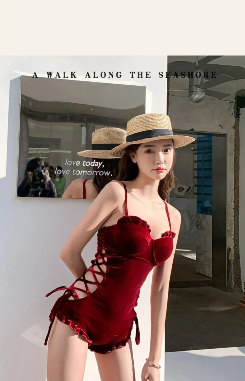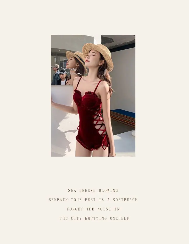 Traje de baño para mujer Verano 2022 Nuevo estilo Conservador Cubre vientre Adelgazante Sexy Tirantes Terciopelo Retro de una pieza Traje de baño para aguas termales