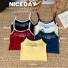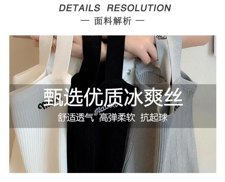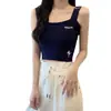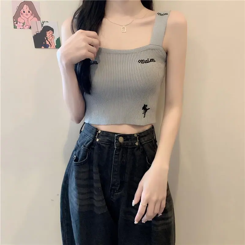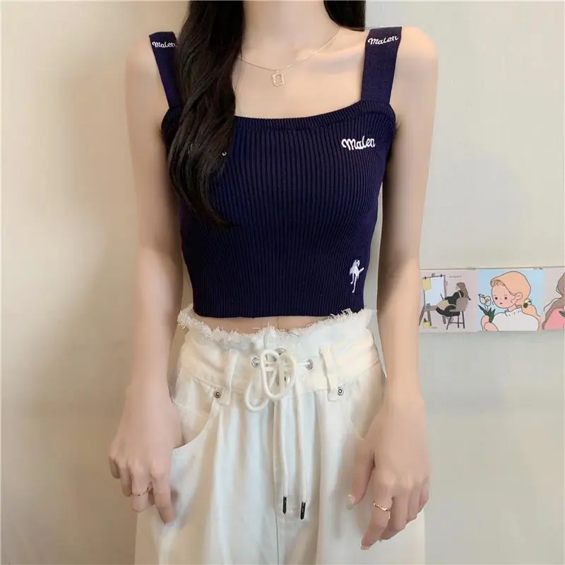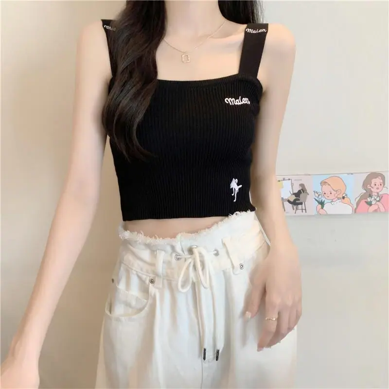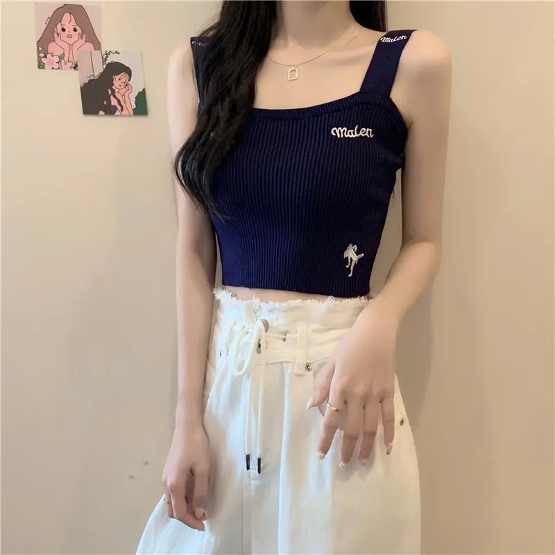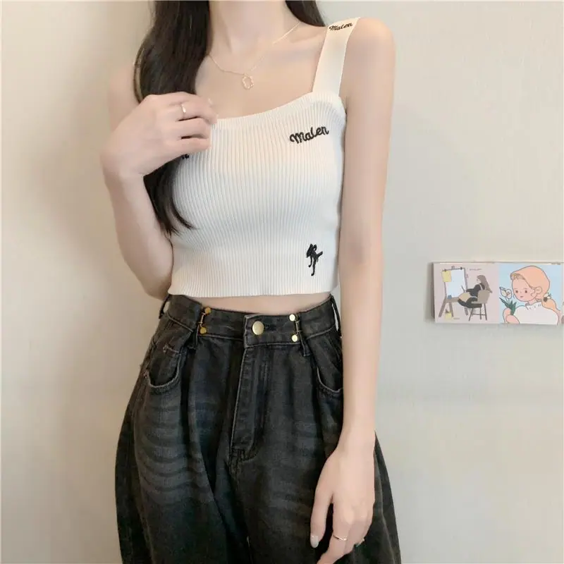 Camisola Bordada con Letras Verano 2023 Estilo Coreano Ropa Exterior Dulce Caliente Sin Mangas para Mujer Top Corto Tejido Base Interior