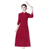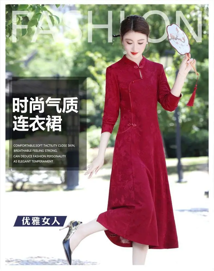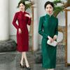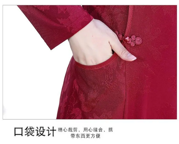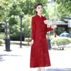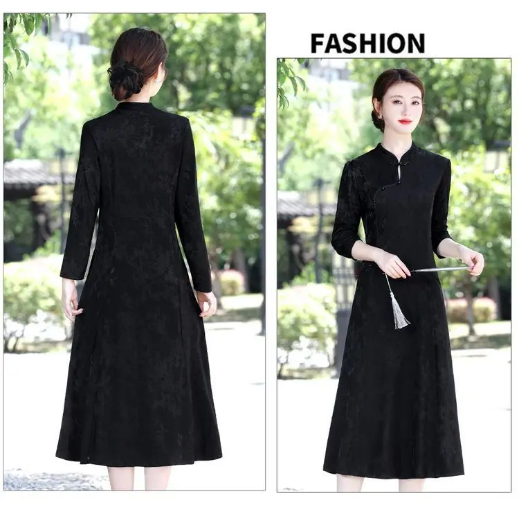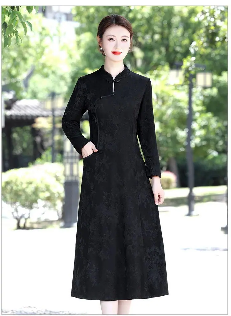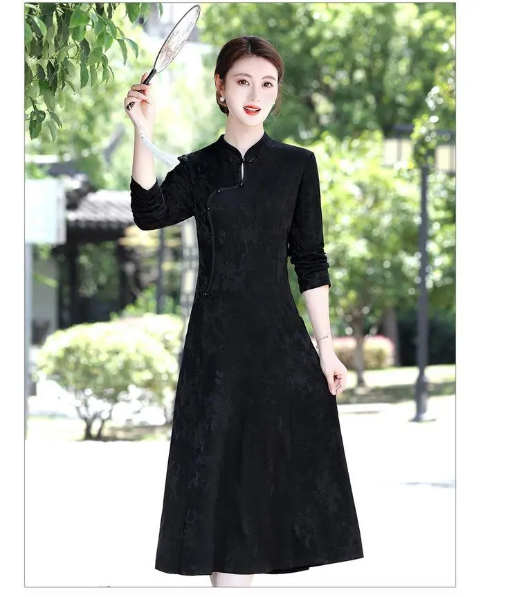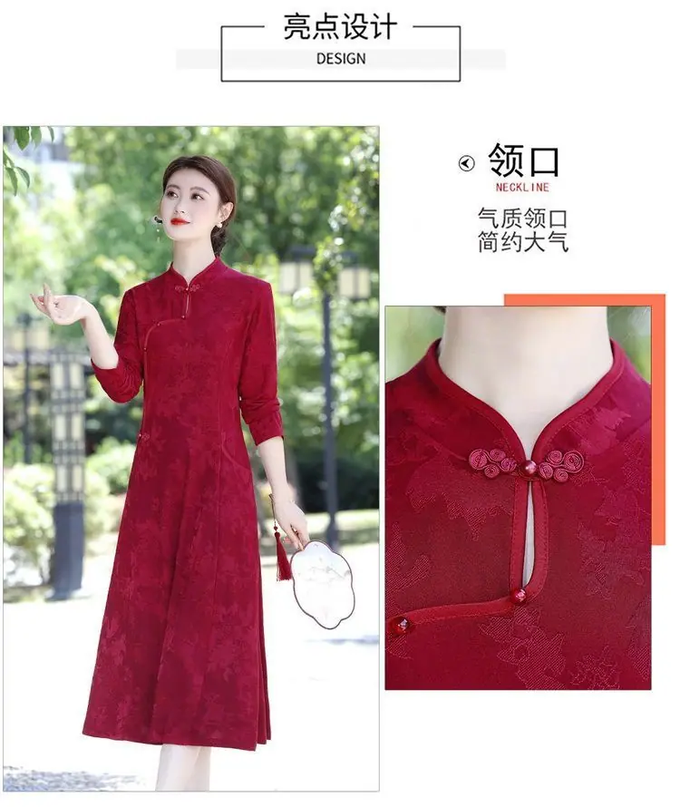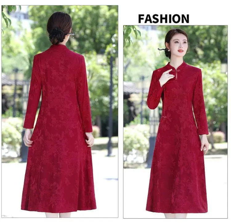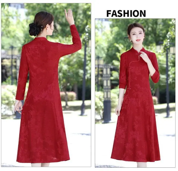 Vestido cheongsam para madre de mediana edad primavera y otoño temperamento 2025 nuevo vestido cheongsam mejorado de manga larga jacquard vestido adelgazante