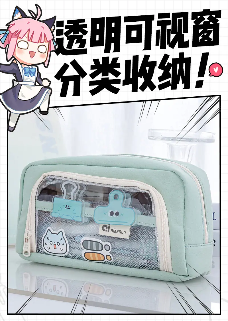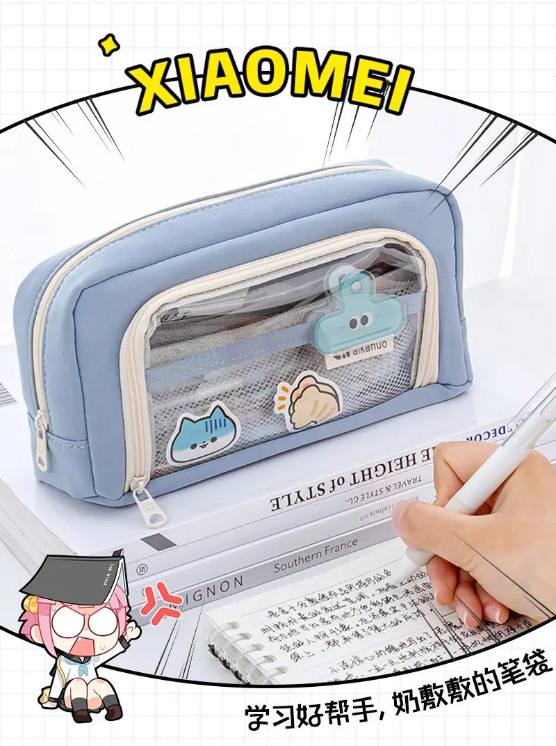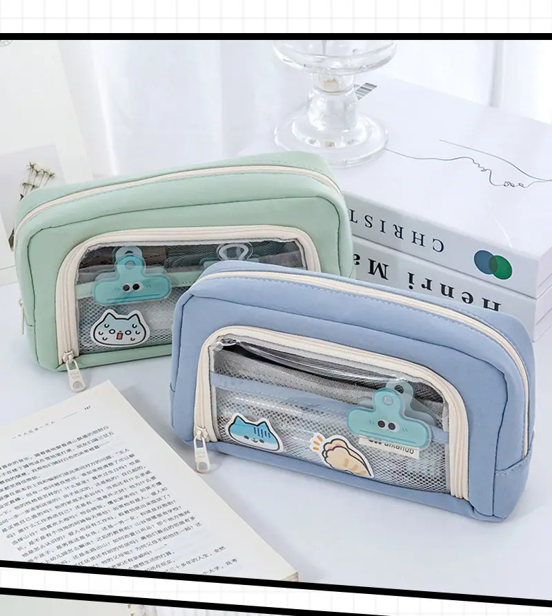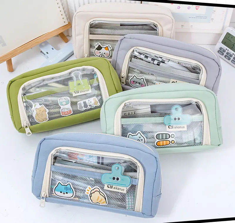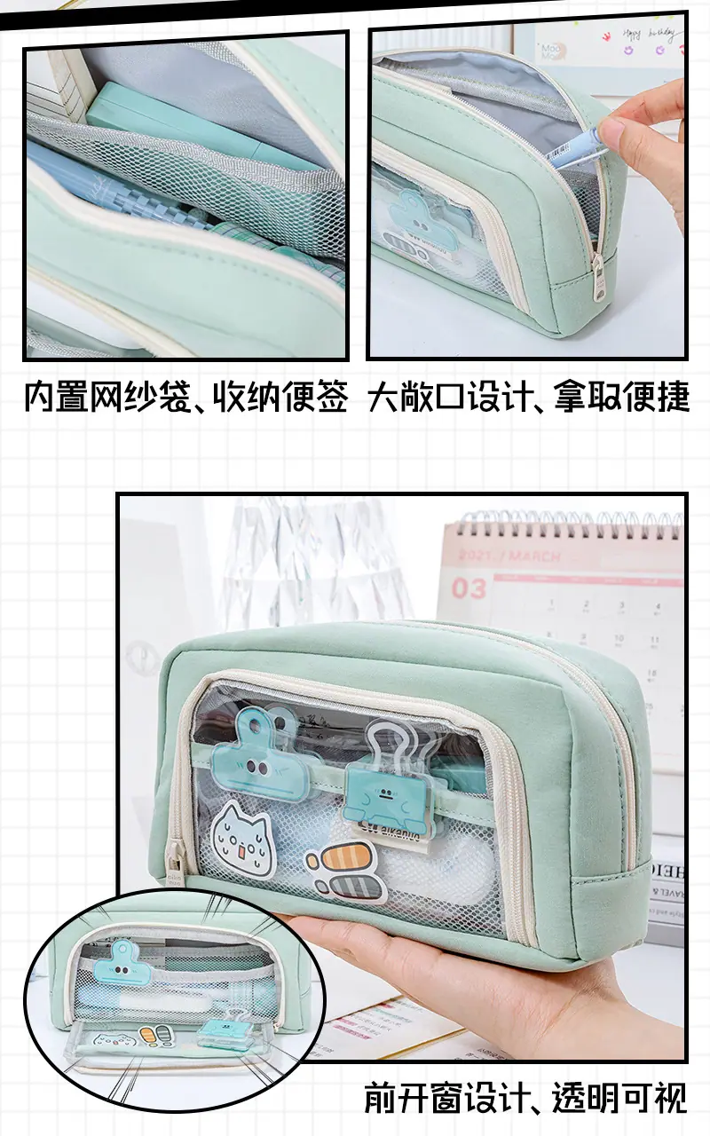 Bolsa de Lápices Transparente con Ventanas Gran Capacidad Estilo Ins Estuche de Papelería para Niñas de Secundaria Estuche de Lápices Sencillo Lindo de Alto Valor