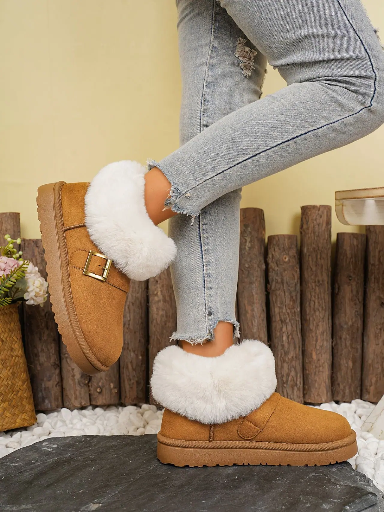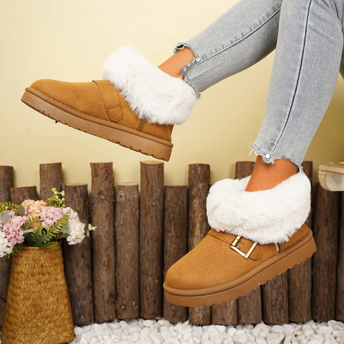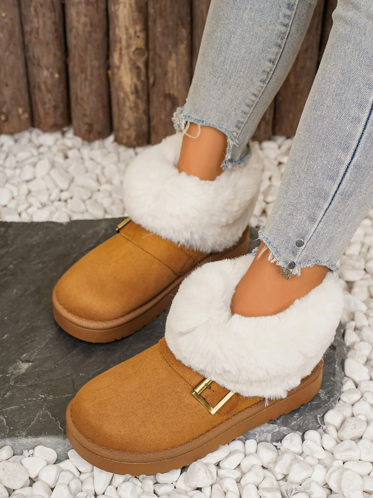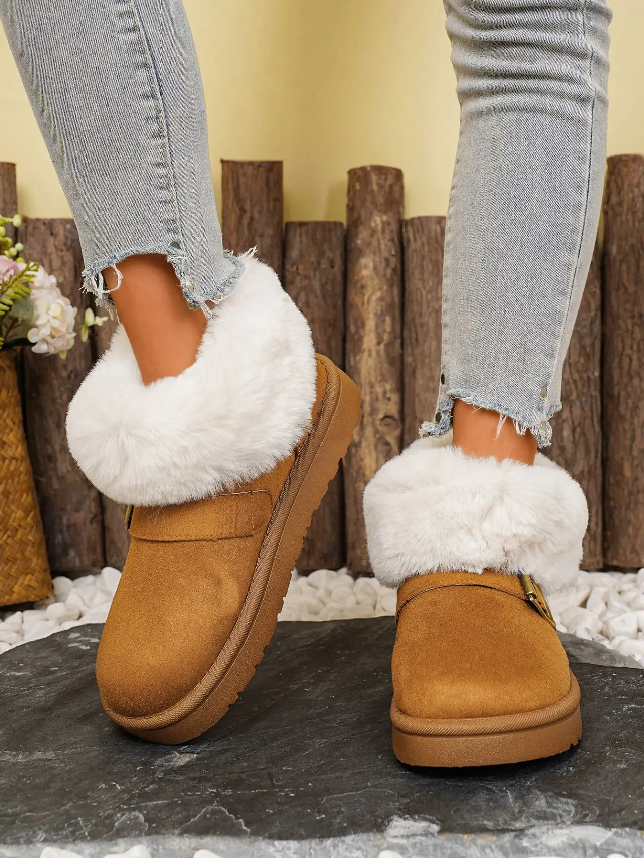 Botas de Nieve de Moda de Invierno 2025 Talla Grande Suela Gruesa Nuevo Estilo Boca de Piel Tubo Corto Forro Polar Zapatos de Algodón Engrosados y Ampliados Botas de Nieve
