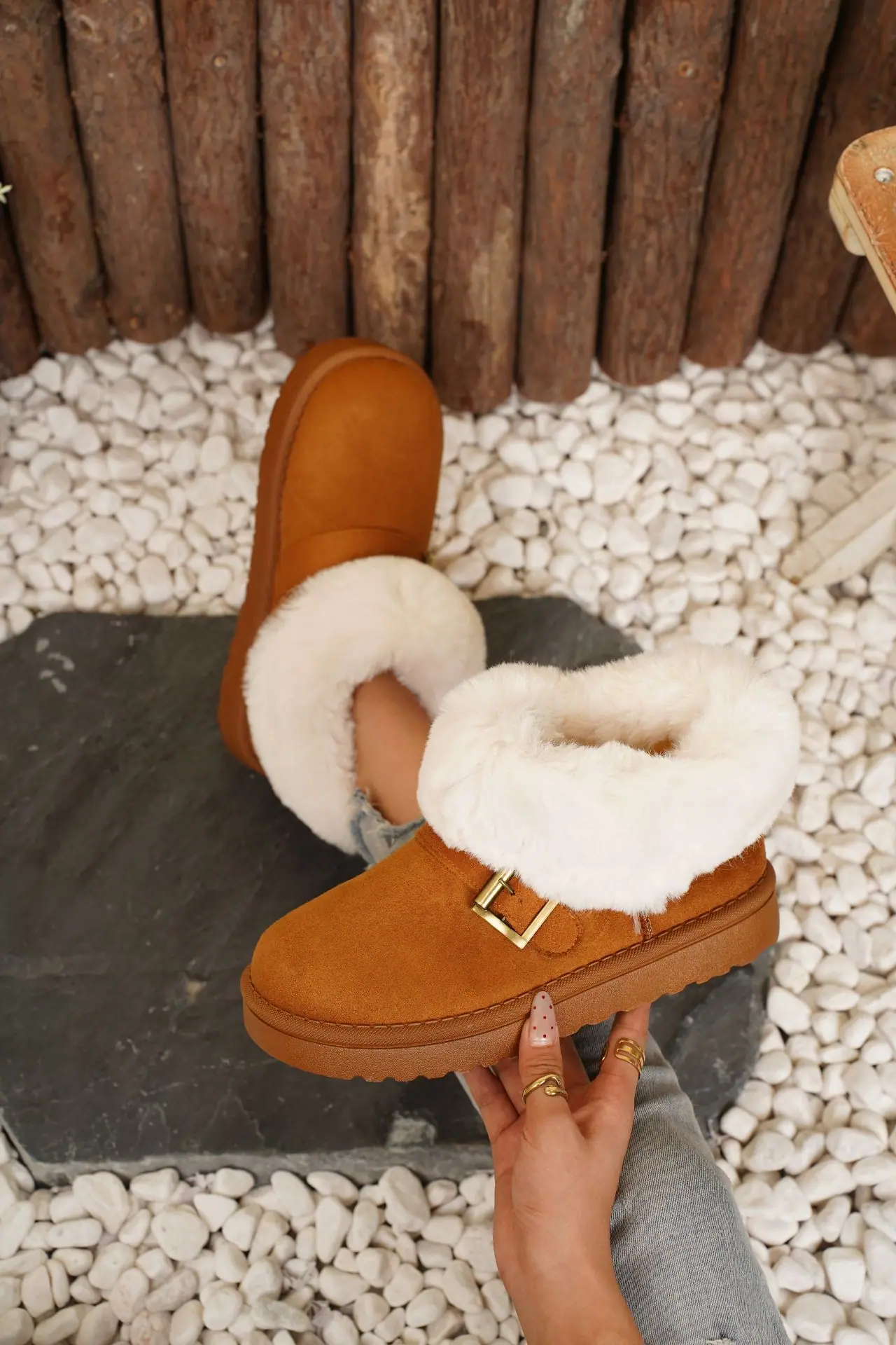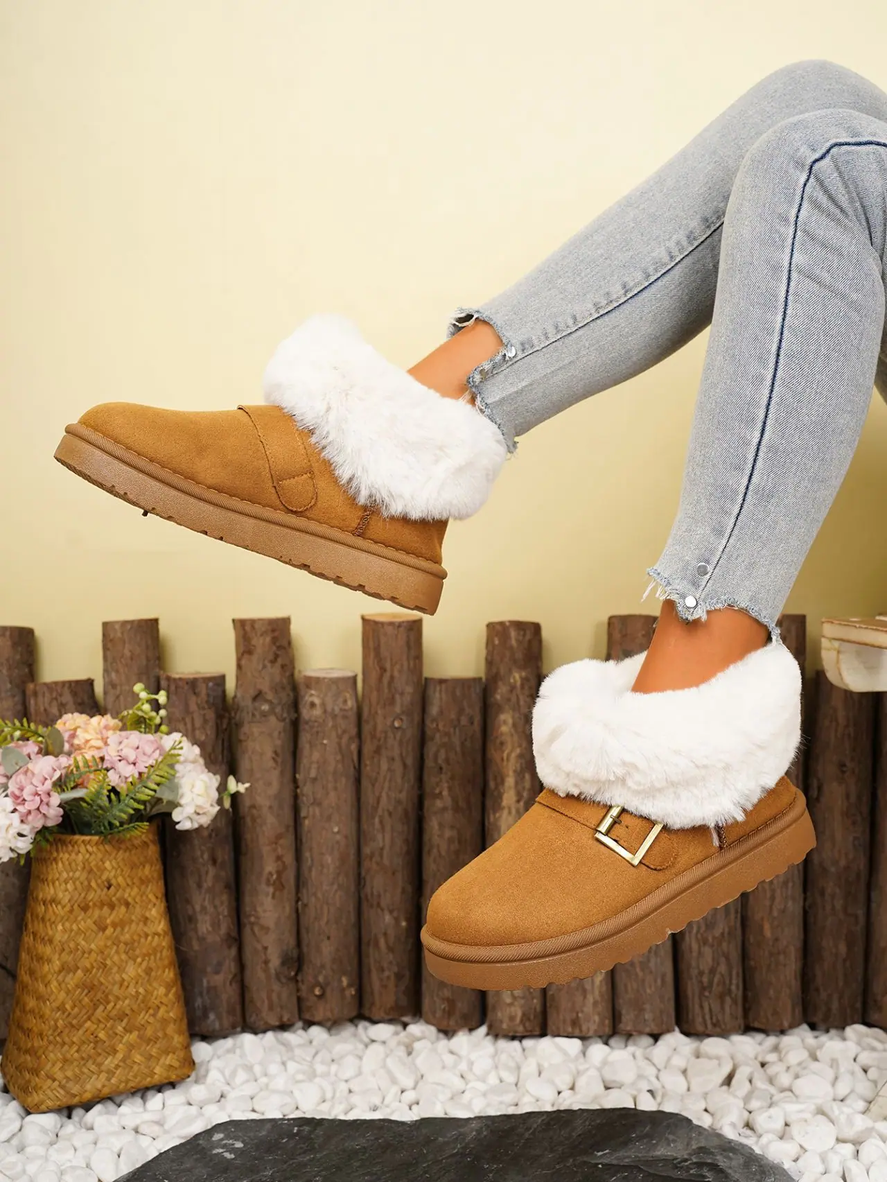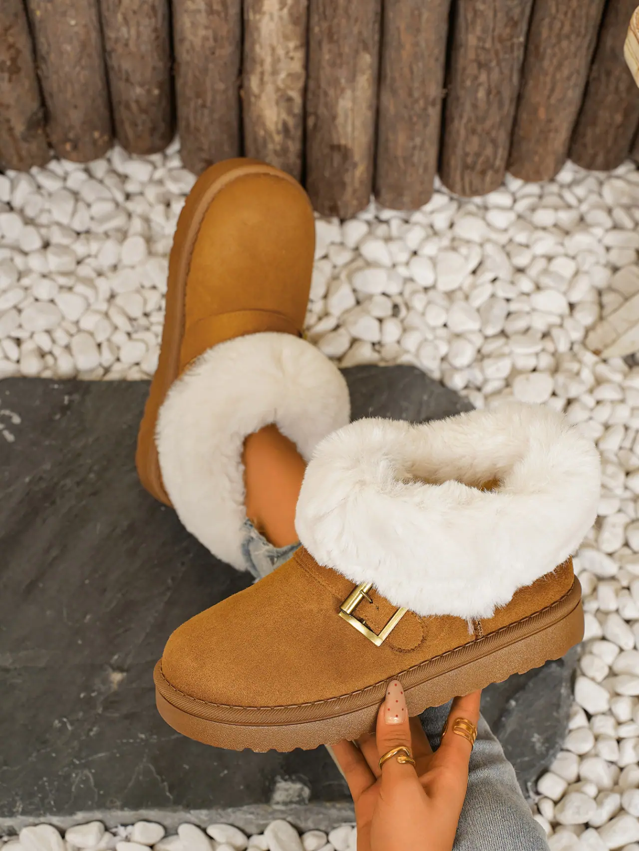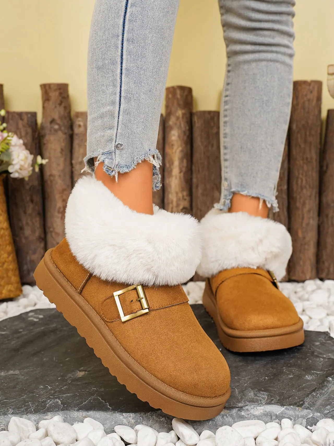 Botas de Nieve de Moda de Invierno 2025 Talla Grande Suela Gruesa Nuevo Estilo Boca de Piel Tubo Corto Forro Polar Zapatos de Algodón Engrosados y Ampliados Botas de Nieve