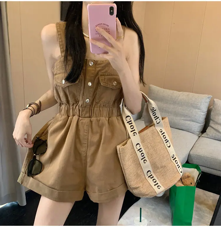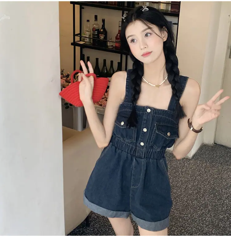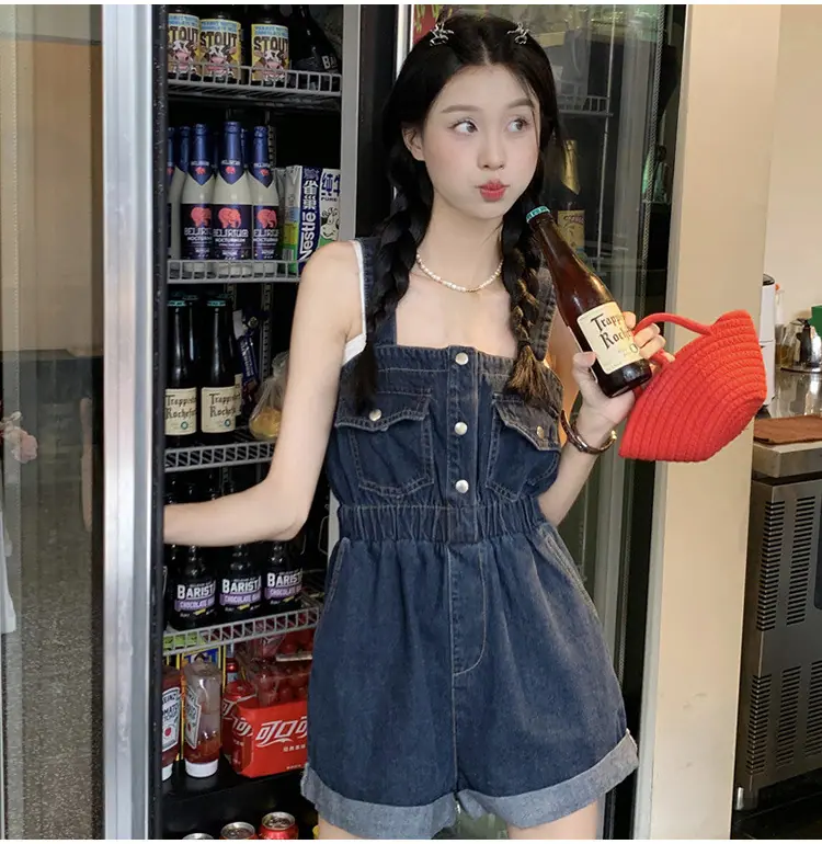 Jeans de Peto de Trabajo para Mujer Mono de Verano Pantalones Petite de Verano 2024 Moda Popular Nuevo Verano