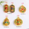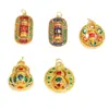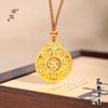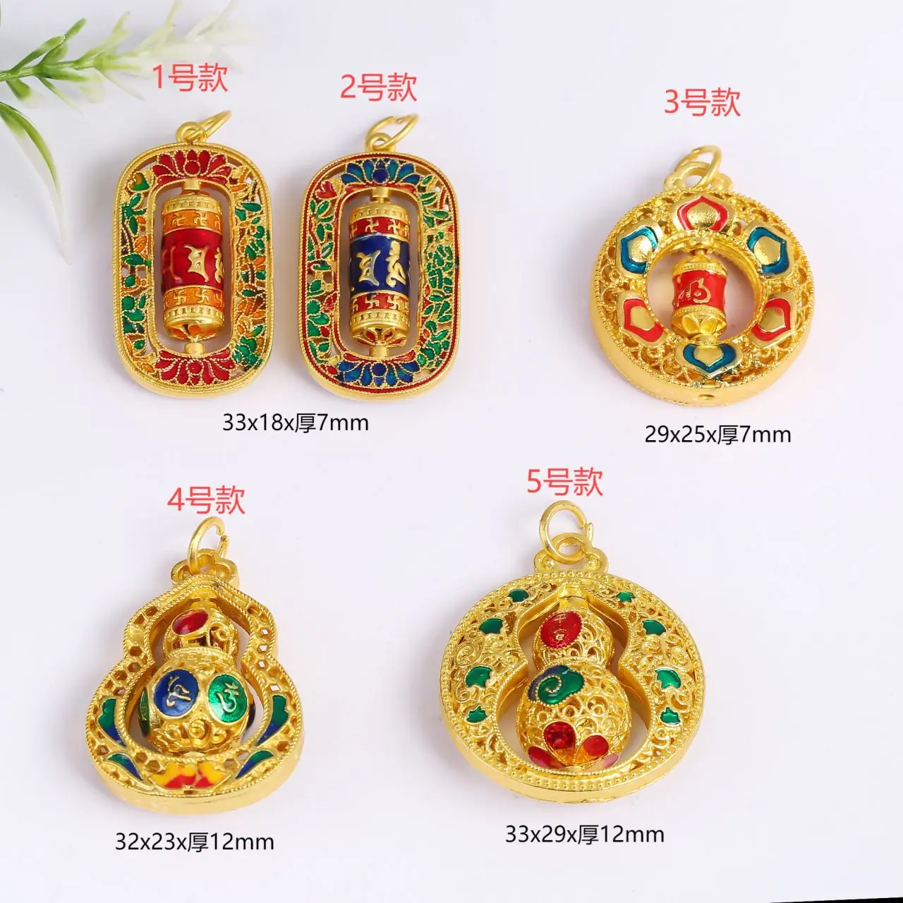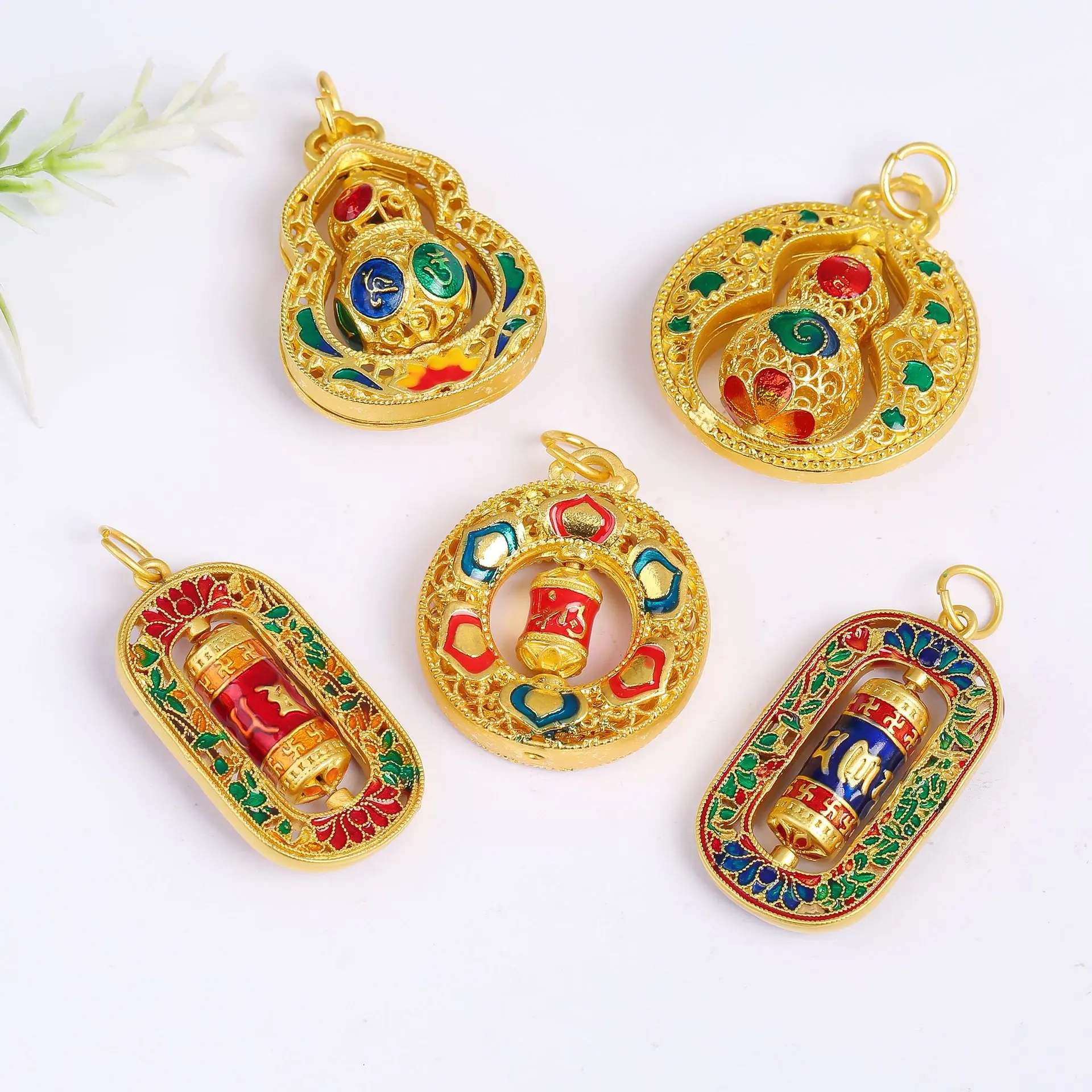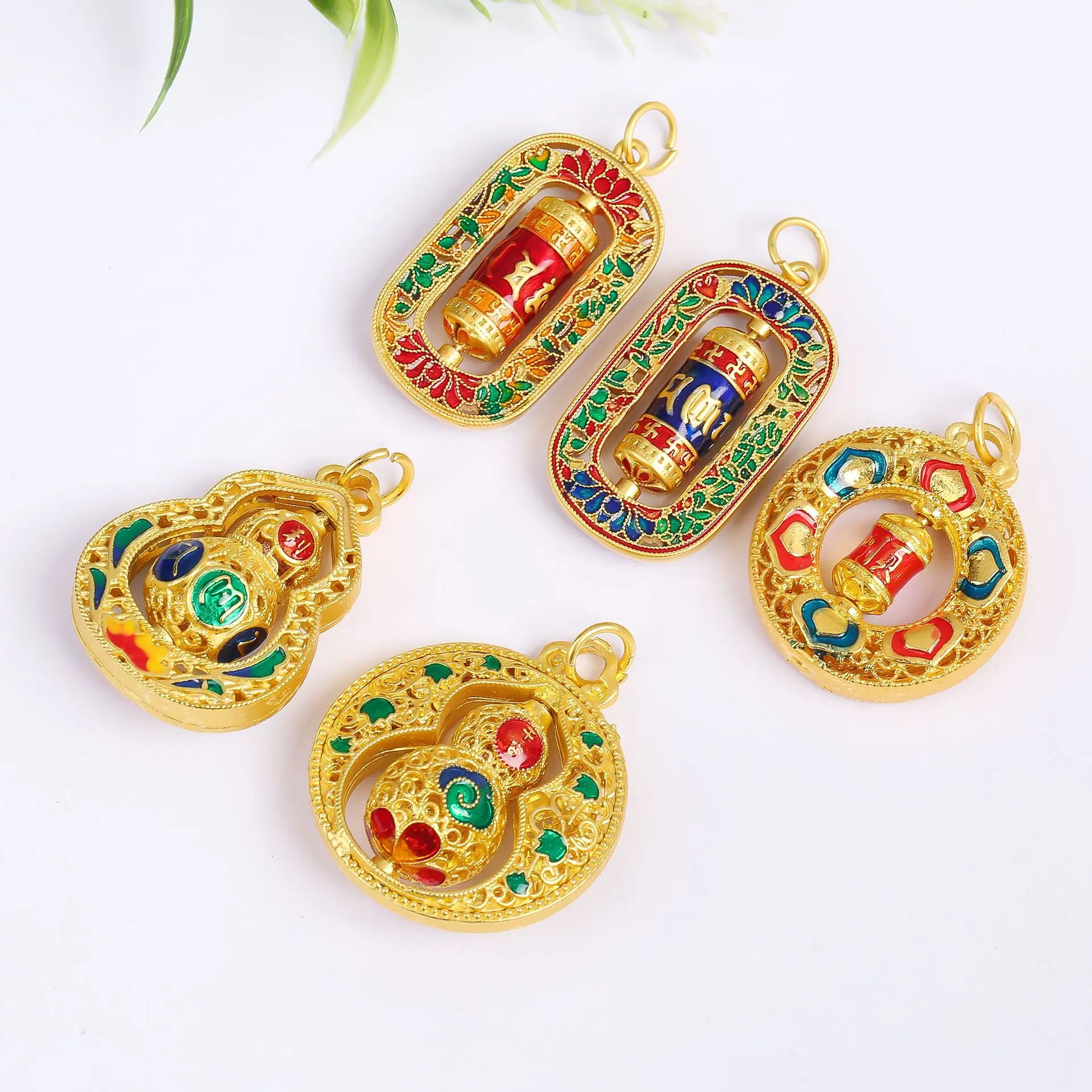 Antiguo Francés Oro Esmalte Gota de Aceite Giratorio Pieza de la Verdad de Seis Caracteres Colgante de Calabaza Auspiciosa Collar con Cadena de Lana Colgante