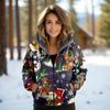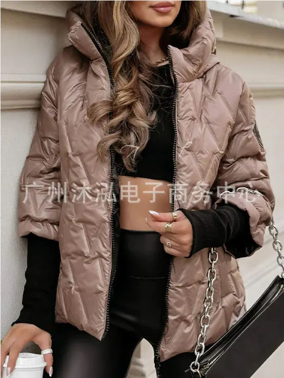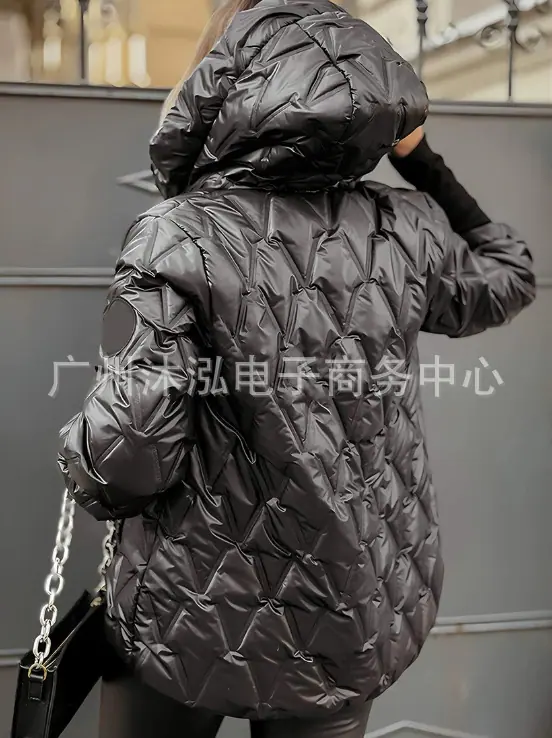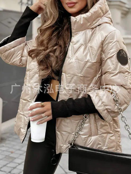 2024 Estación Independiente Otoño e Invierno Nueva Moda Sudadera con Capucha Moda Suelta Manga Larga Algodón Patchwork Chaqueta en Forma de V para Mujer