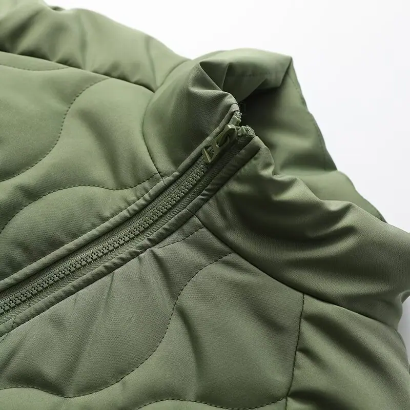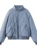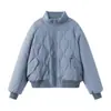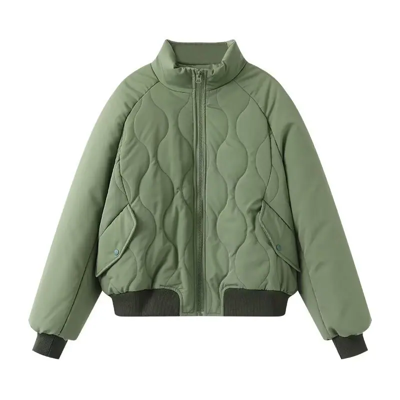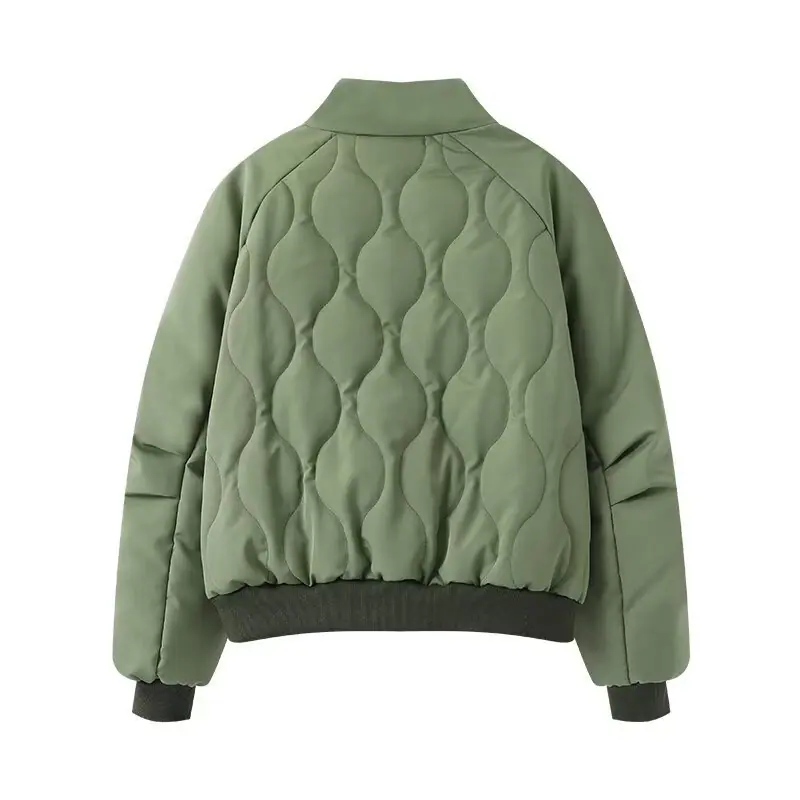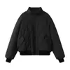 Chaqueta Bomber de Color Sólido para Mujer con Cuello Alto y Parche de Canalé, Abrigo de Algodón Otoño/Invierno 2025 Europeo y Americano Transfronterizo