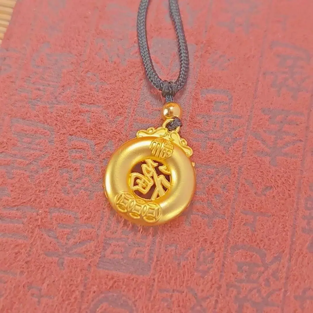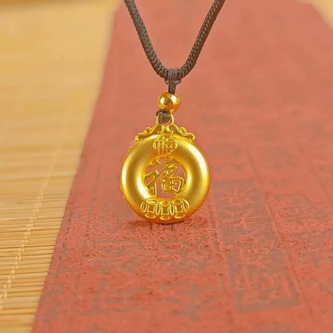 Collar de cuerda negra con colgante de Fu gordito de nuevo estilo de gran venta, lingote con el carácter Fu, regalo para novia, estilo chino