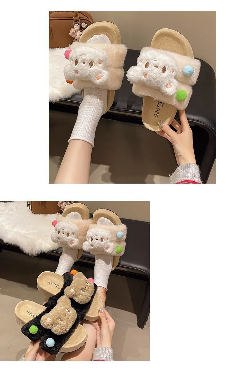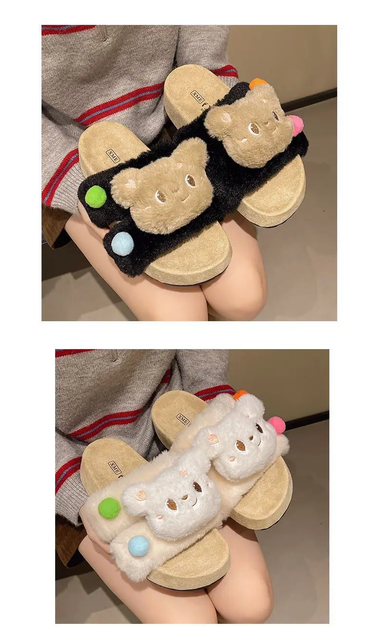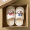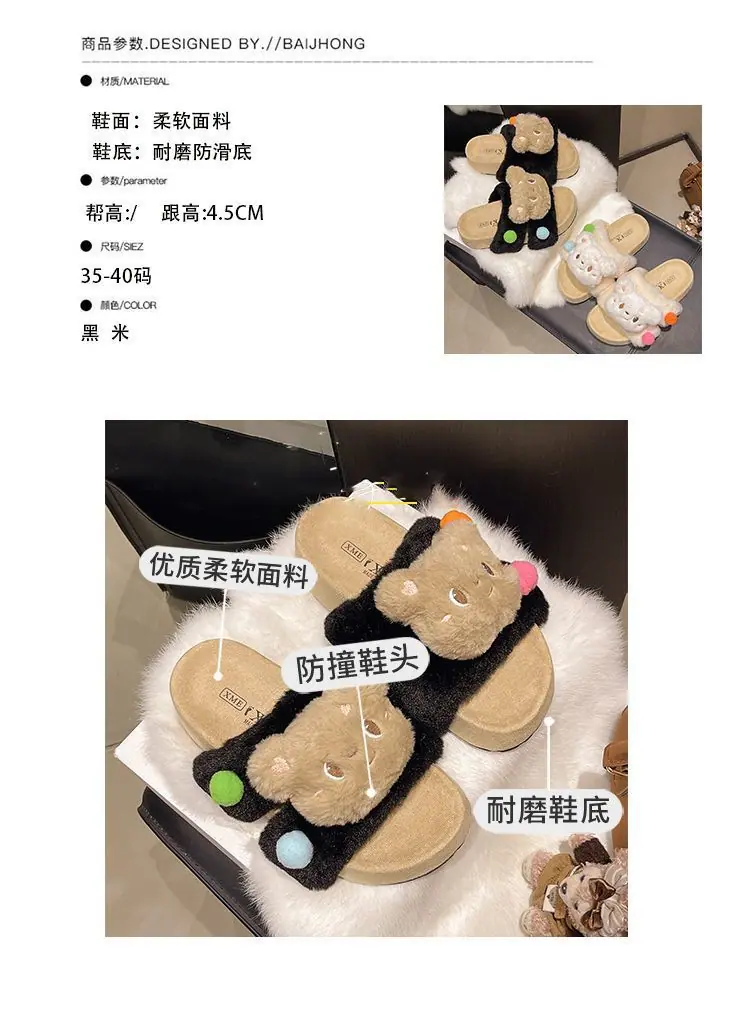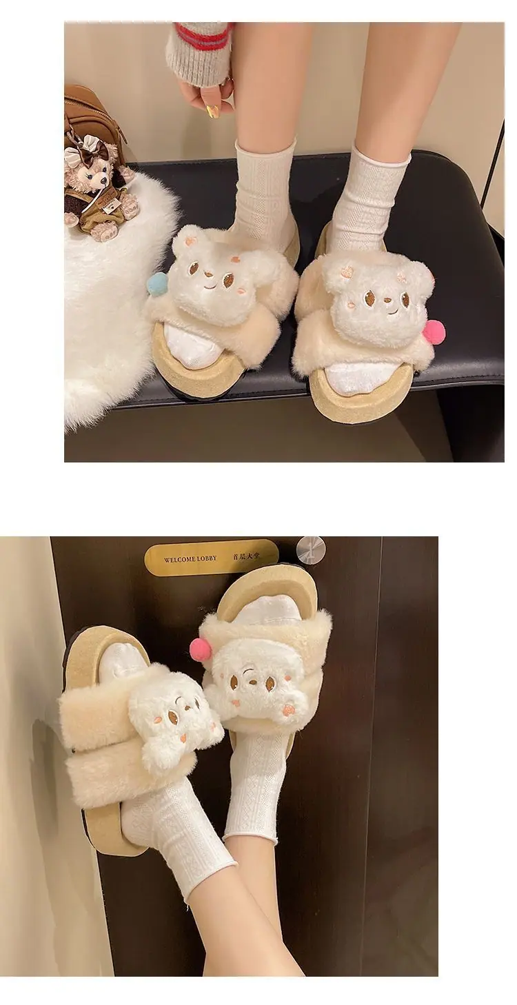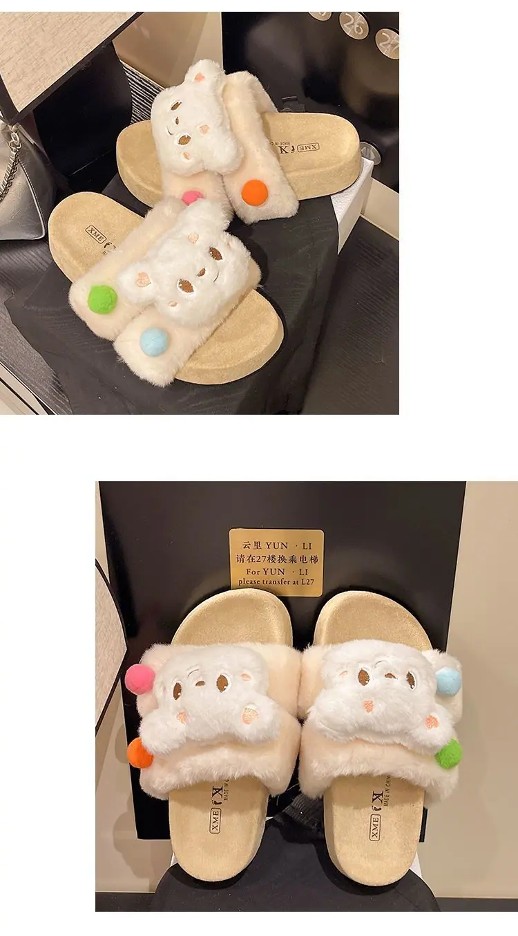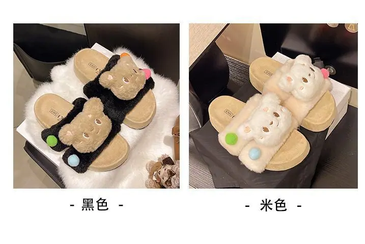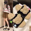 Pantuflas de Algodón Cómodas para el Hogar Lindo Oso de Dibujos Animados Pantuflas Peludas Ropa de Exterior para Mujer 2025 Otoño/Invierno Nuevo Casual Perezoso