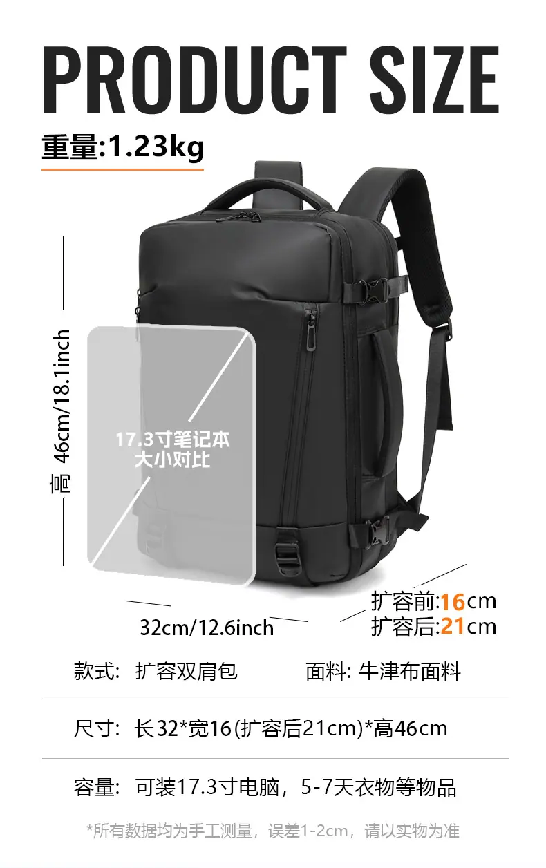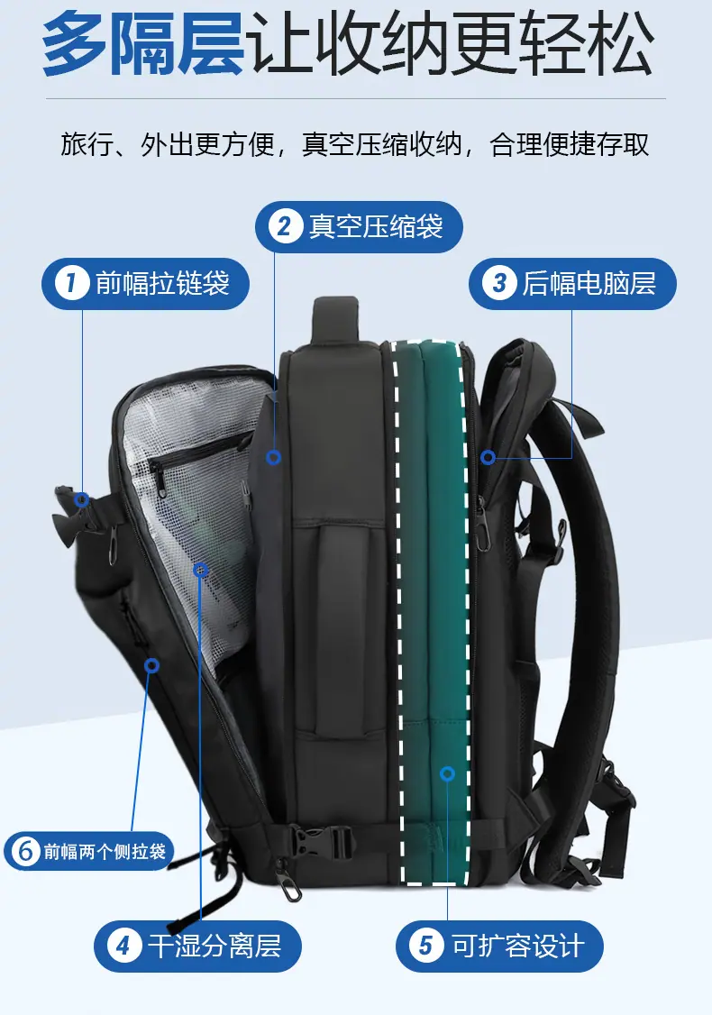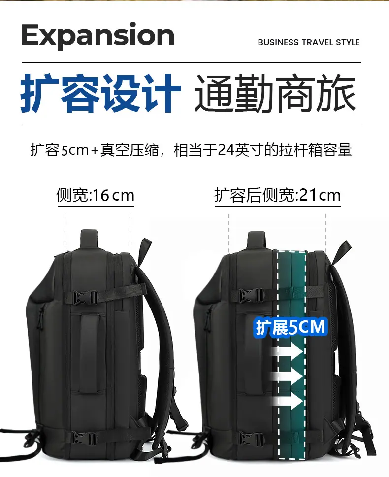 Mochila Casual al Vacío Hombres Mujeres Gran Capacidad Impermeable Bolsa para Laptop Mochila Multifuncional Equipaje Viaje de Negocios Expandible