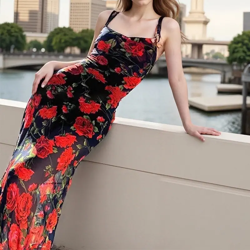 Verano 2025 Nuevo Ropa de Mujer de Moda Europea y Americana Estilo Pastoral Temperamento Fresco Adelgazante Vestido de Tirantes Estampado para Mujer