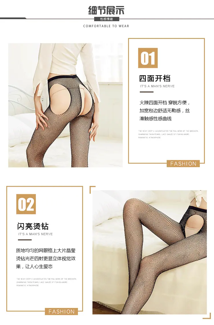 2024 Nuevo Calcetines de Malla Sexy Hot con Pedrería Europea y Americana Medias de Red Malla Grande Malla Mediana Malla Pequeña Medias Pantimedias Finas