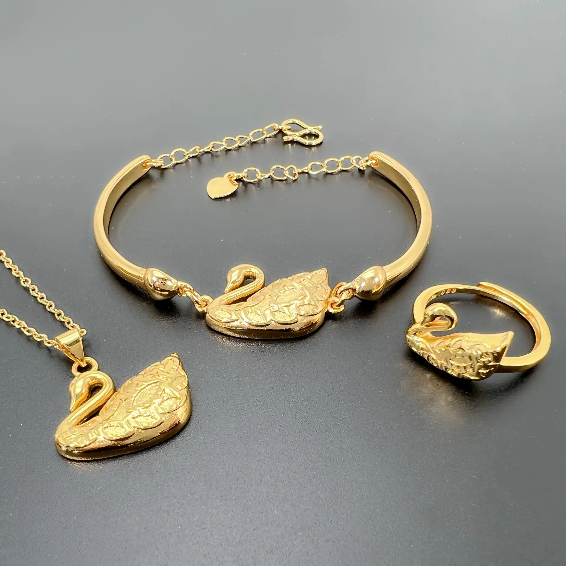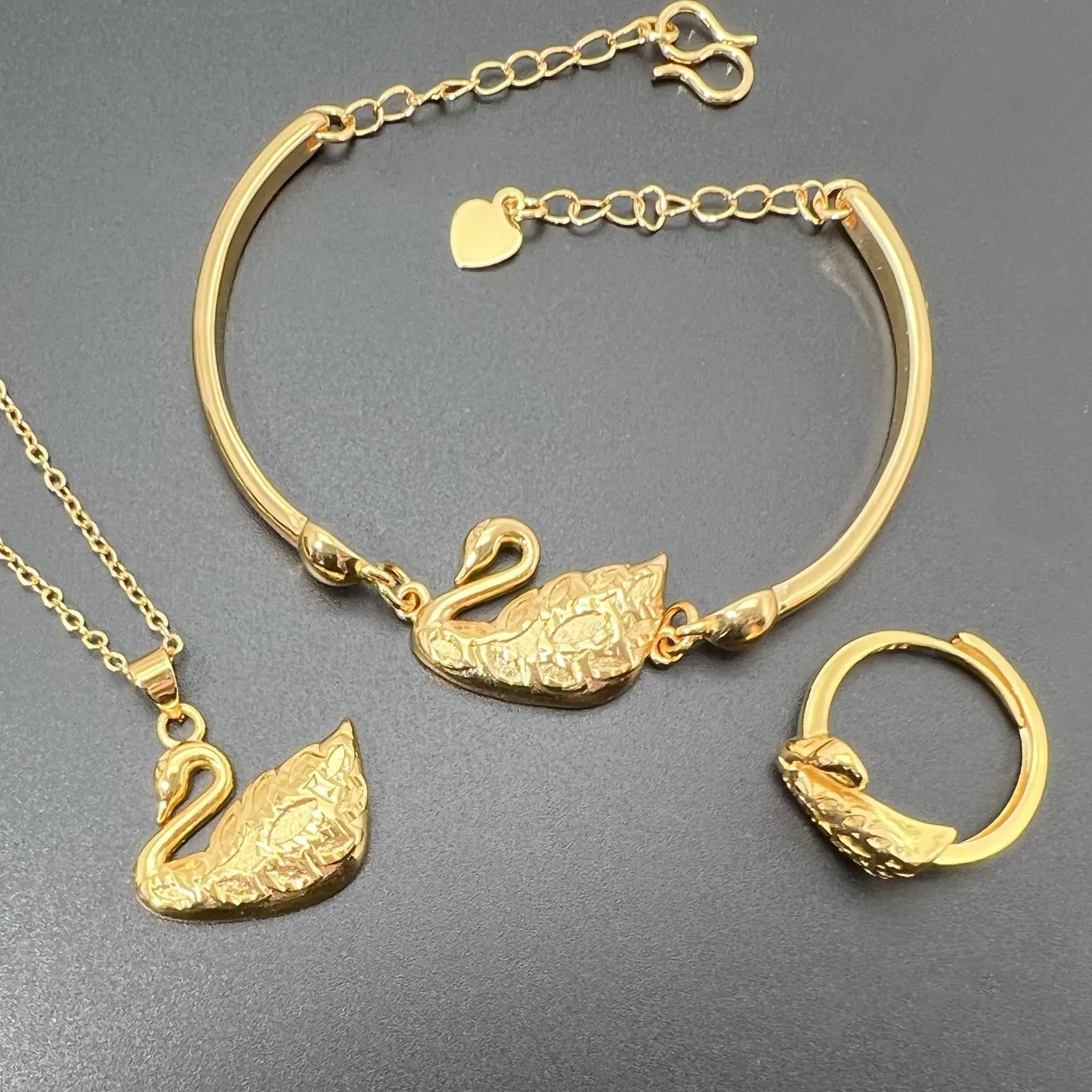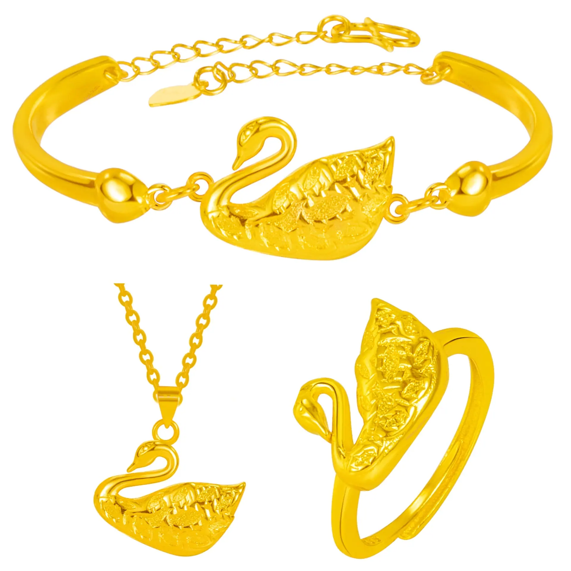 Swan suit [3-Piece Set]], Swan ring [adjustable opening]], Swan bracelet, Swan pendant [without chain]], Gold ...