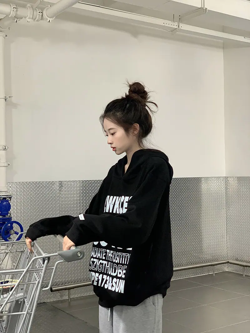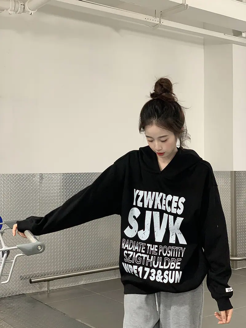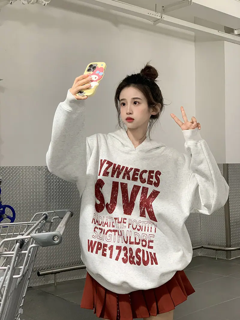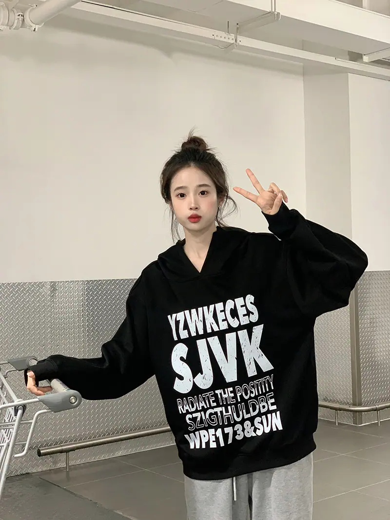 Sudadera Delgada de Primavera y Otoño 2024 para Pareja, Abrigo Holgado con Estampado de Letras, Top Coreano con Capucha para Mujer
