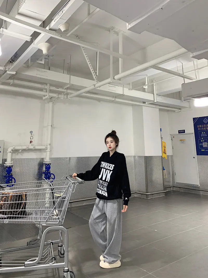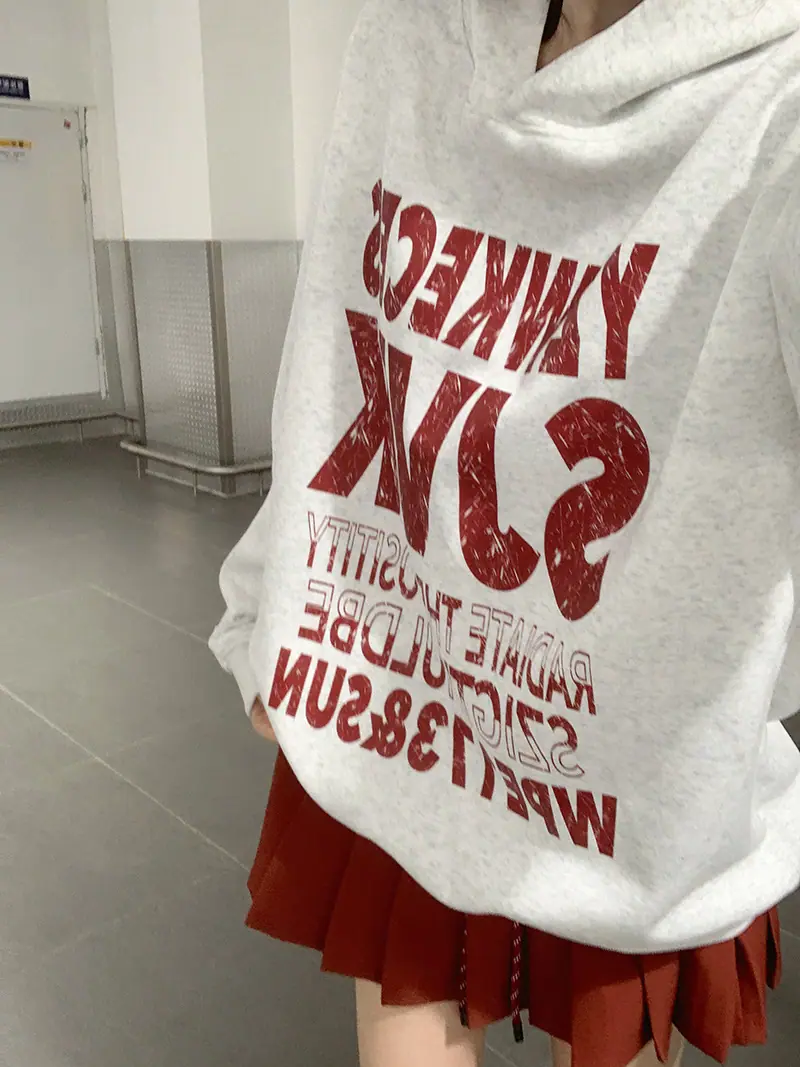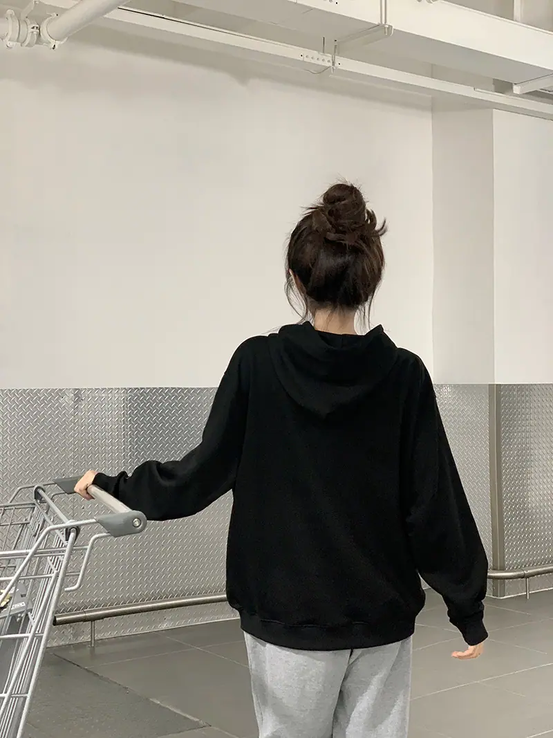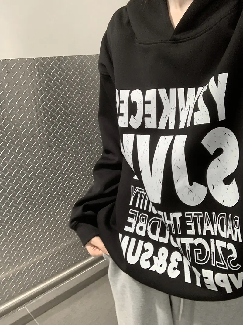 Sudadera Delgada de Primavera y Otoño 2024 para Pareja, Abrigo Holgado con Estampado de Letras, Top Coreano con Capucha para Mujer