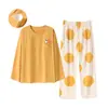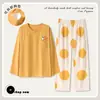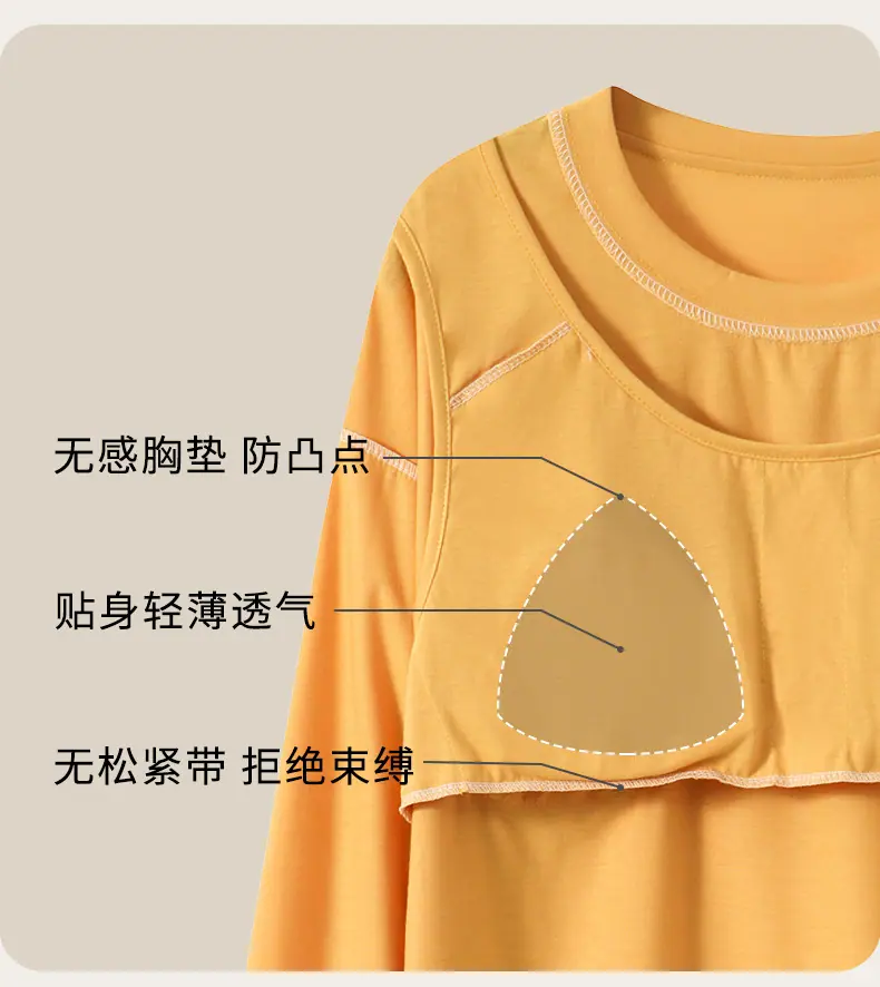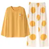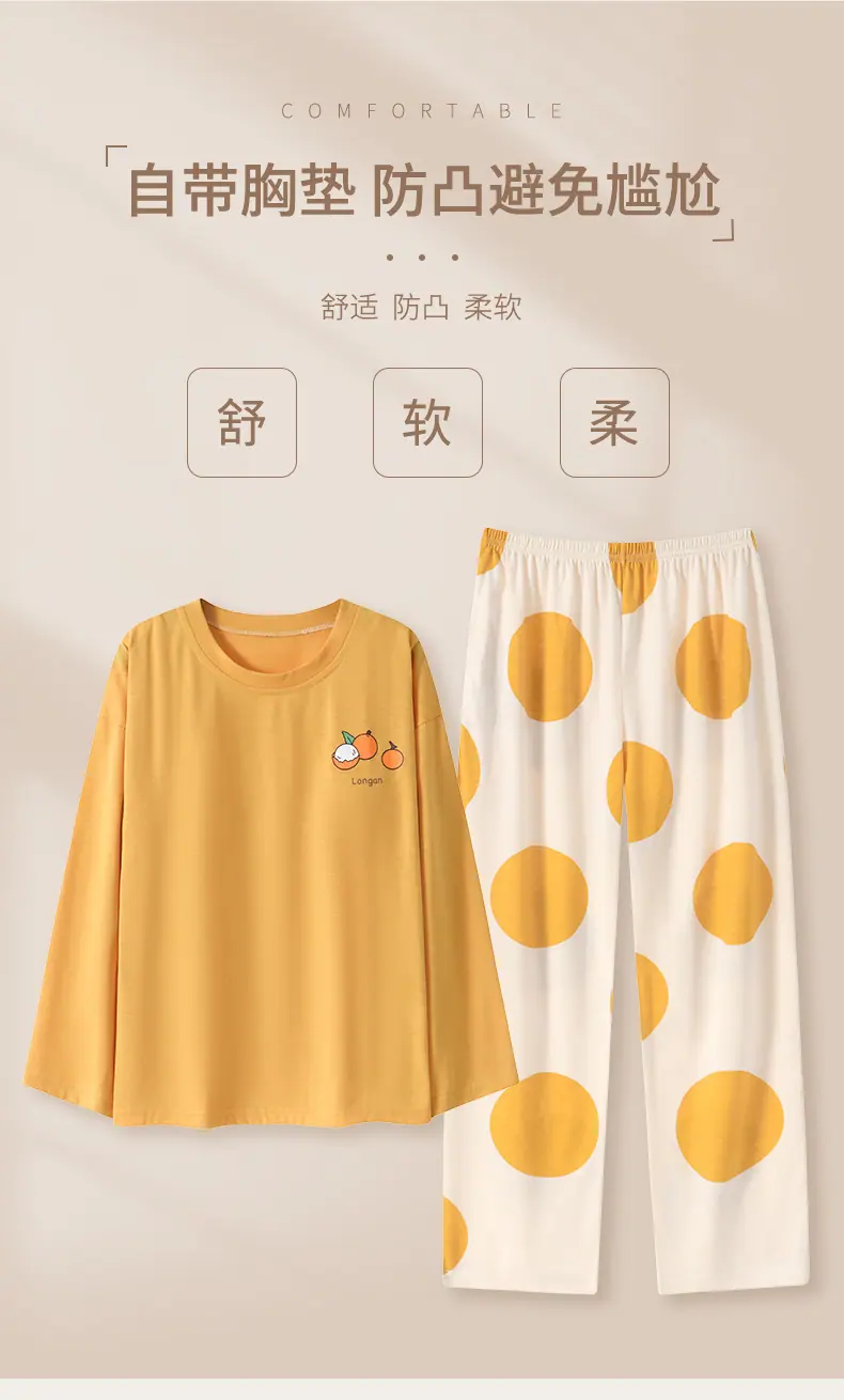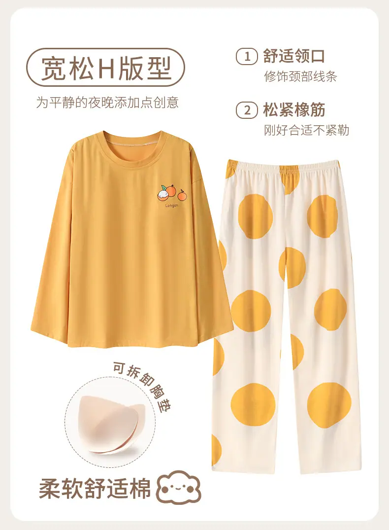 Traje de ropa para el hogar para mujer de algodón de manga larga con cuello redondo y almohadilla en el pecho, estilo nuevo