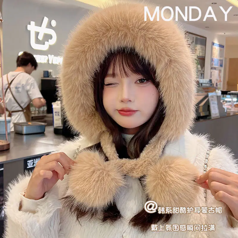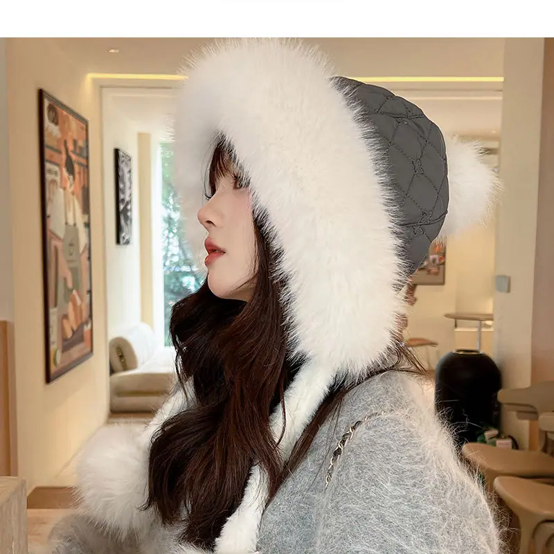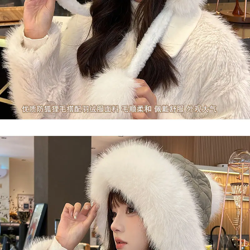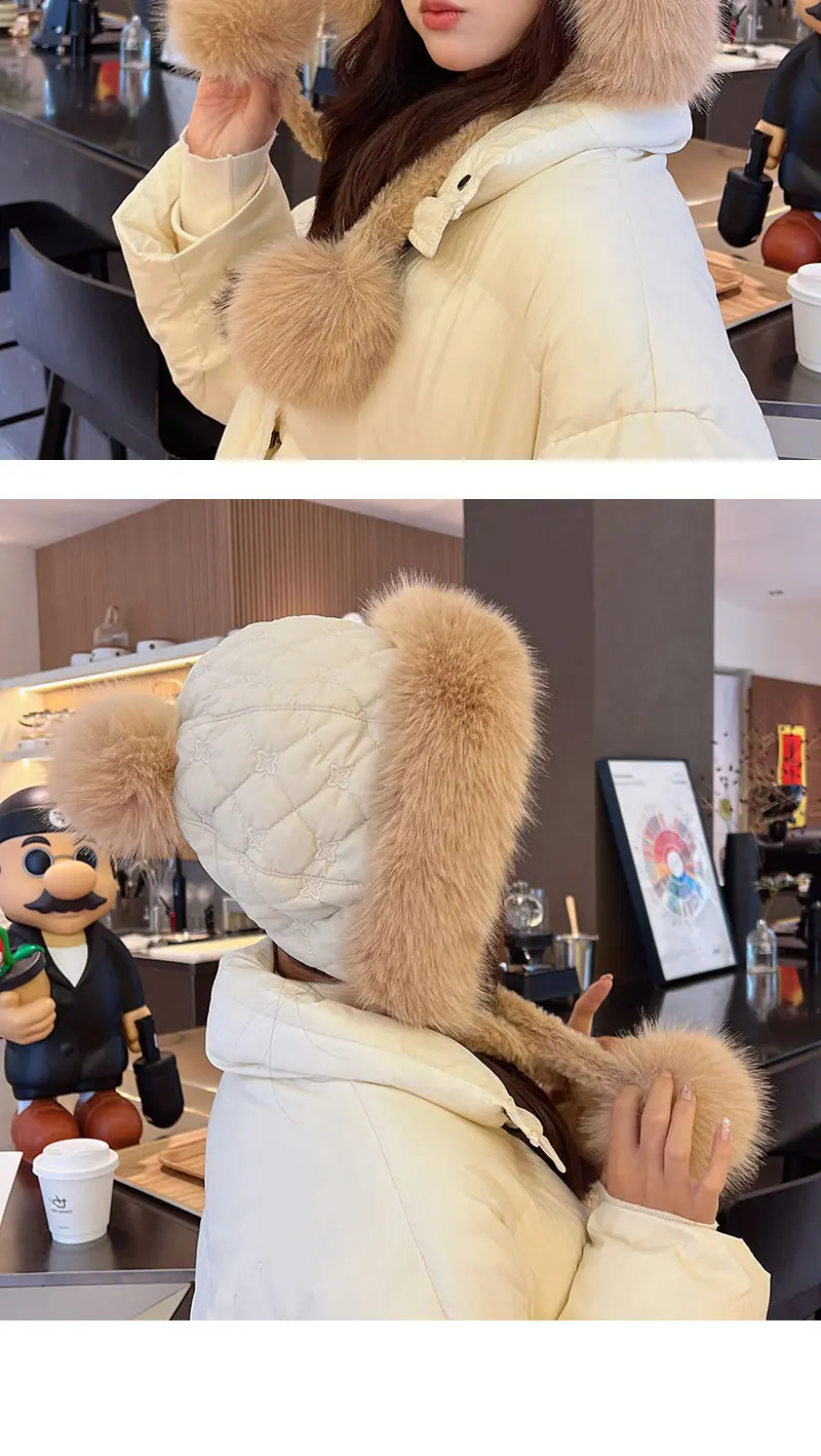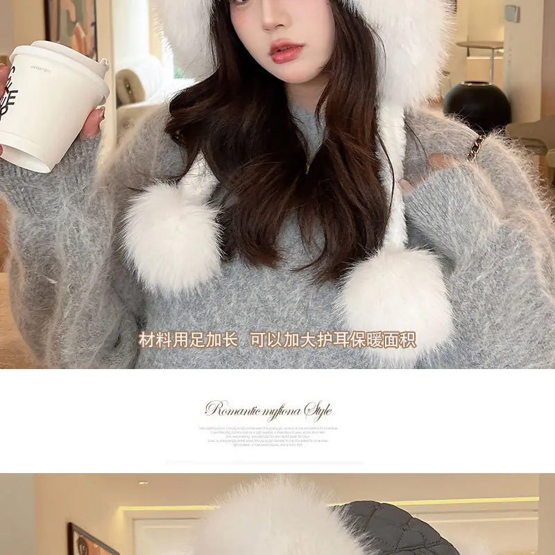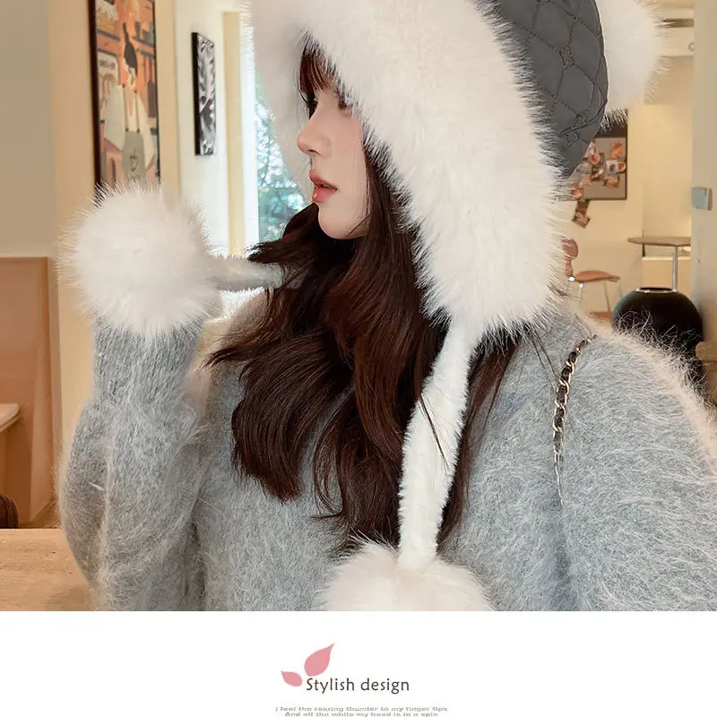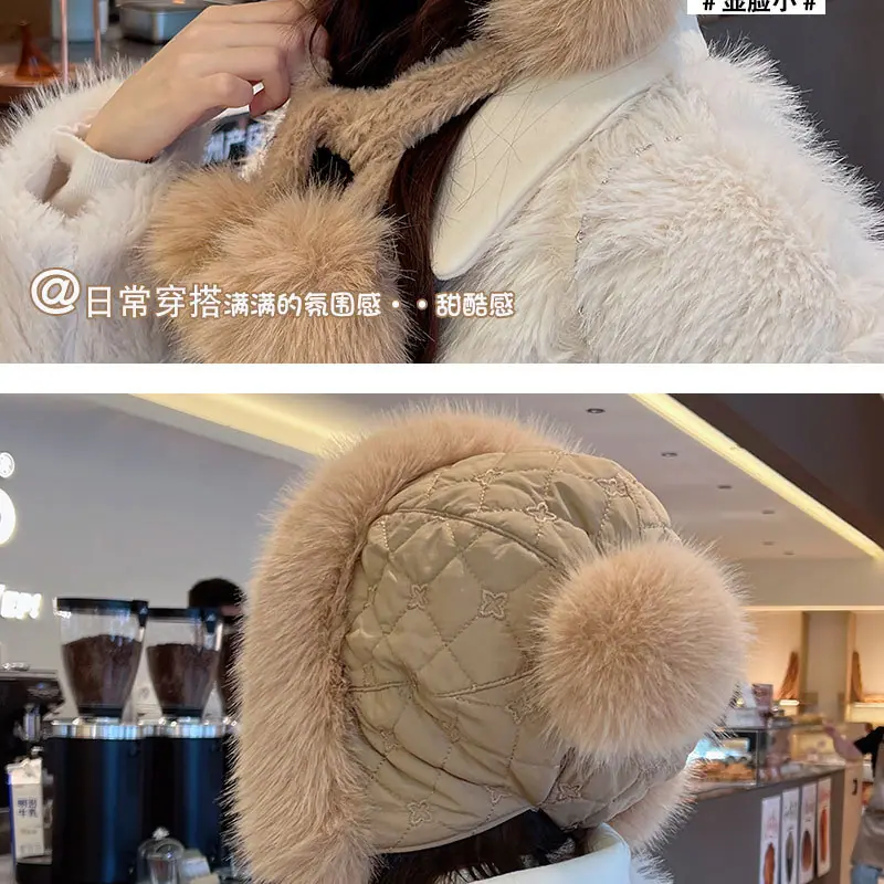 Sombrero de Invierno Cálido de Plumón con Protección para las Orejas con Forro Polar Sombrero Grueso de Algodón Sombrero para Montar a Prueba de Frío Sombrero Pequeño Lei Feng de Felpa Lindo que Muestra el Rostro