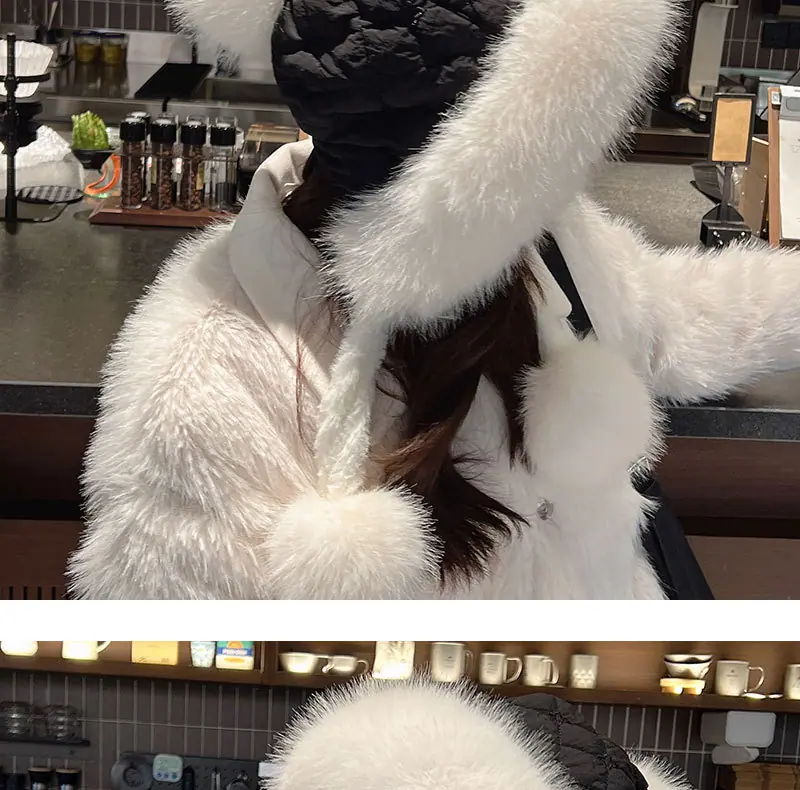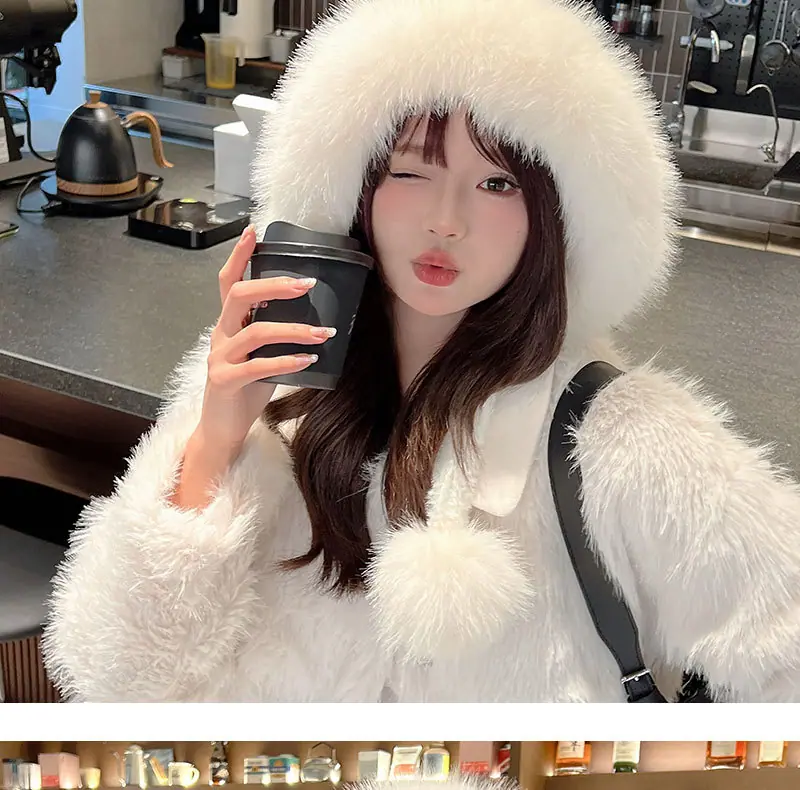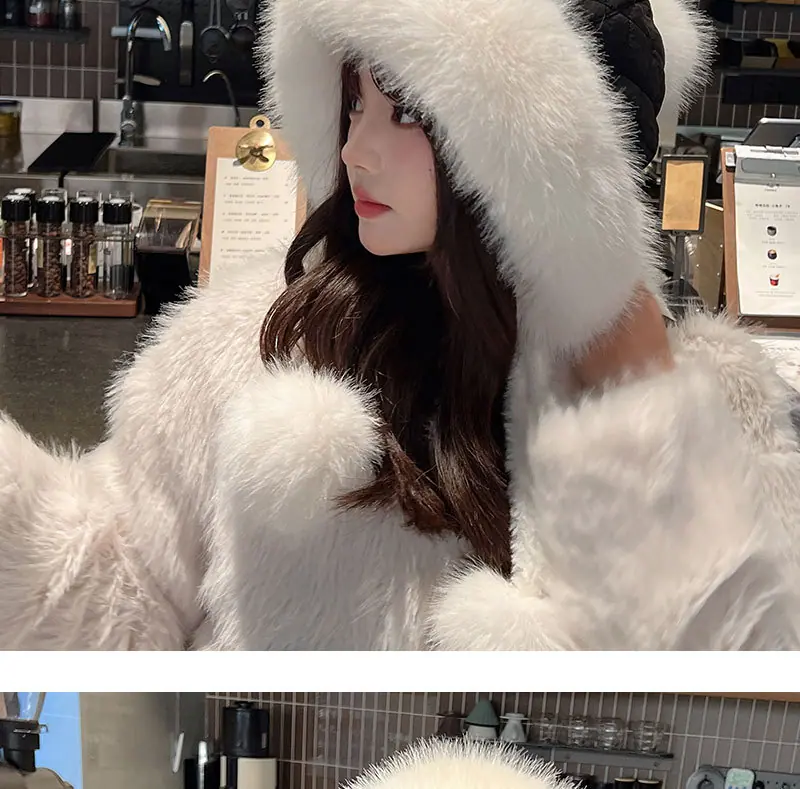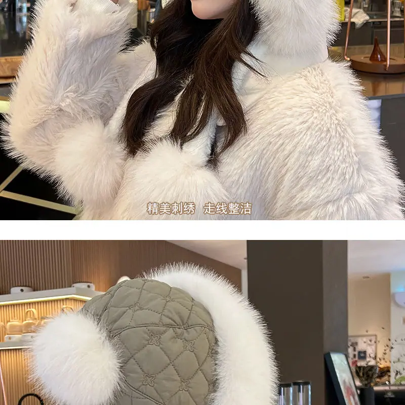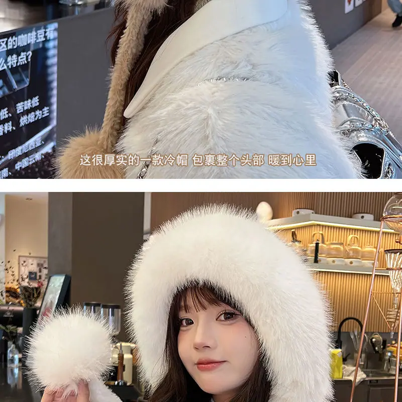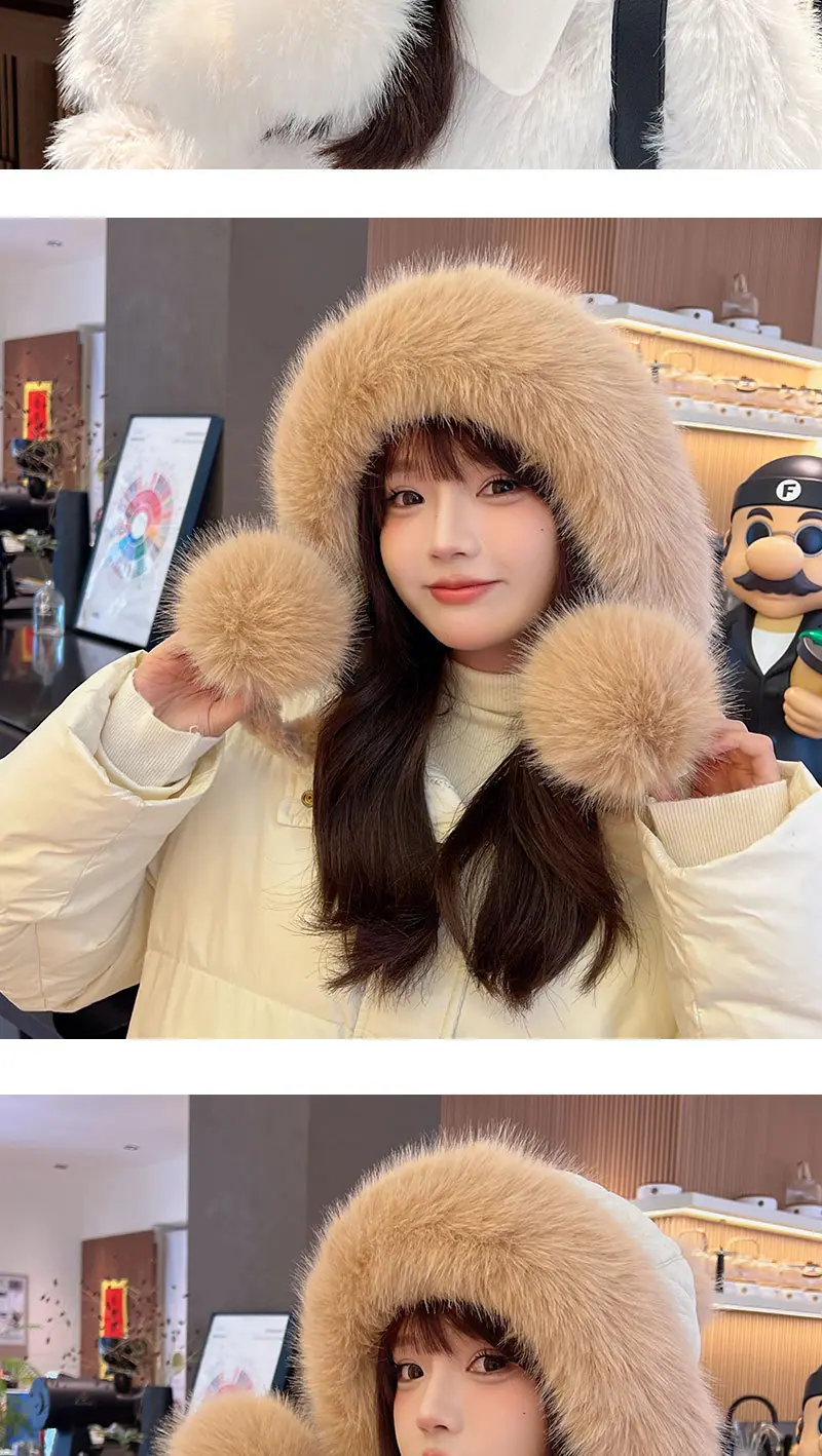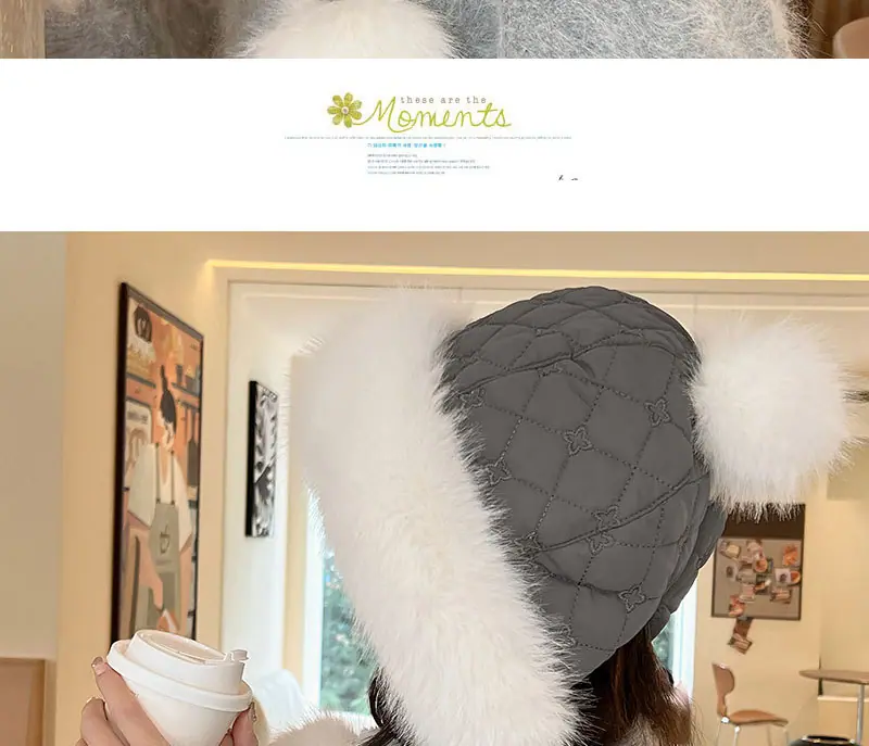 Sombrero de Invierno Cálido de Plumón con Protección para las Orejas con Forro Polar Sombrero Grueso de Algodón Sombrero para Montar a Prueba de Frío Sombrero Pequeño Lei Feng de Felpa Lindo que Muestra el Rostro