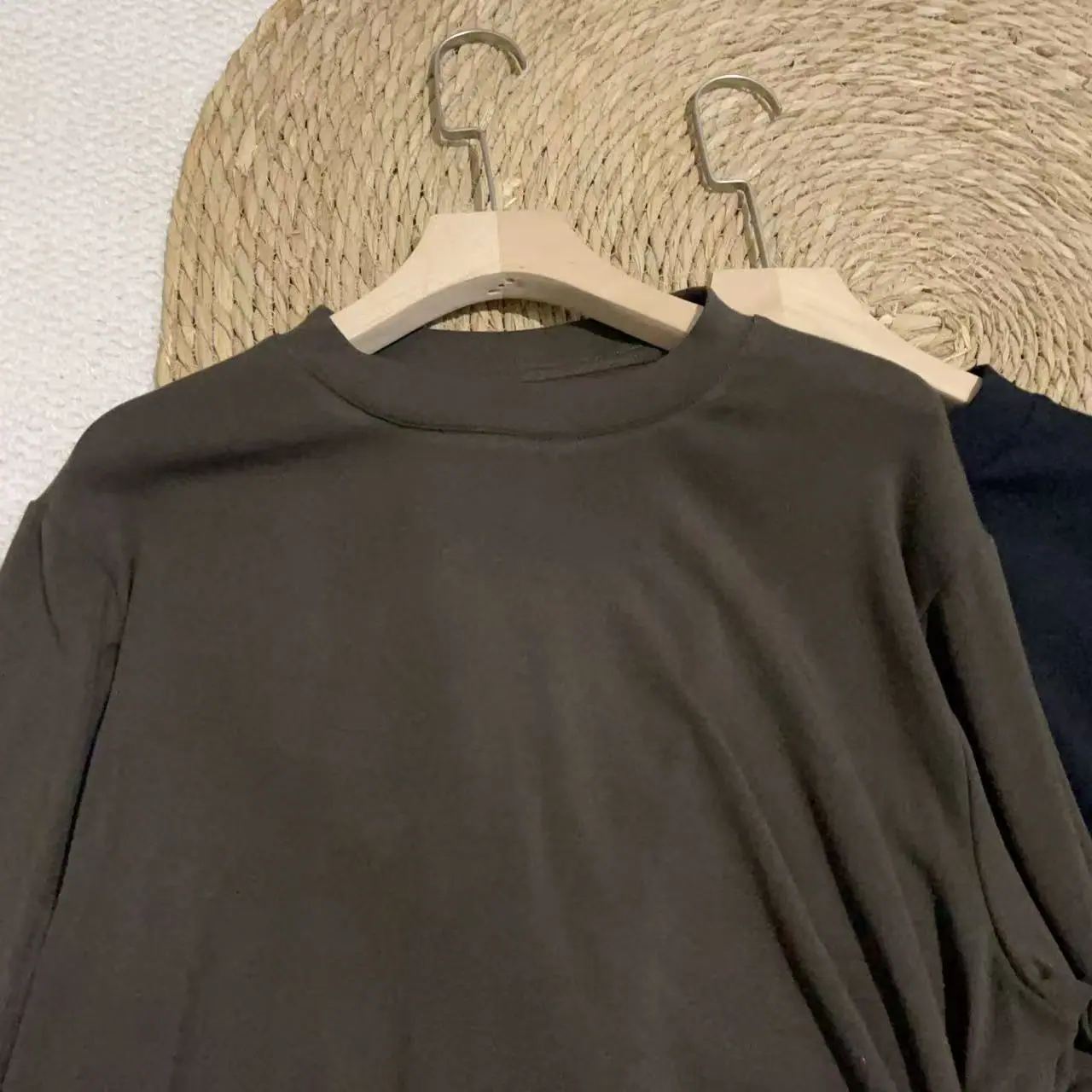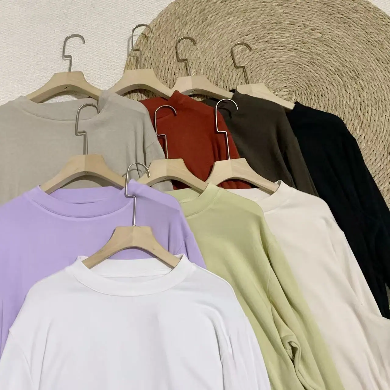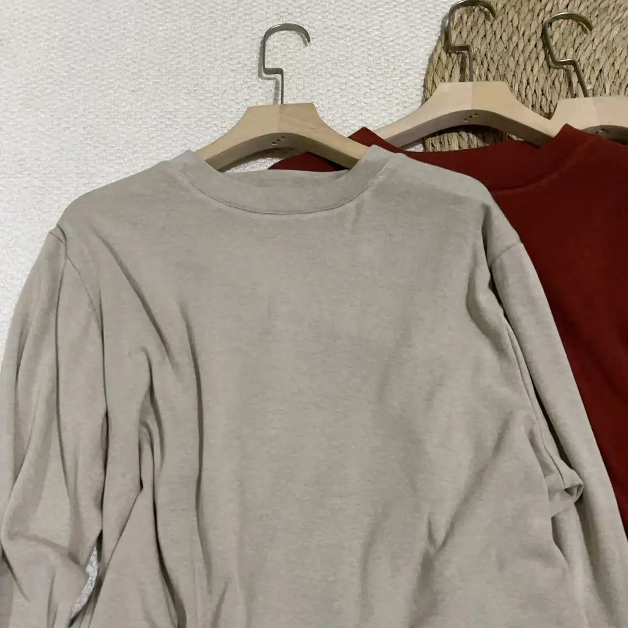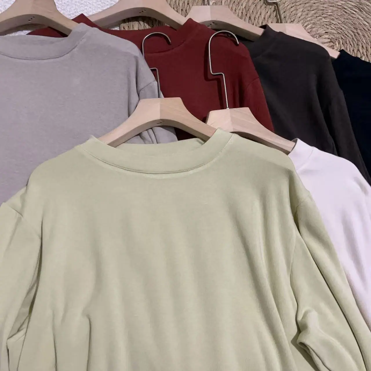 Estilo Japonés 2025 Nueva Camiseta Holgada Adelgazante Versátil de Cuello Redondo y Manga Larga para Mujer Top Casual Camiseta Básica