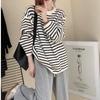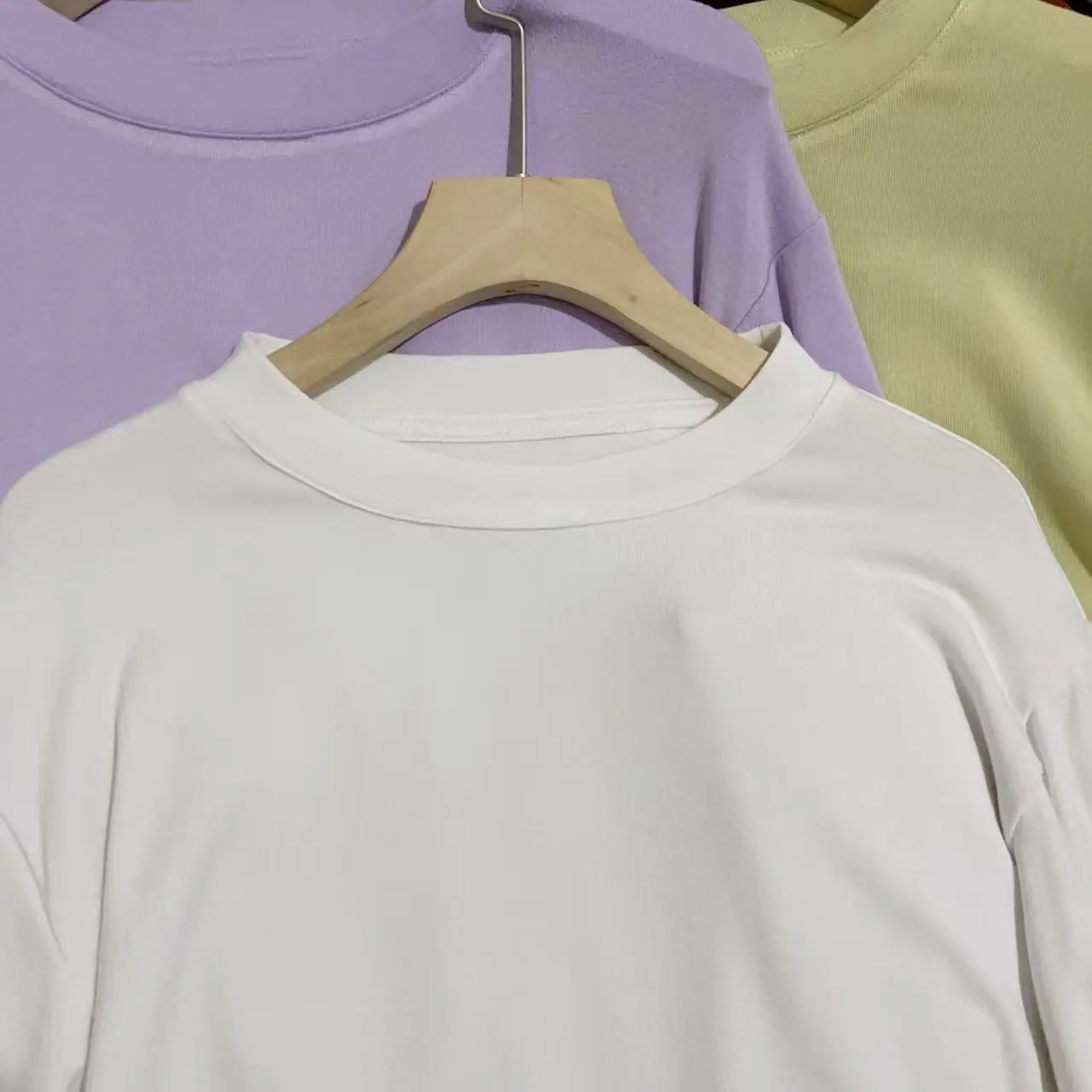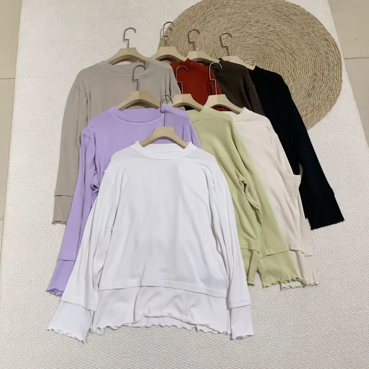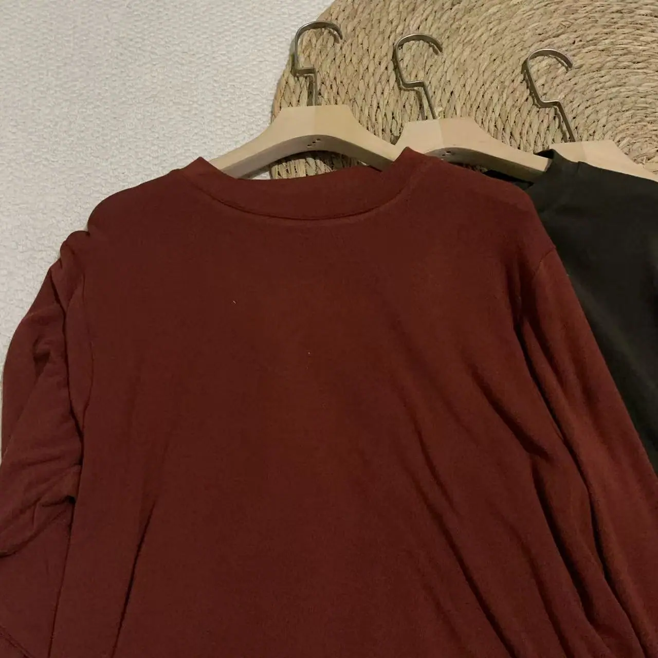 Estilo Japonés 2025 Nueva Camiseta Holgada Adelgazante Versátil de Cuello Redondo y Manga Larga para Mujer Top Casual Camiseta Básica