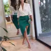 Conjunto de dos piezas de verano 2025 transfronterizo Amazon europeo y americano nueva moda casual color sólido manga larga top falda corta