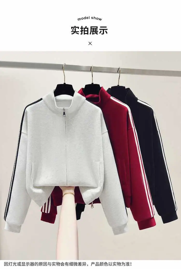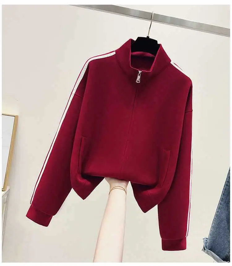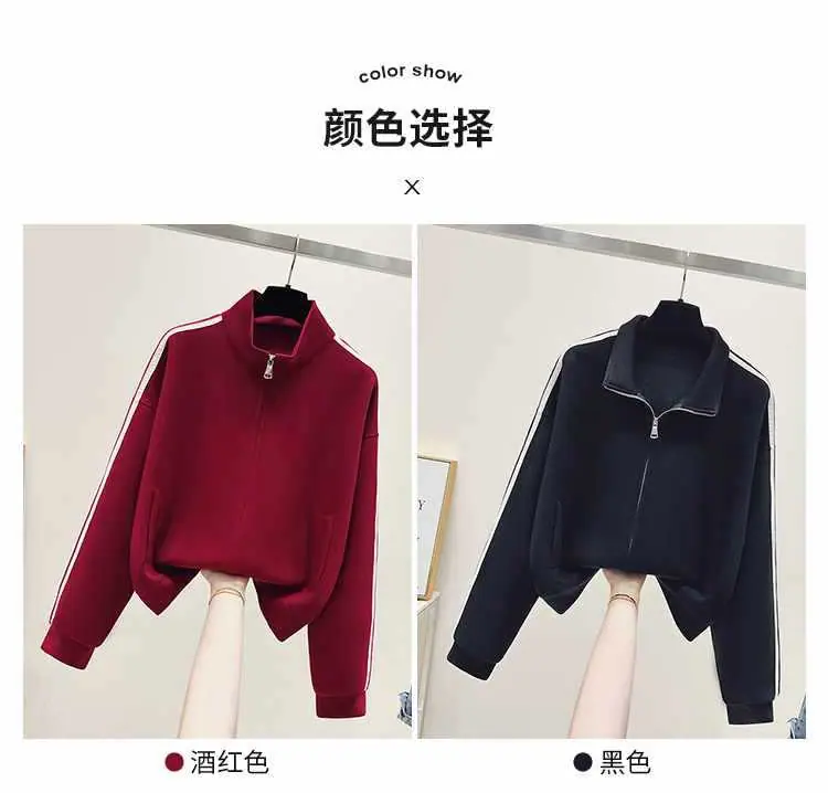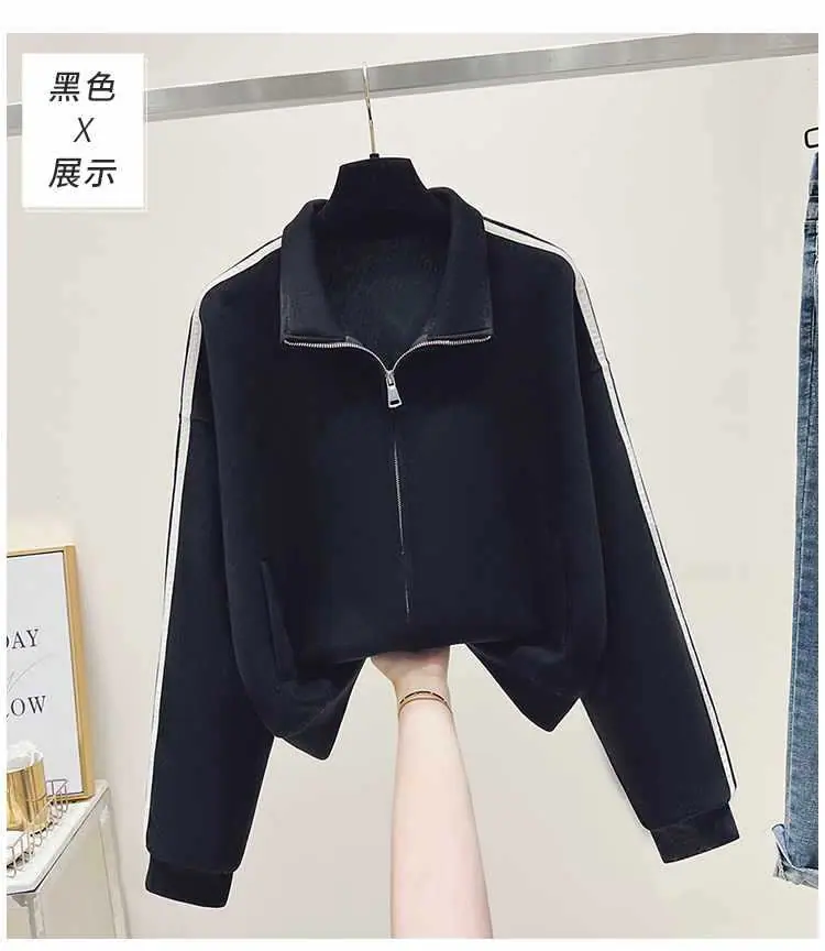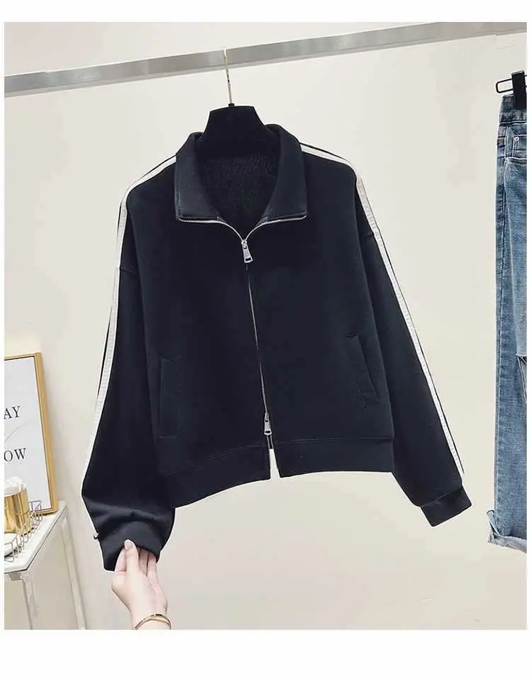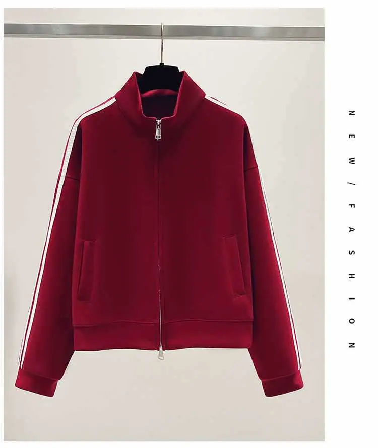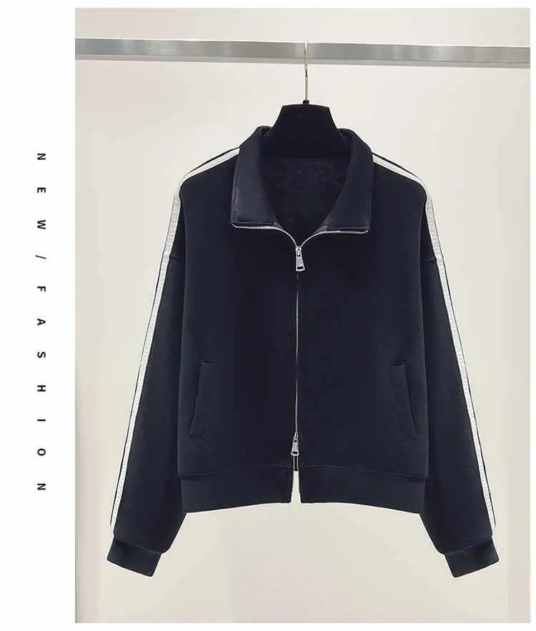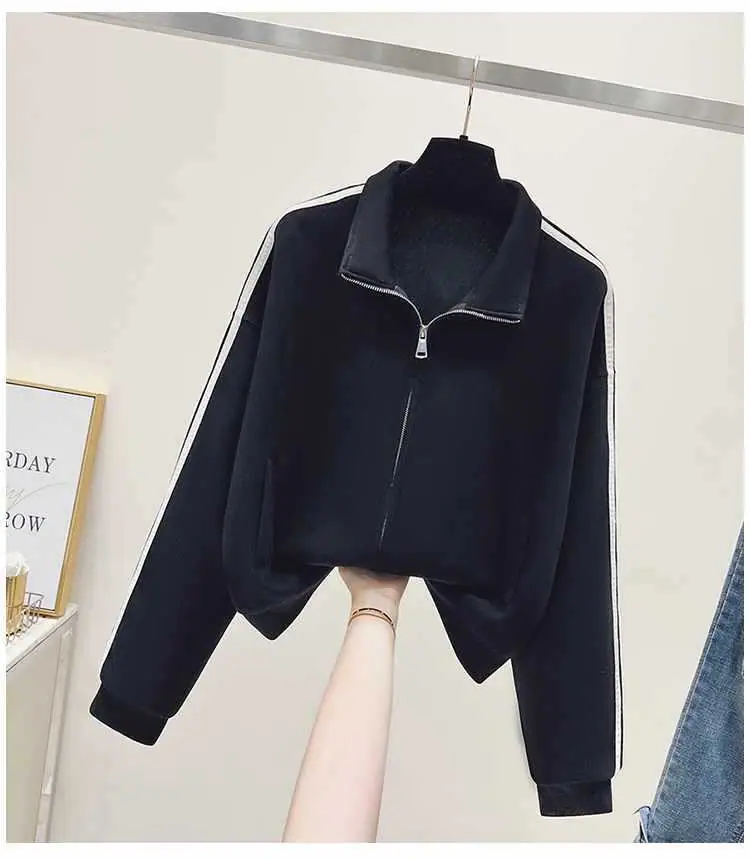 Chaqueta corta de manga larga con cuello alto y tiro real para mujer primavera y otoño 2025 estilo callejero americano casual deportivo top sudadera cárdigan