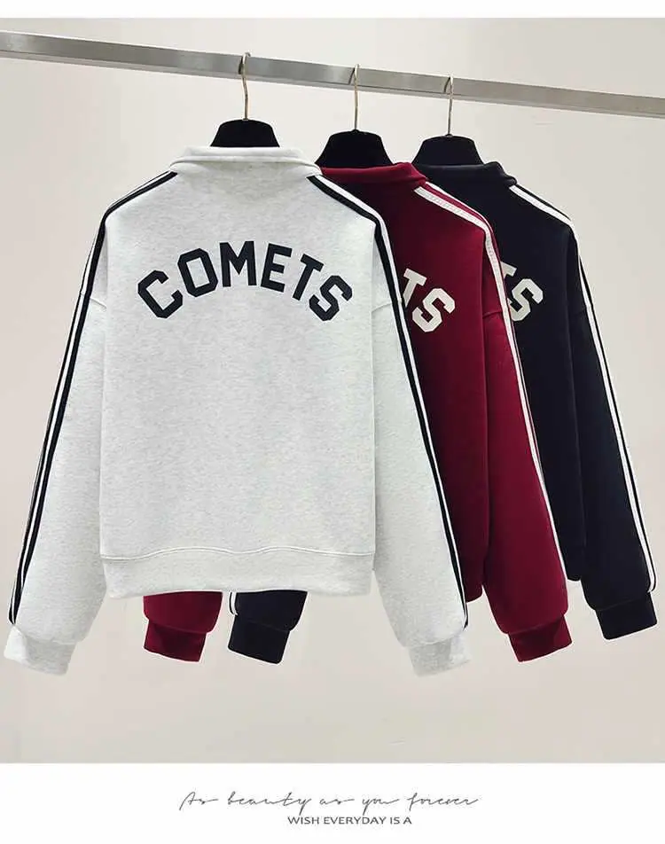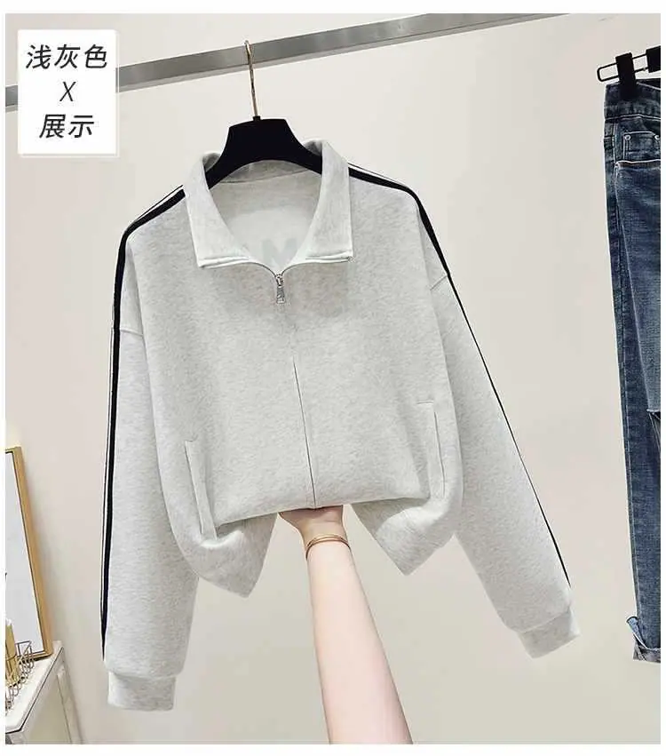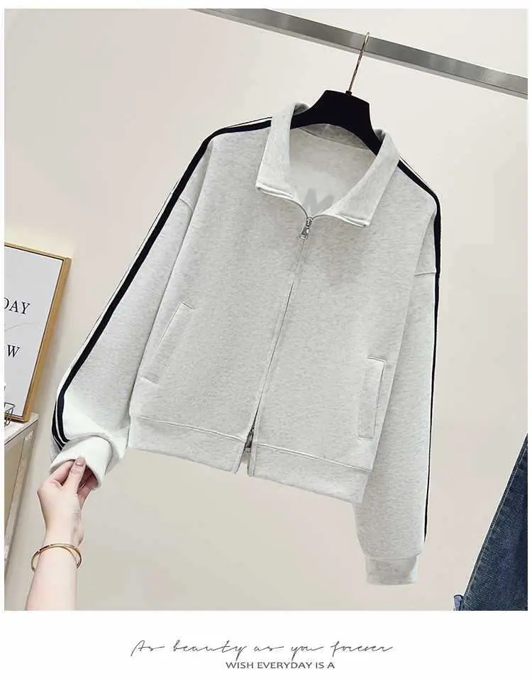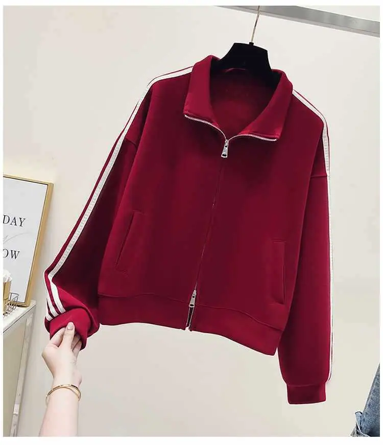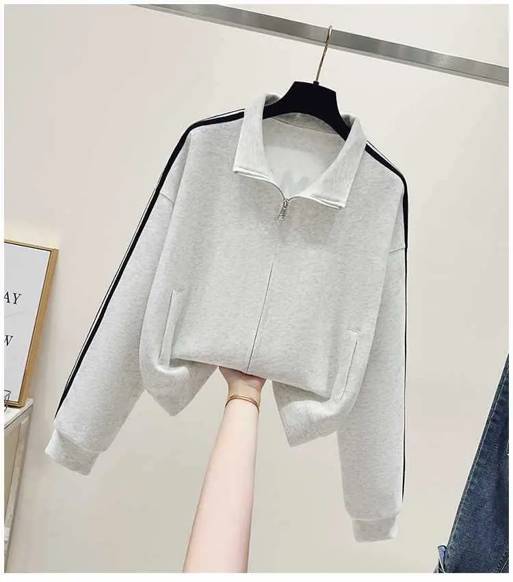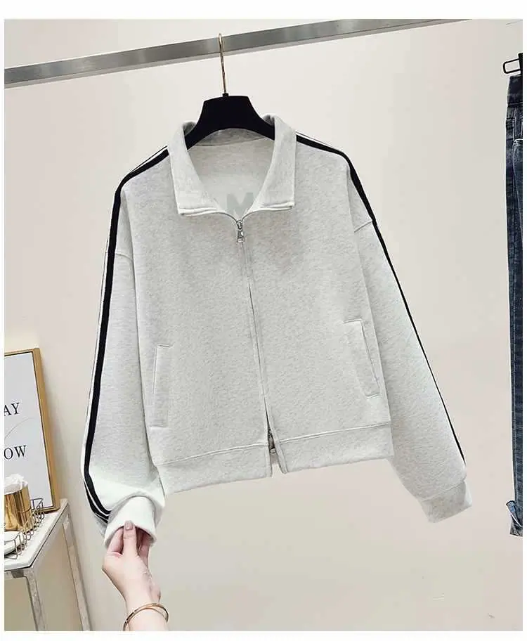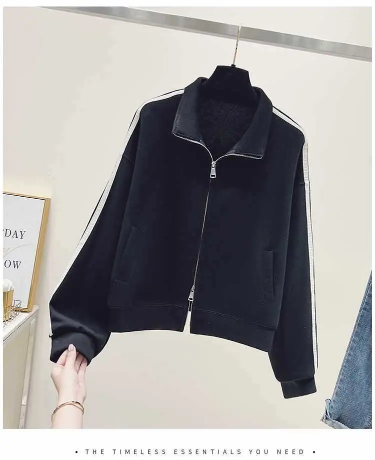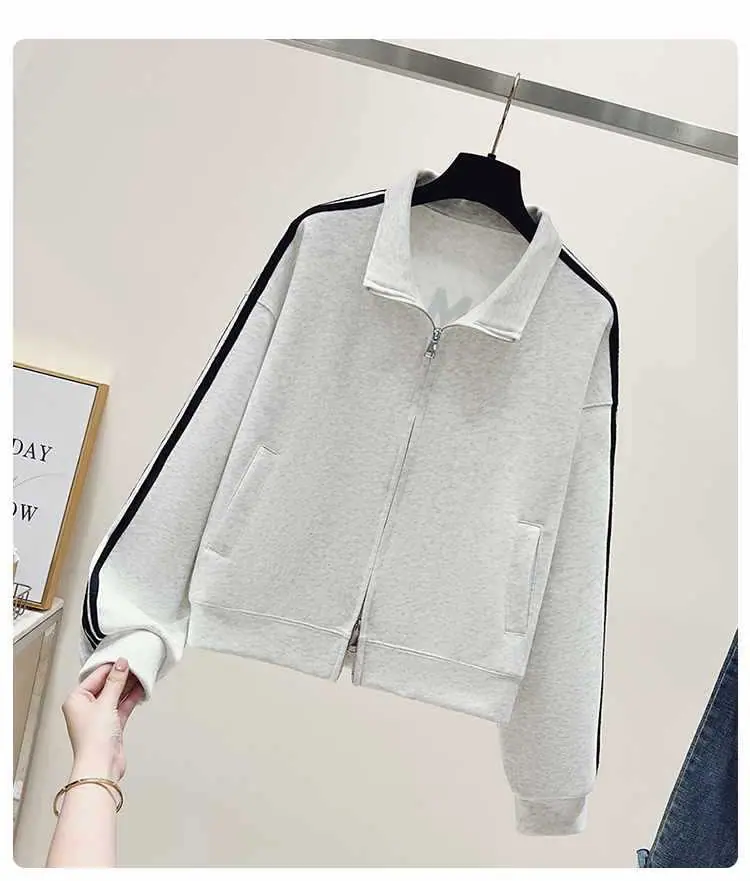 Chaqueta corta de manga larga con cuello alto y tiro real para mujer primavera y otoño 2025 estilo callejero americano casual deportivo top sudadera cárdigan