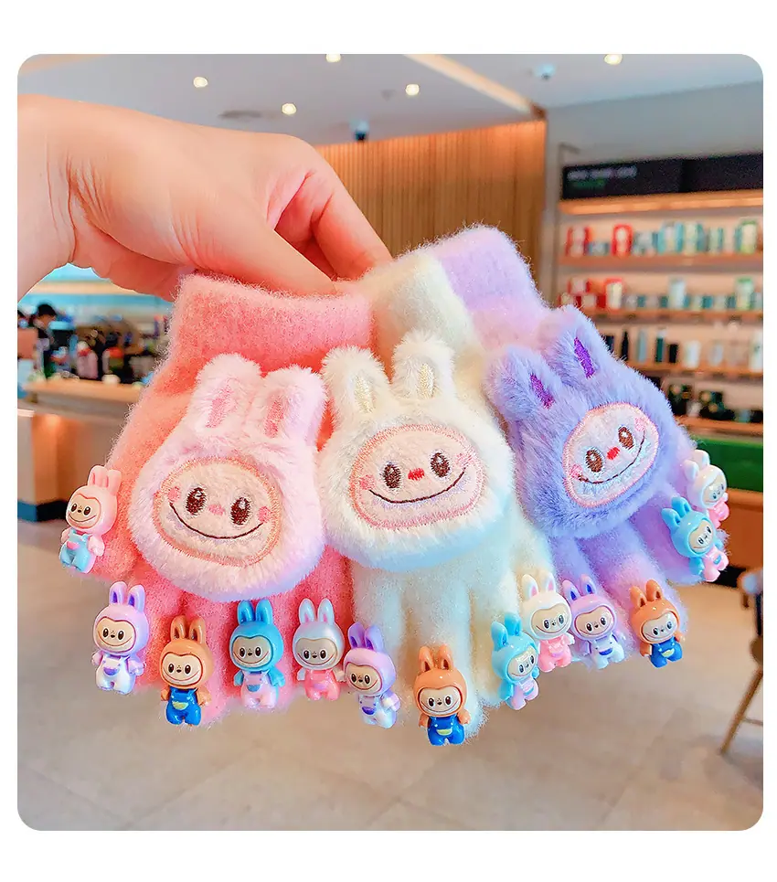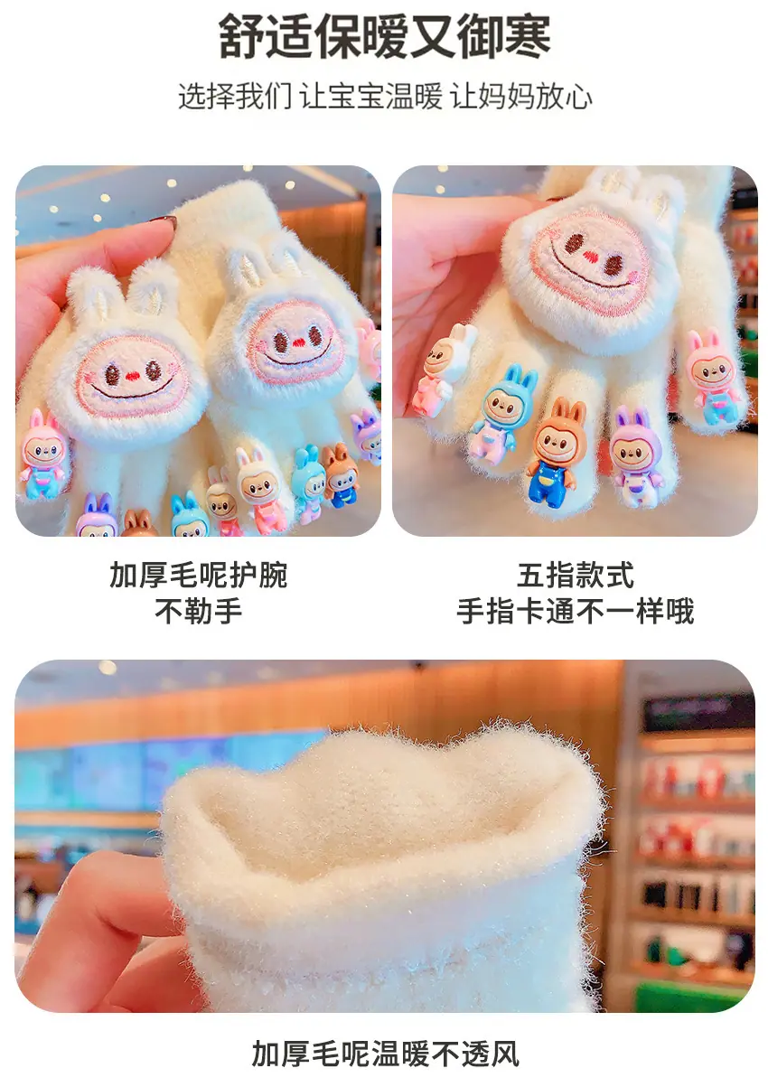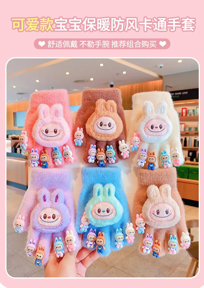 Guantes para niños nuevos de dibujos animados lindos de tela pull guantes de cinco dedos invierno niños y niñas a prueba de frío cálidos guantes de dedo para bebé
