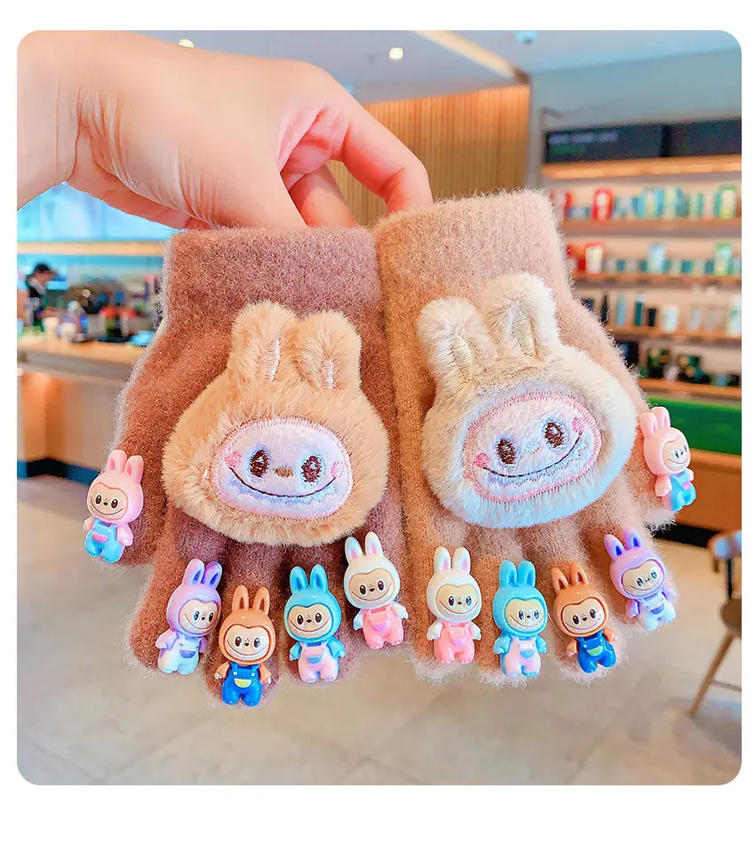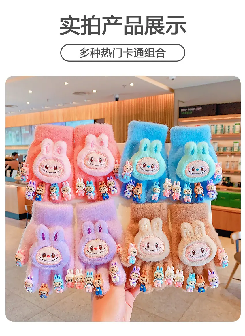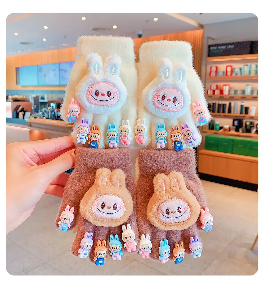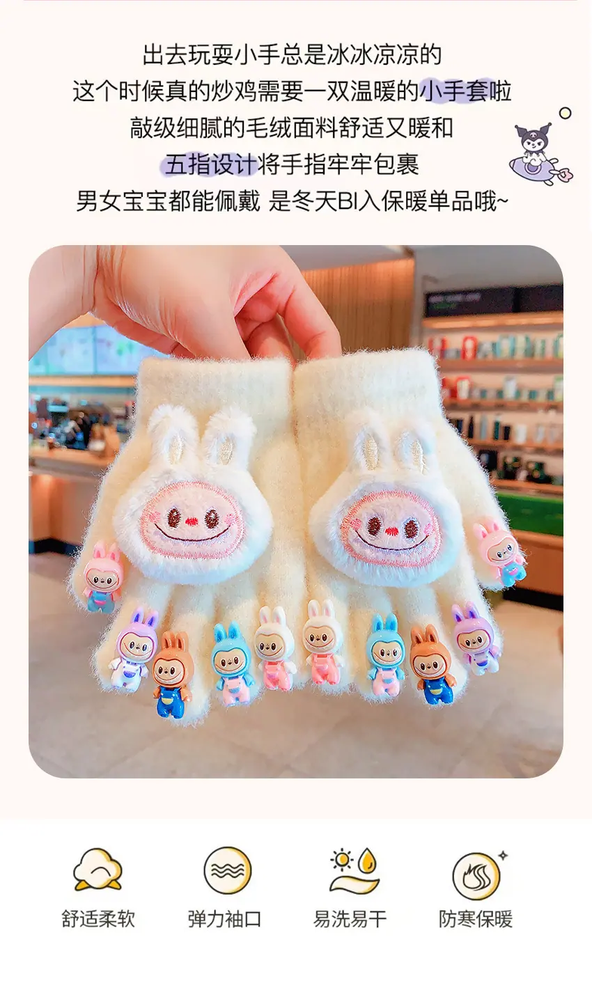 Guantes para niños nuevos de dibujos animados lindos de tela pull guantes de cinco dedos invierno niños y niñas a prueba de frío cálidos guantes de dedo para bebé
