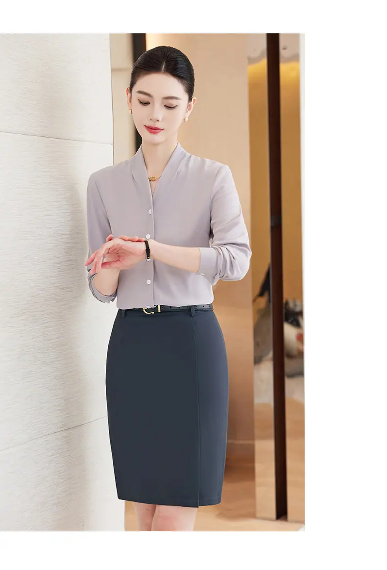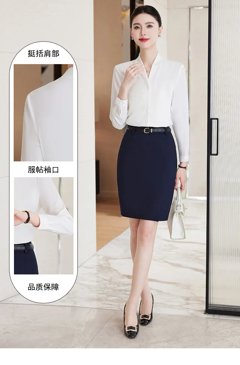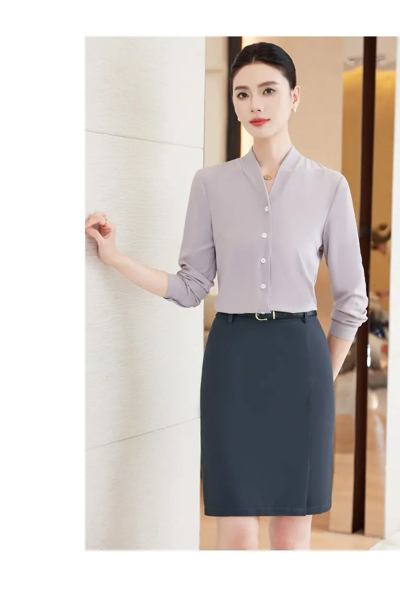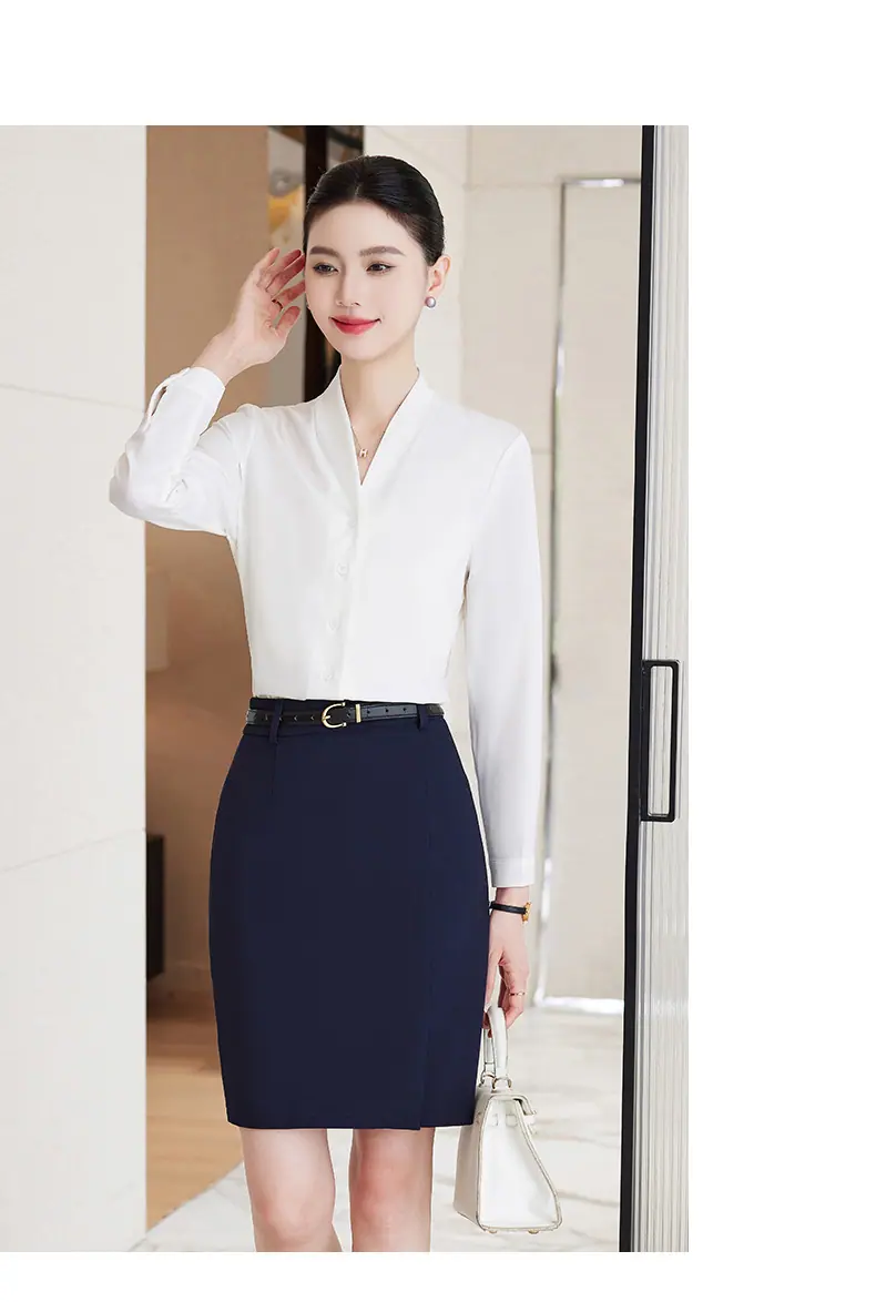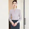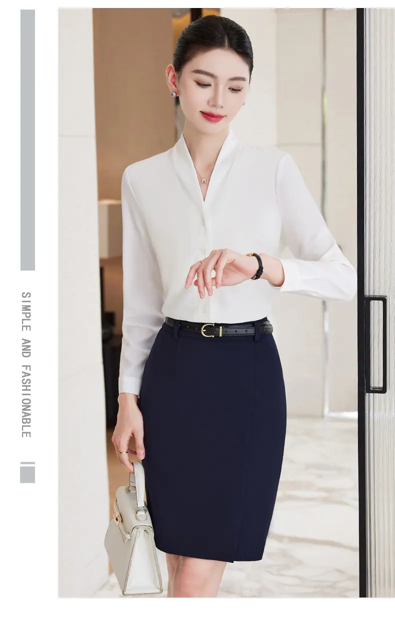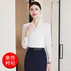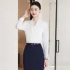 Otoño Nuevo Ropa Profesional Temperamento Ropa de Trabajo Top Cuello en V Camiseta Base Camisa de Gasa Camisa Blanca Manga Larga para Mujer