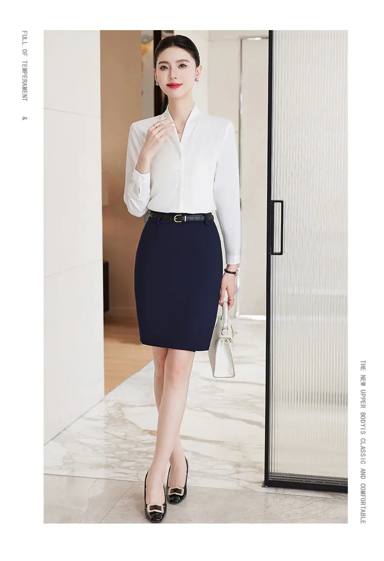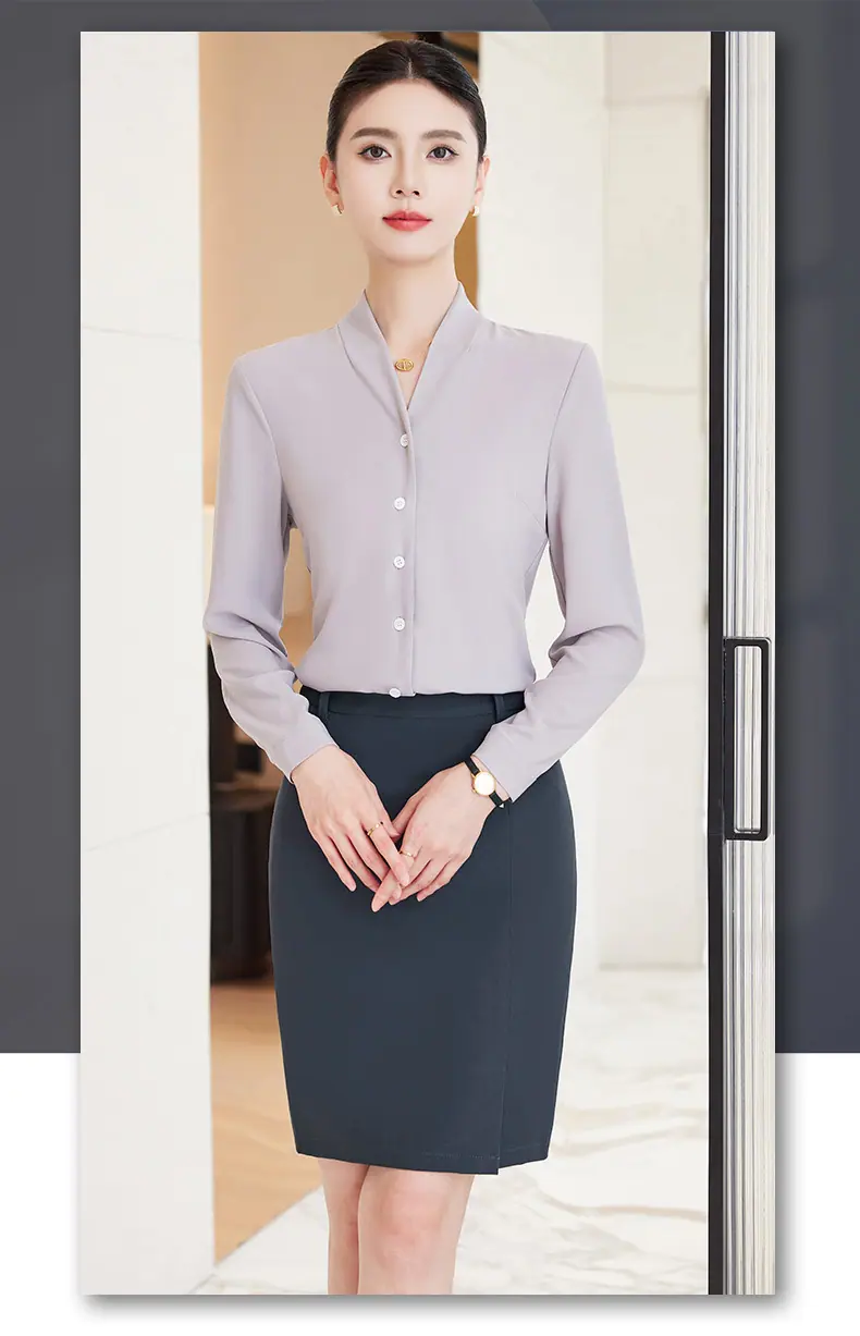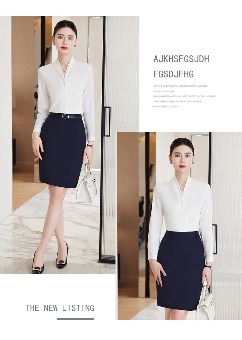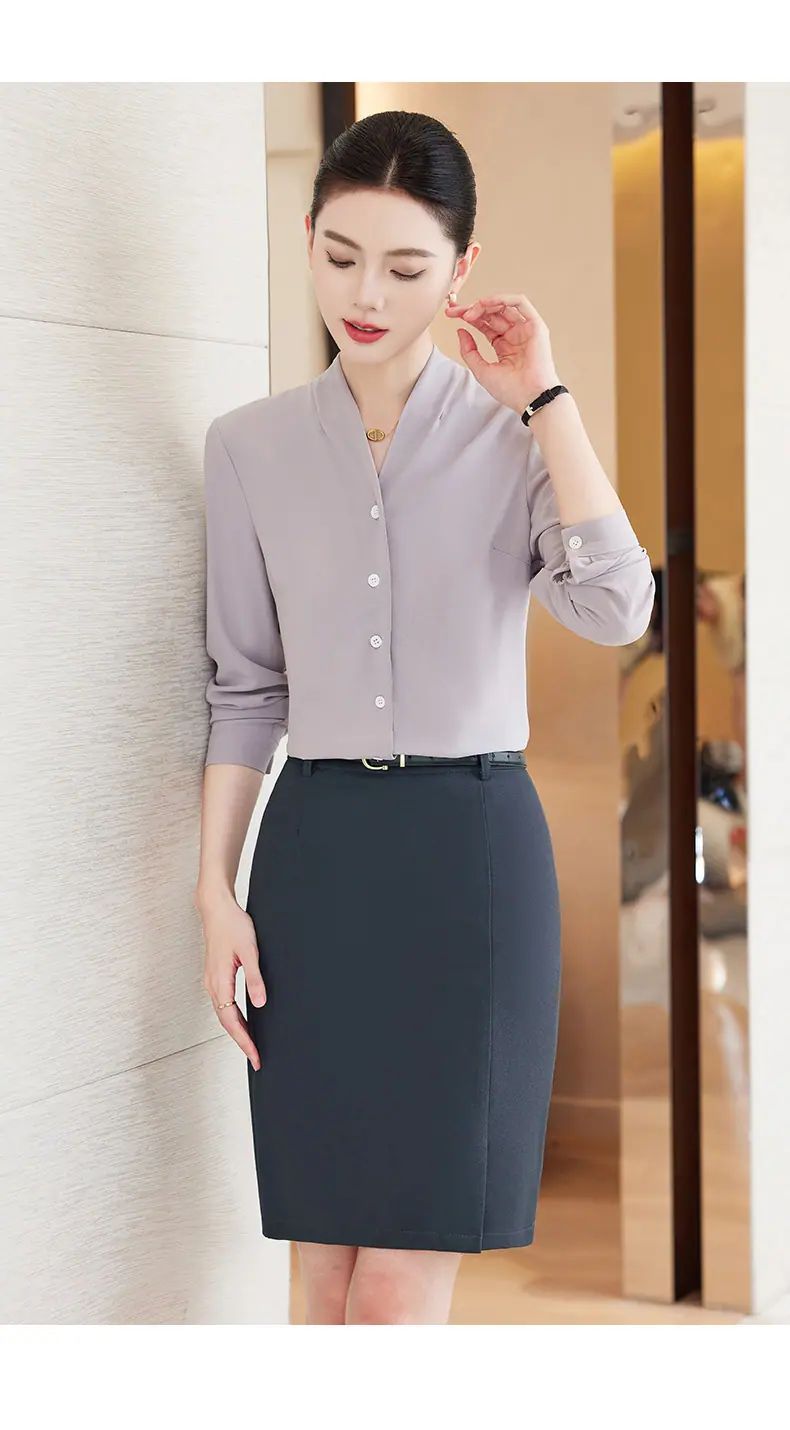 Otoño Nuevo Ropa Profesional Temperamento Ropa de Trabajo Top Cuello en V Camiseta Base Camisa de Gasa Camisa Blanca Manga Larga para Mujer
