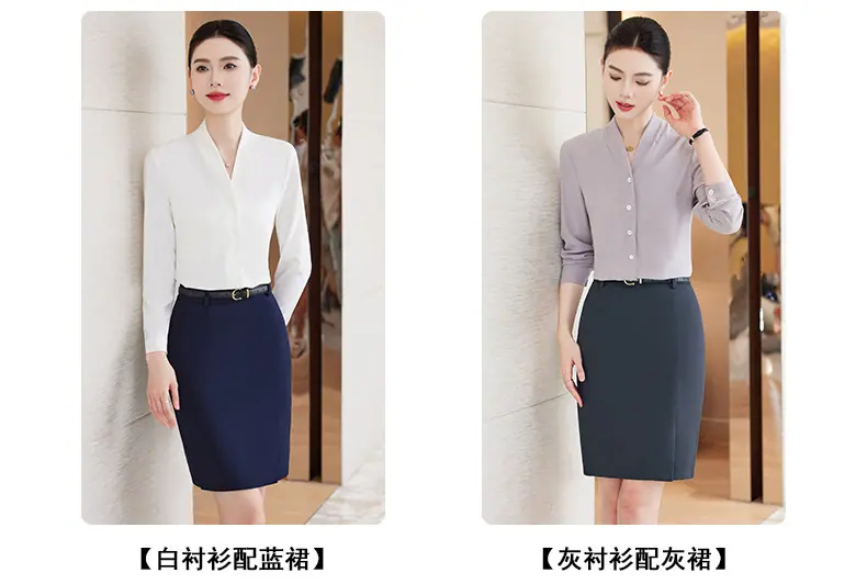 White shirt, Grey shirt, White shirt + skirt, gray shirt + skirt
