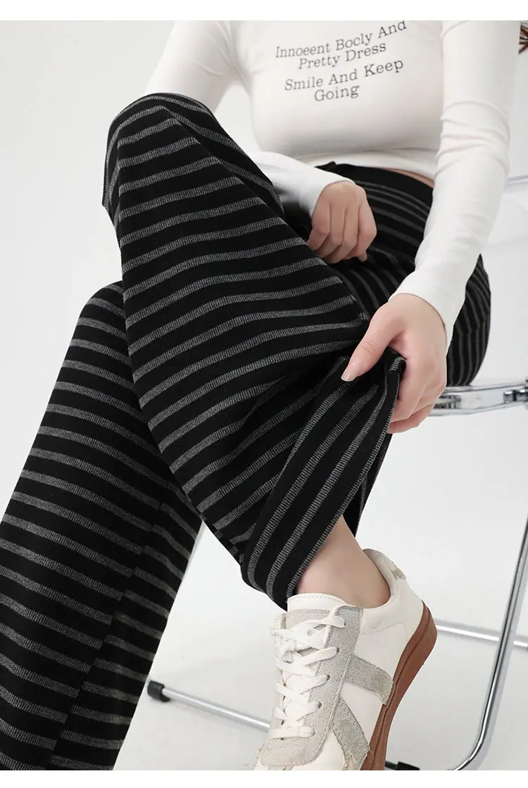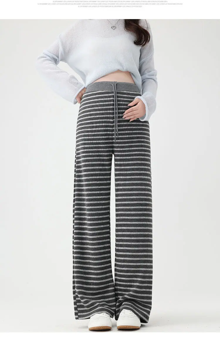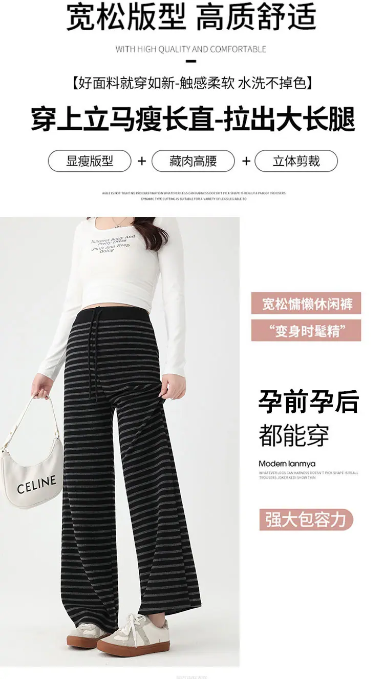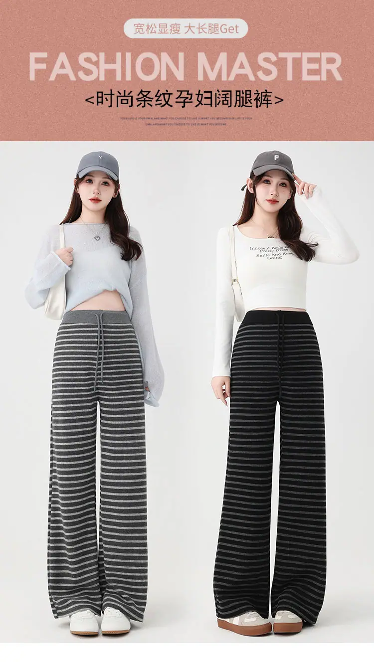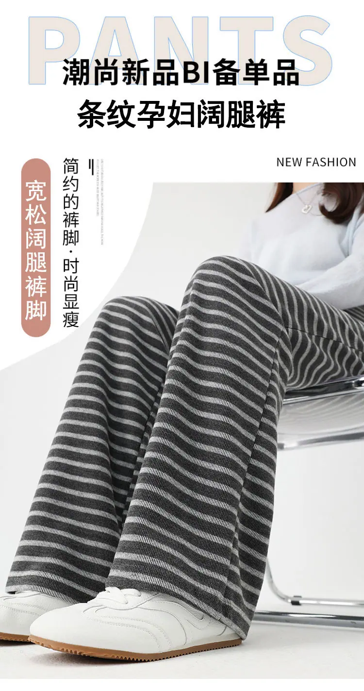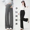 Pantalones rectos para mujeres embarazadas 2025 otoño e invierno nueva moda sin soporte para el vientre embarazo completo puede usar mamá moderna versátil pantalones de pierna ancha a rayas