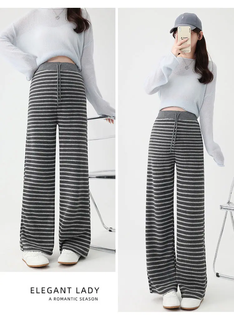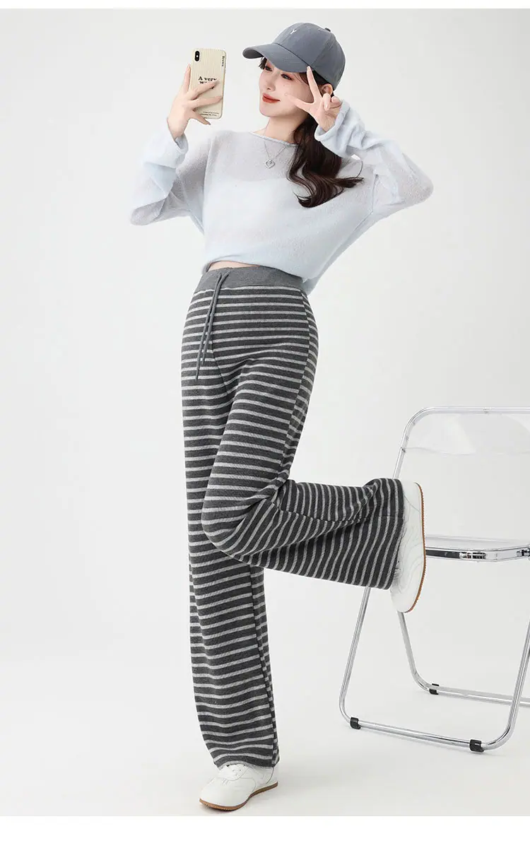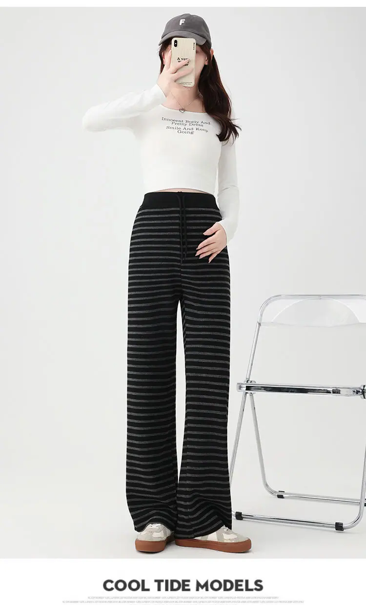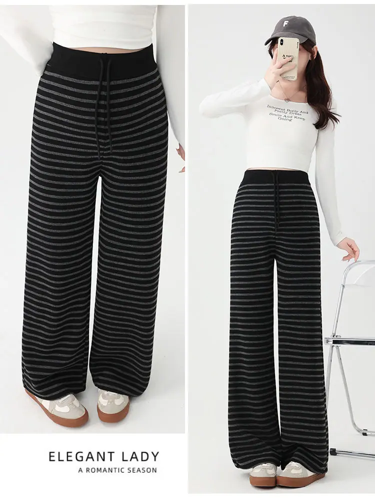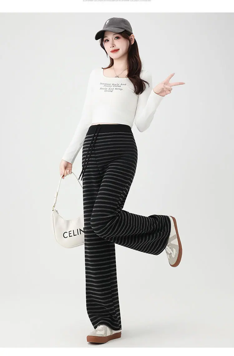 Pantalones rectos para mujeres embarazadas 2025 otoño e invierno nueva moda sin soporte para el vientre embarazo completo puede usar mamá moderna versátil pantalones de pierna ancha a rayas