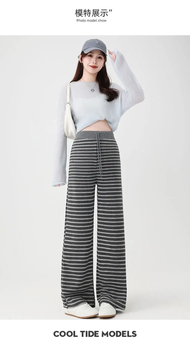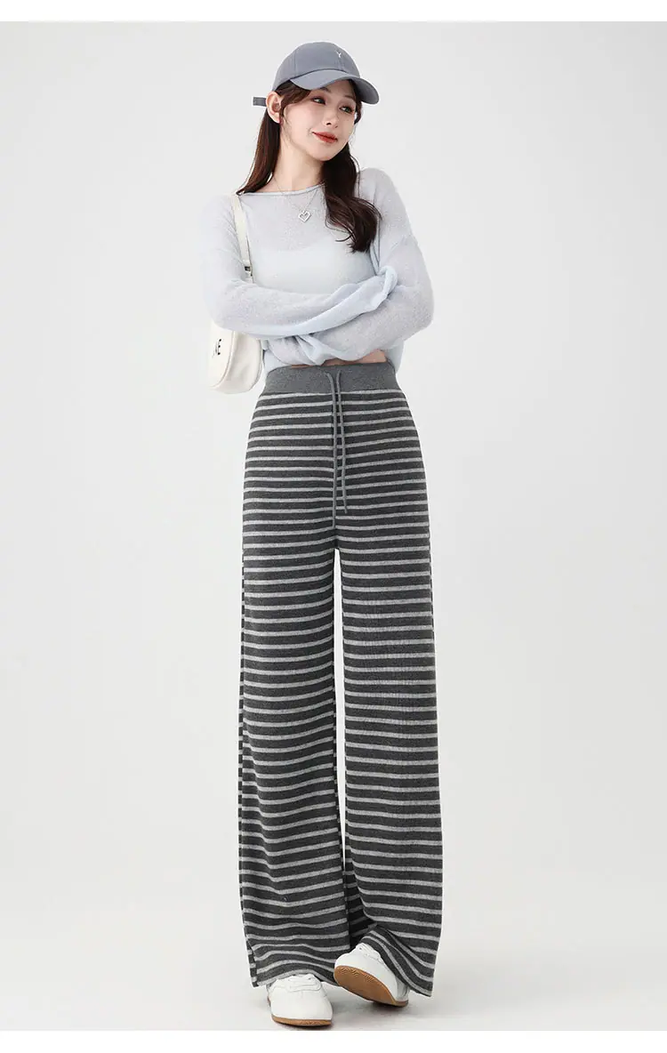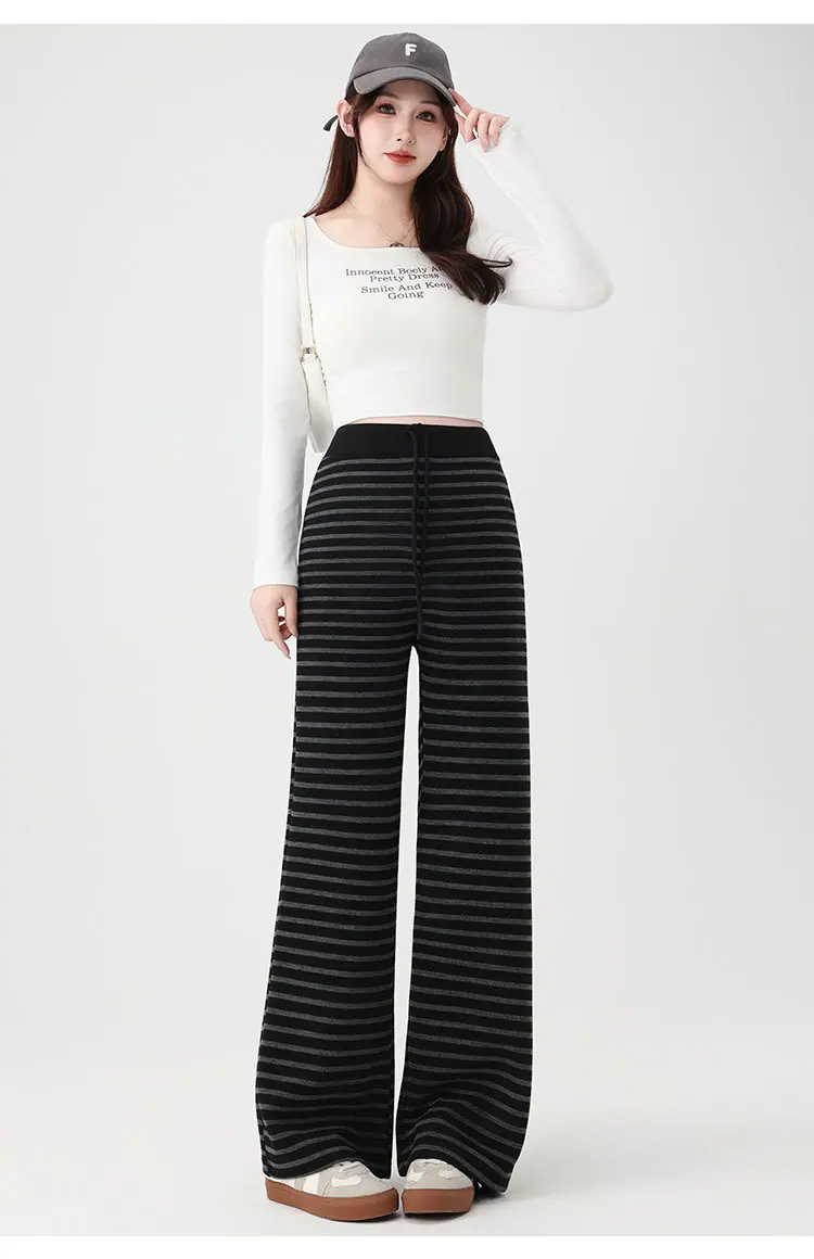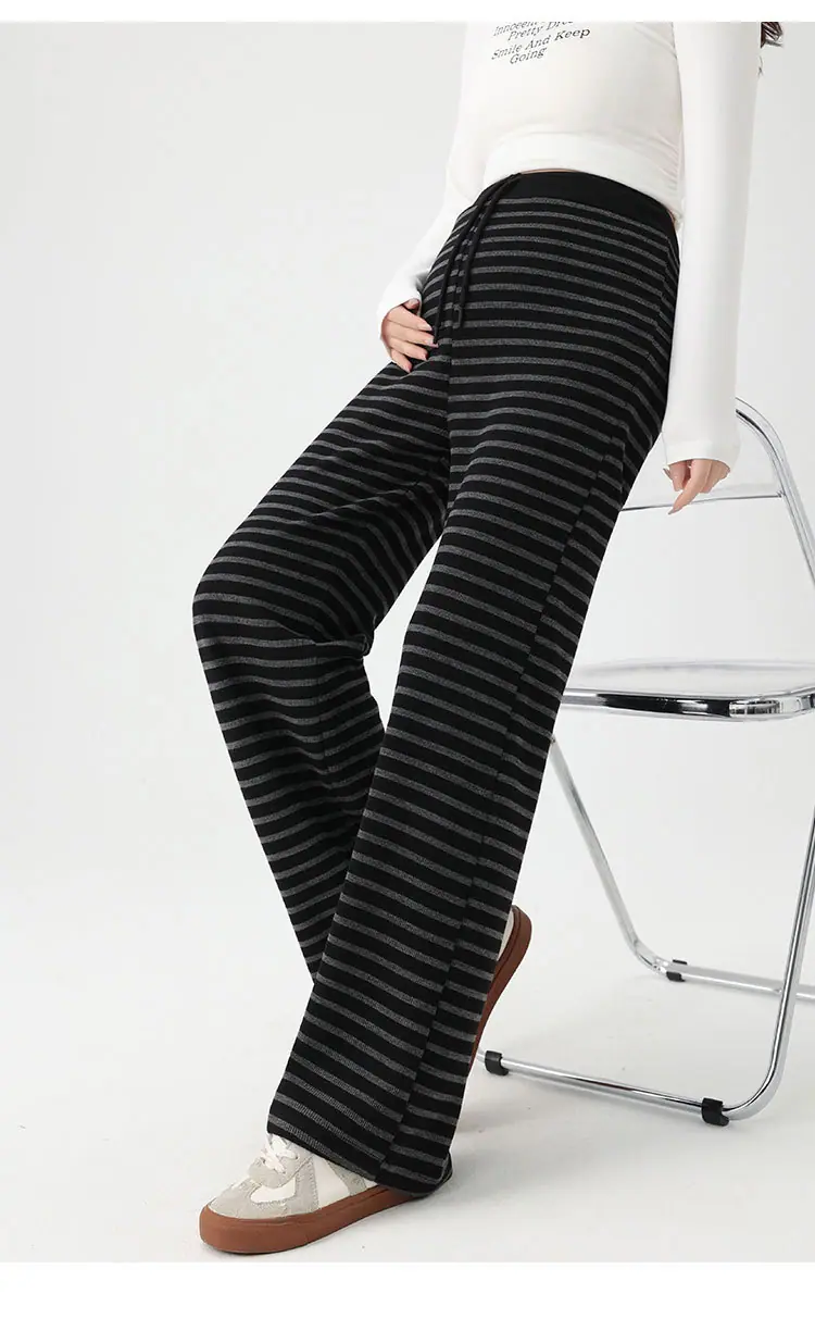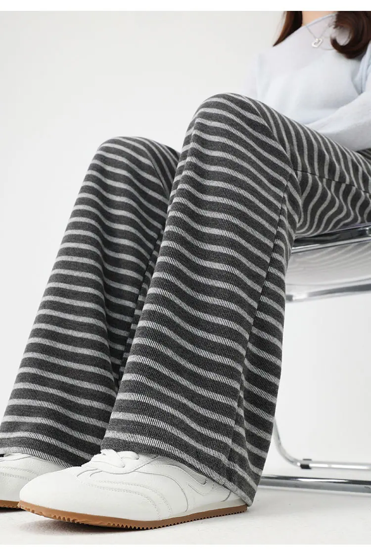 Pantalones rectos para mujeres embarazadas 2025 otoño e invierno nueva moda sin soporte para el vientre embarazo completo puede usar mamá moderna versátil pantalones de pierna ancha a rayas