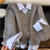 Compra Camisa de Punto de Color Contrastante Otoño e Invierno 2025 Camisa Falsa de Dos Piezas Superpuesta Diseño Coreano Único de Nicho Top de Punto al por mayor en Joom.pro