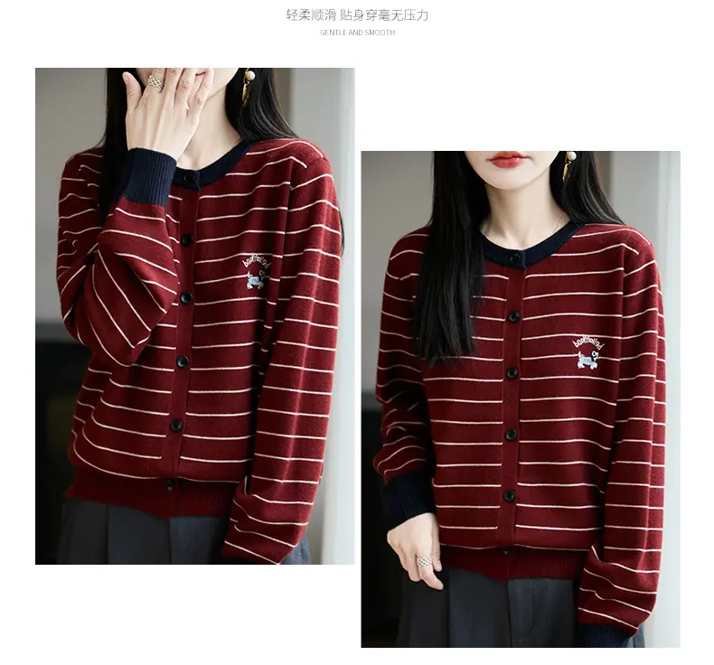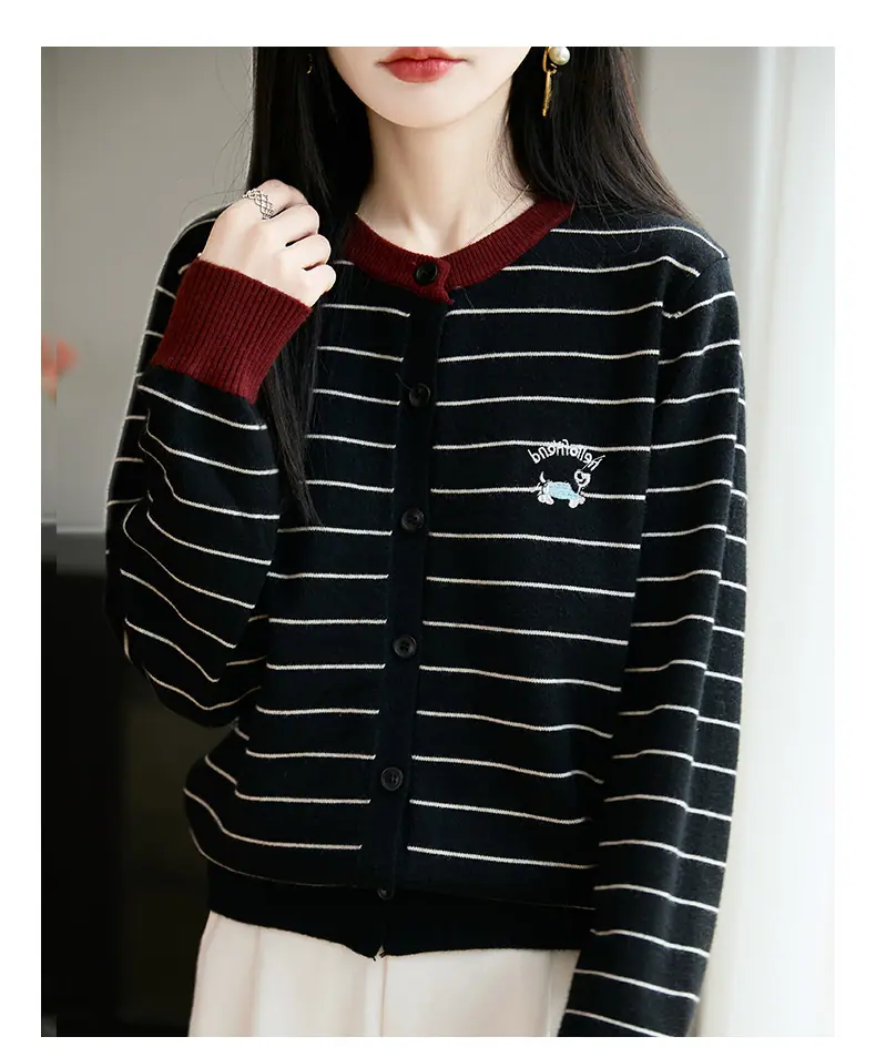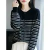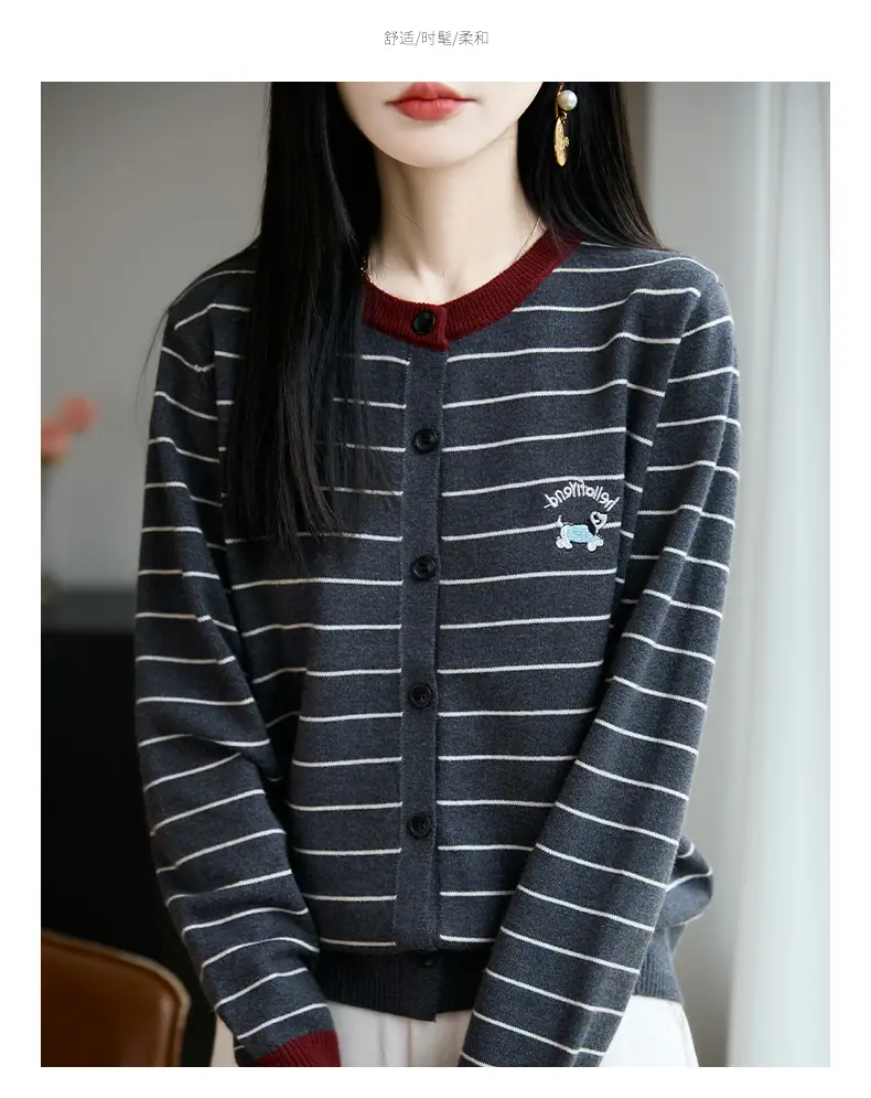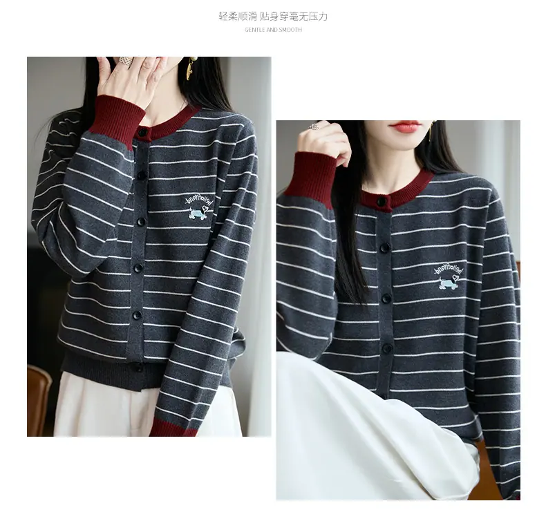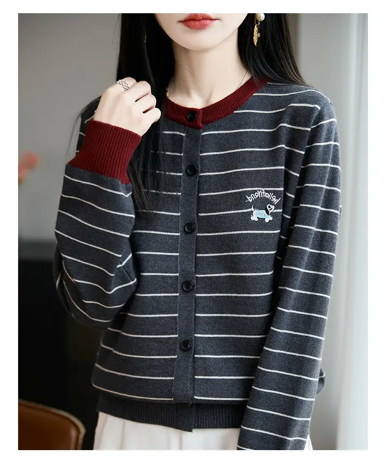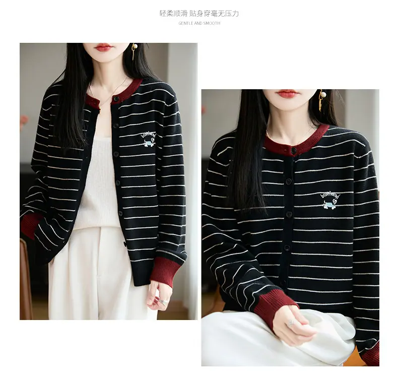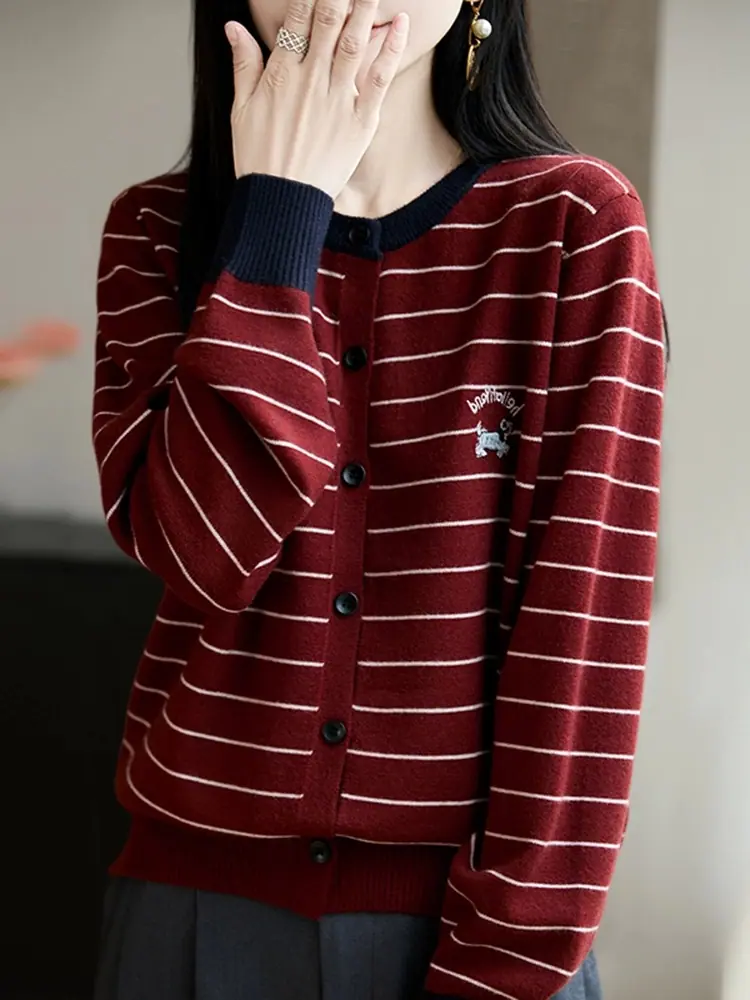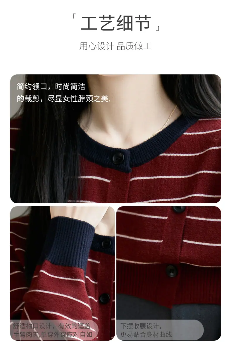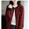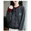 Abrigo cárdigan de punto de bloque de color a rayas estilo coreano para principios de otoño para mujer 2025 nuevo para primavera y otoño ropa exterior de moda para mujer top