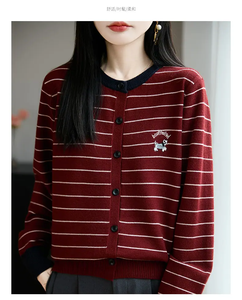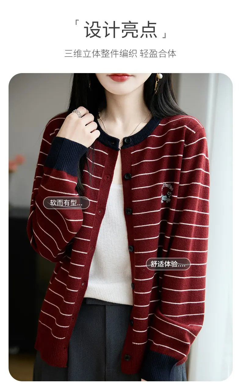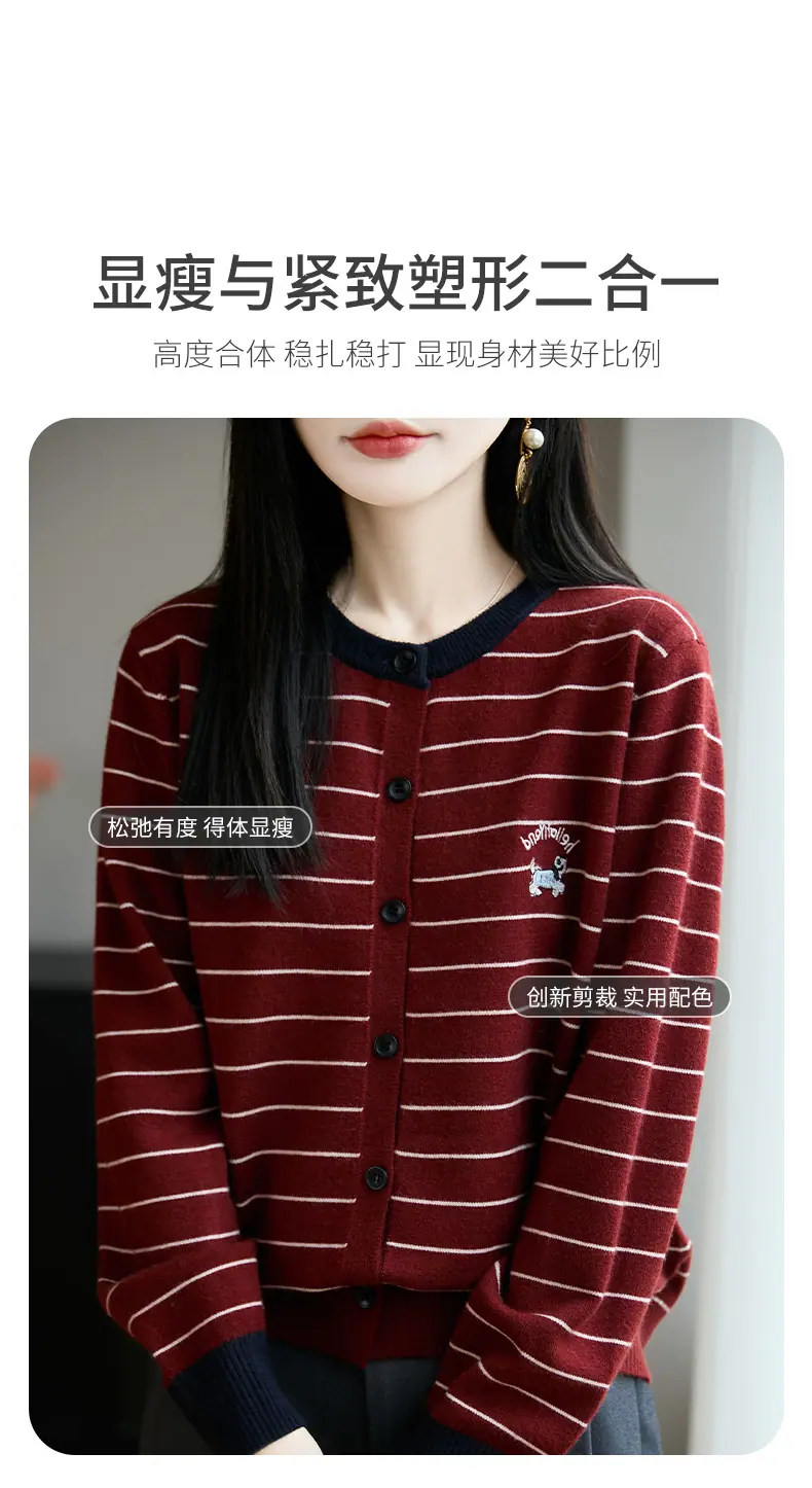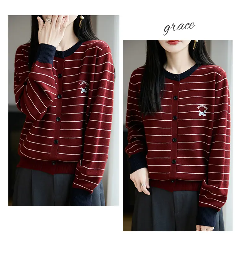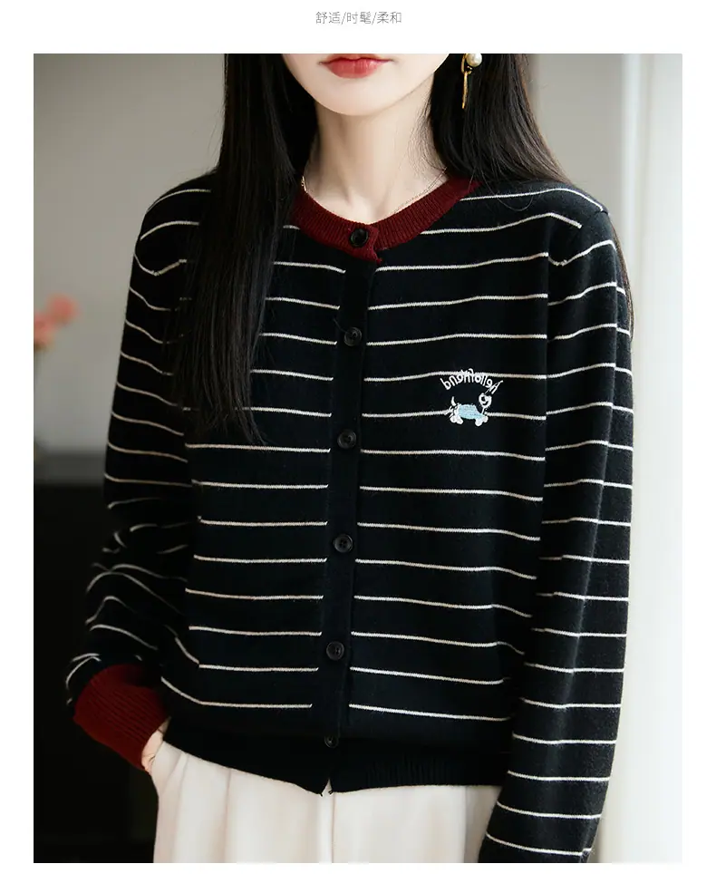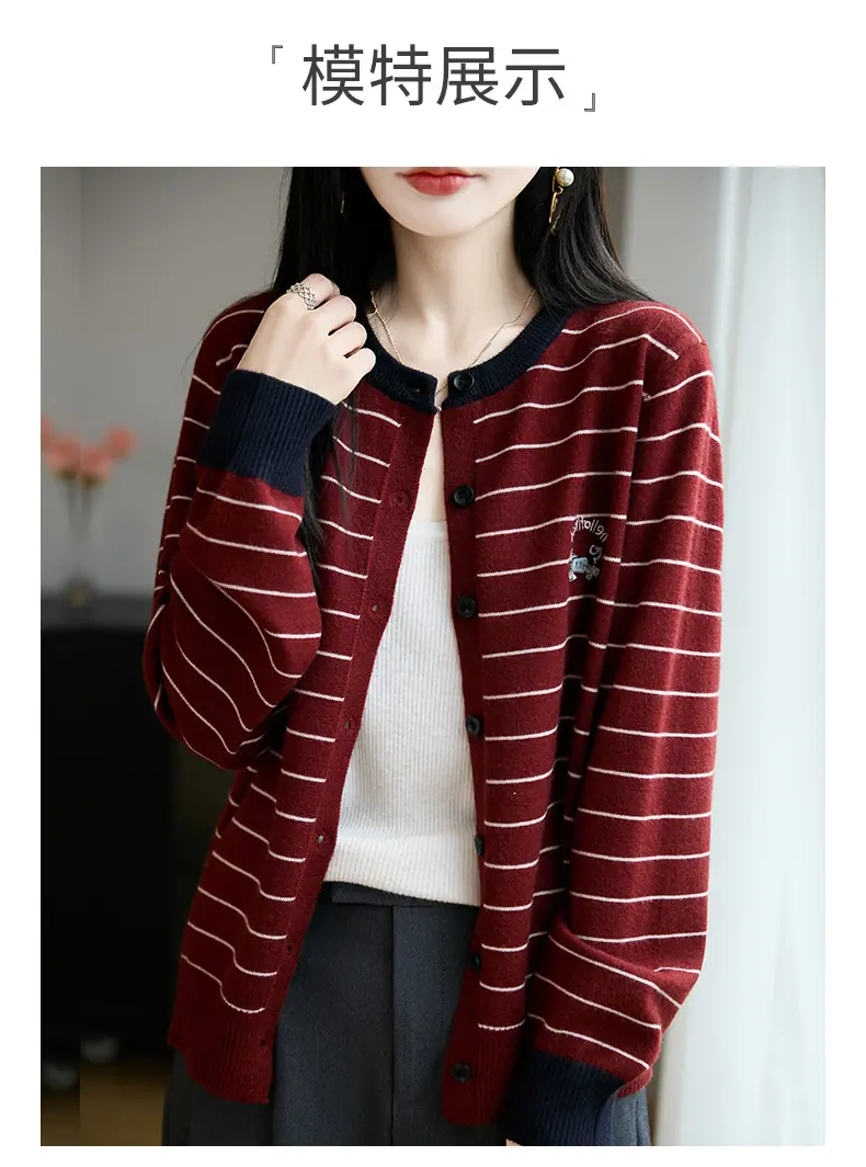 Abrigo cárdigan de punto de bloque de color a rayas estilo coreano para principios de otoño para mujer 2025 nuevo para primavera y otoño ropa exterior de moda para mujer top