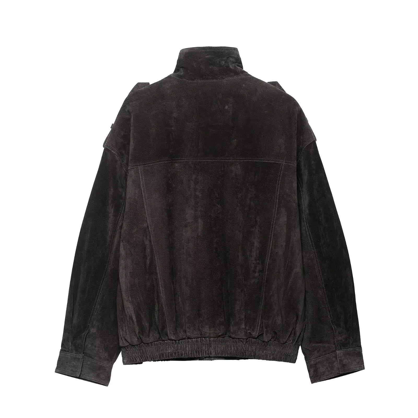 2025 Otoño Nuevo Europeo y Americano Transfronterizo Moda Urbana para Mujer Chaqueta de Cuero con Textura de Gamuza w085 3020