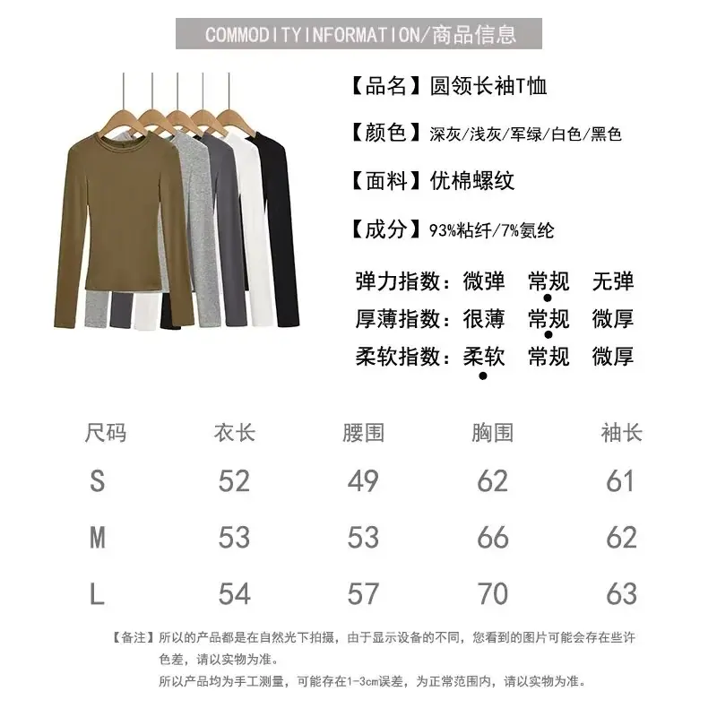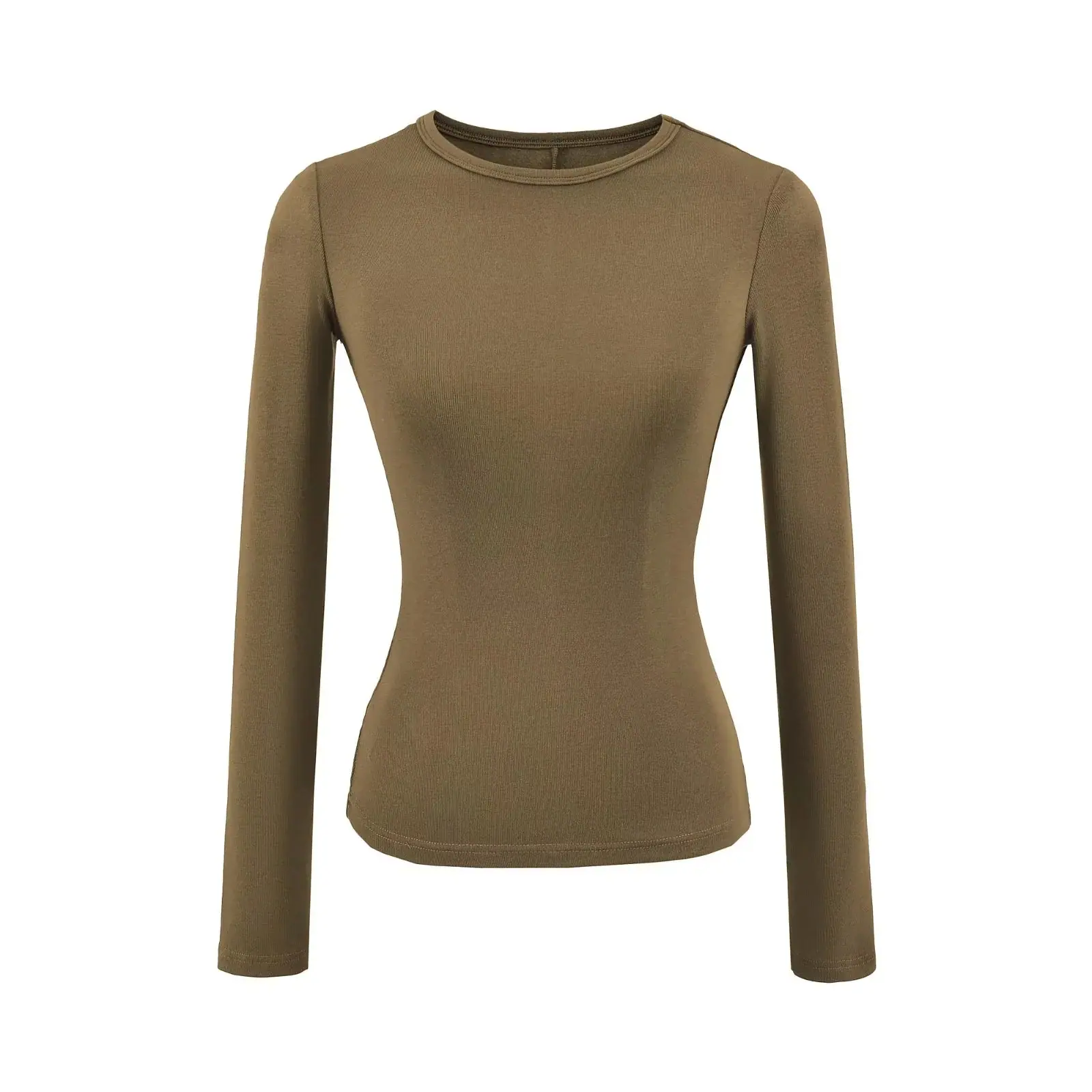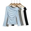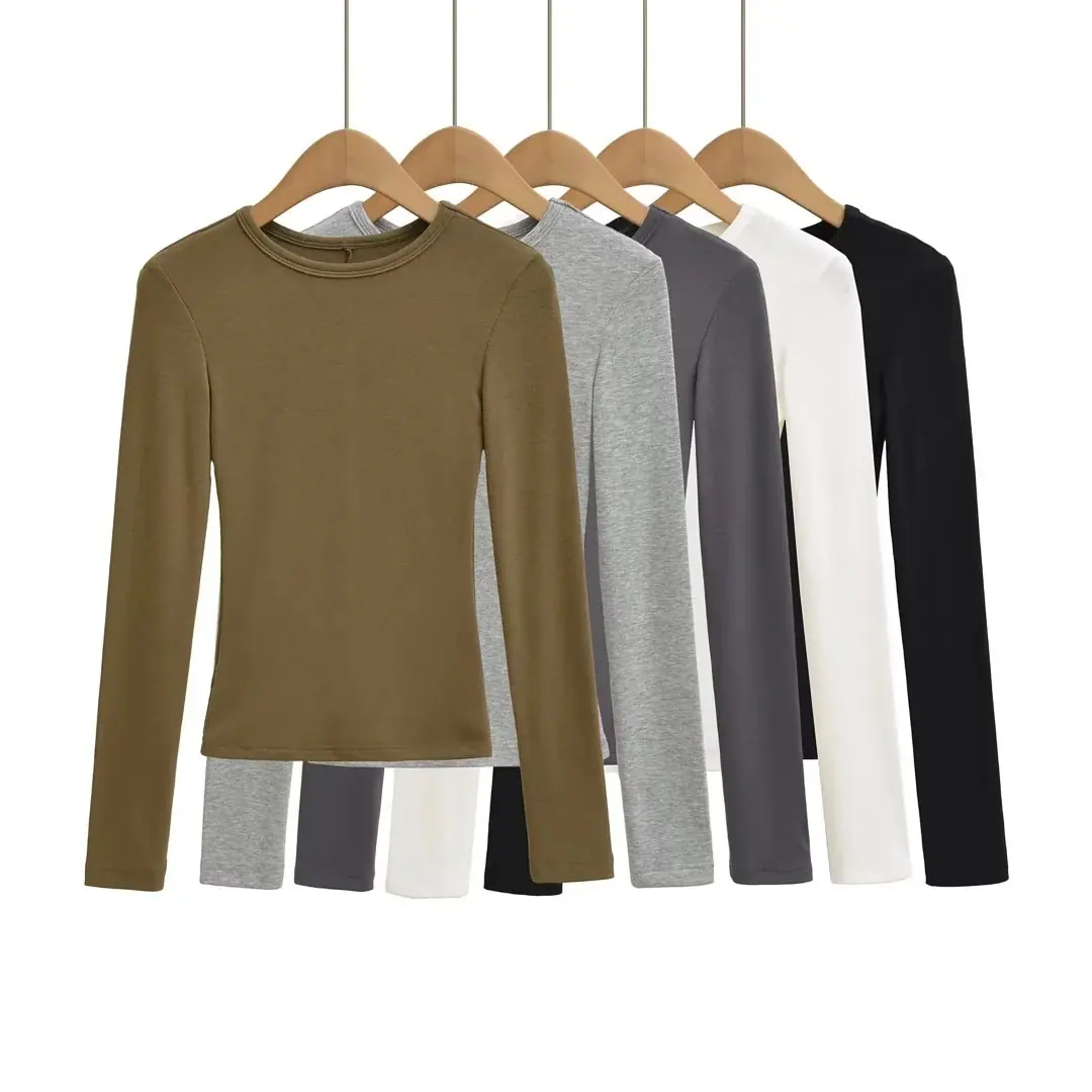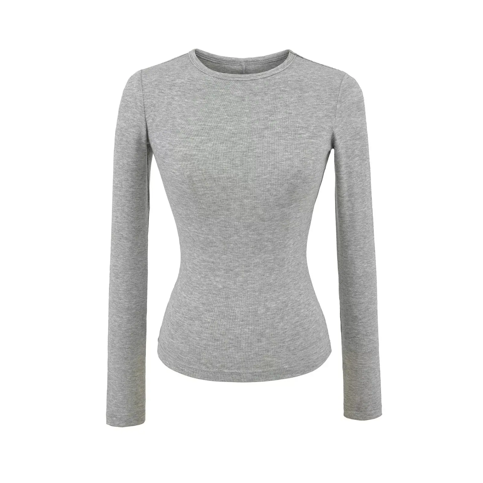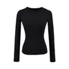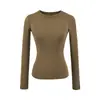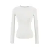 Playera de Manga Larga Color Sólido Cuello Redondo Mujer Verano Americano Chica Picante Bodycon Elástica Adelgazante Ajustada a la Cintura Hombro Recto Top Básico