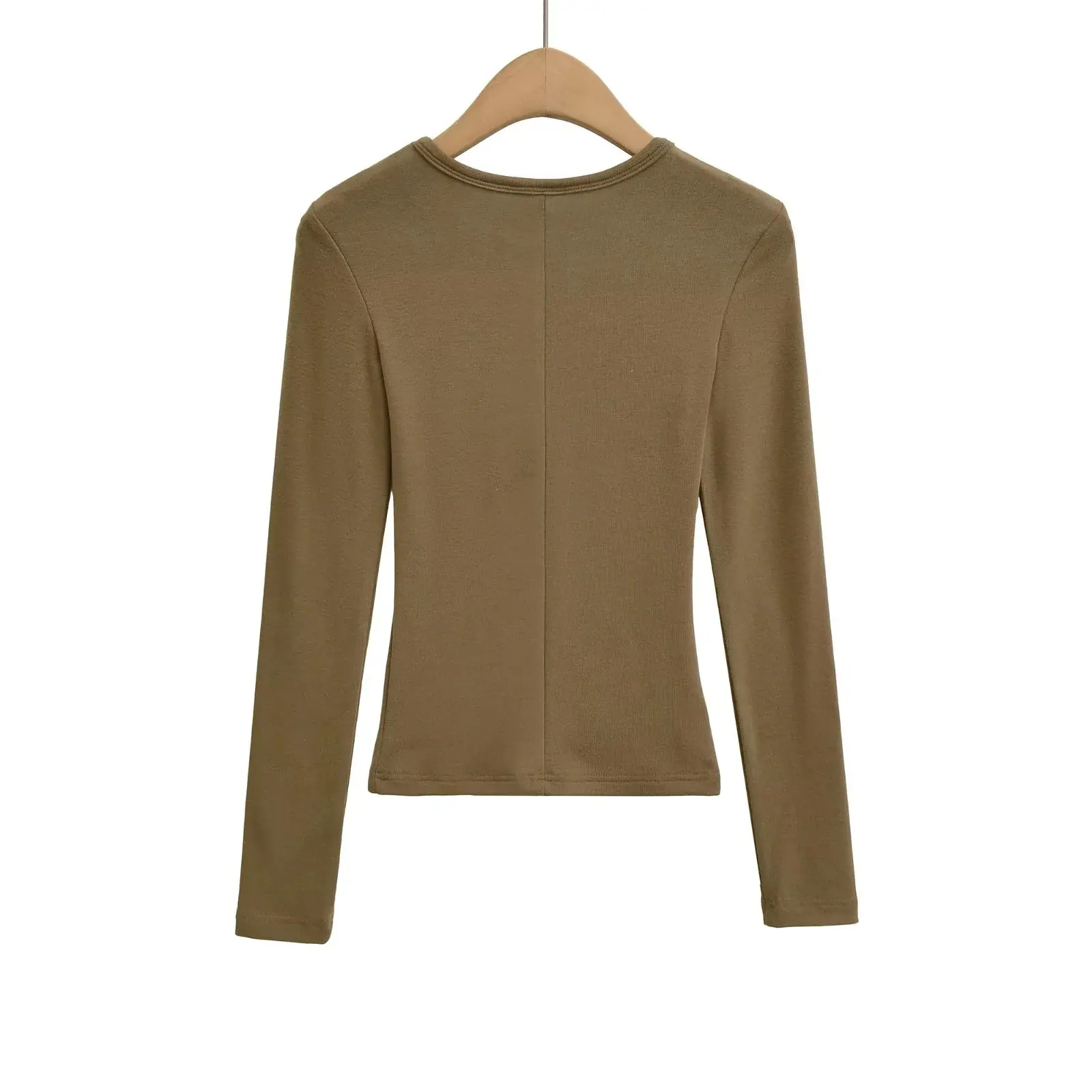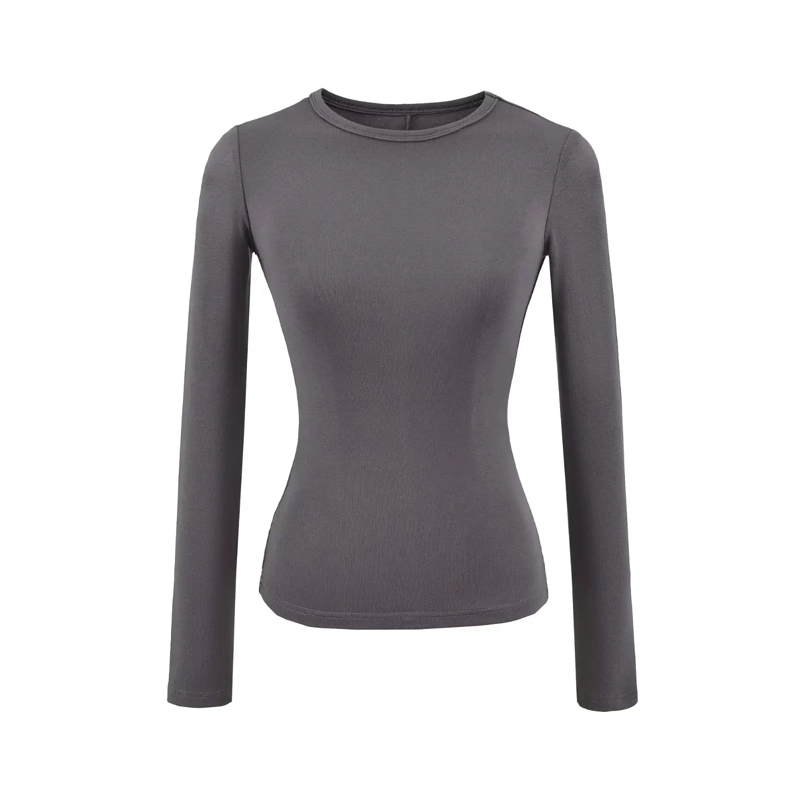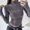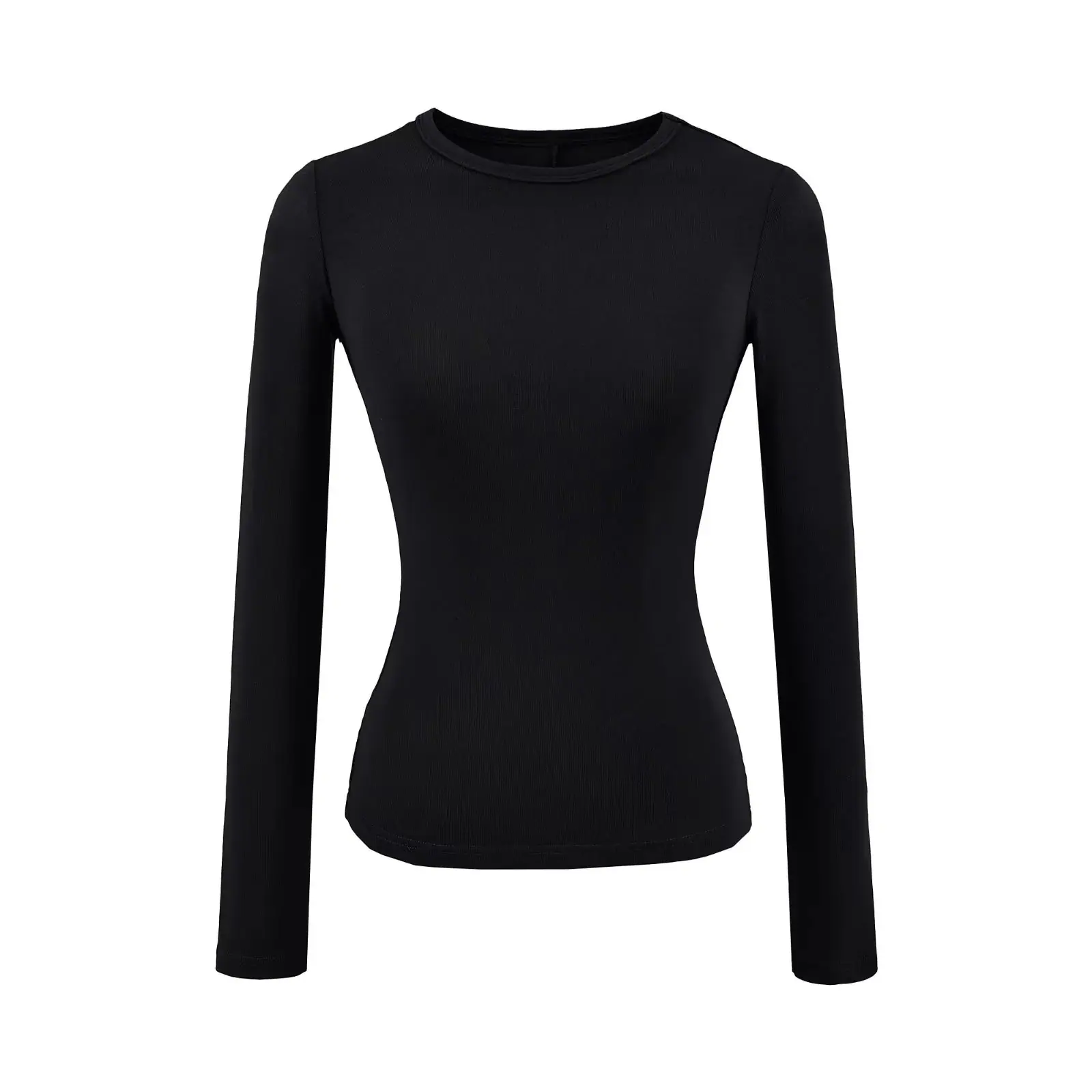 Playera de Manga Larga Color Sólido Cuello Redondo Mujer Verano Americano Chica Picante Bodycon Elástica Adelgazante Ajustada a la Cintura Hombro Recto Top Básico