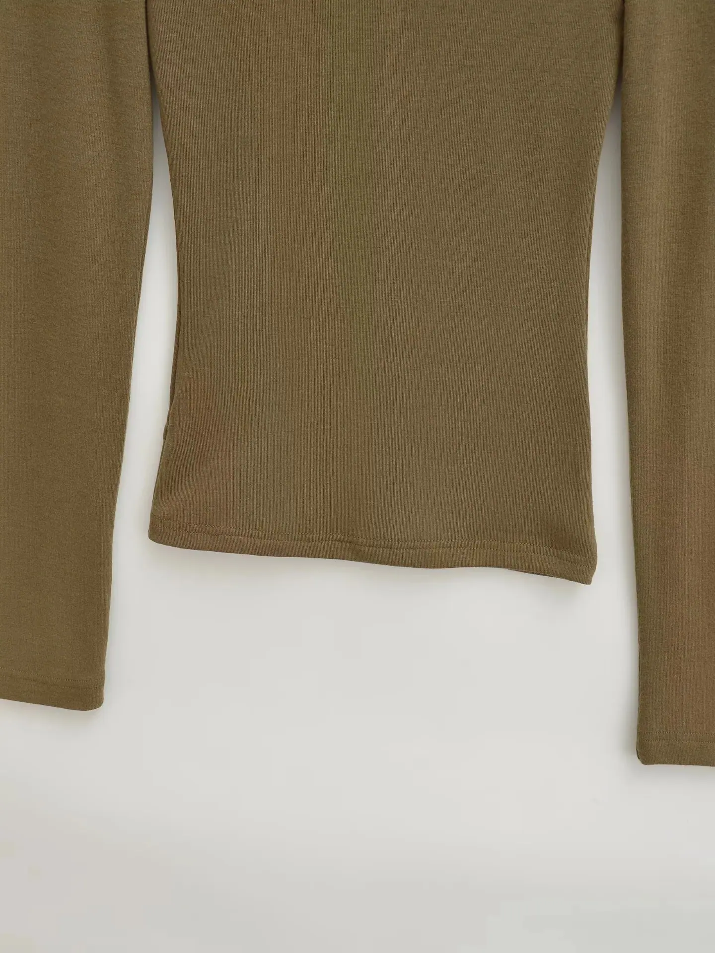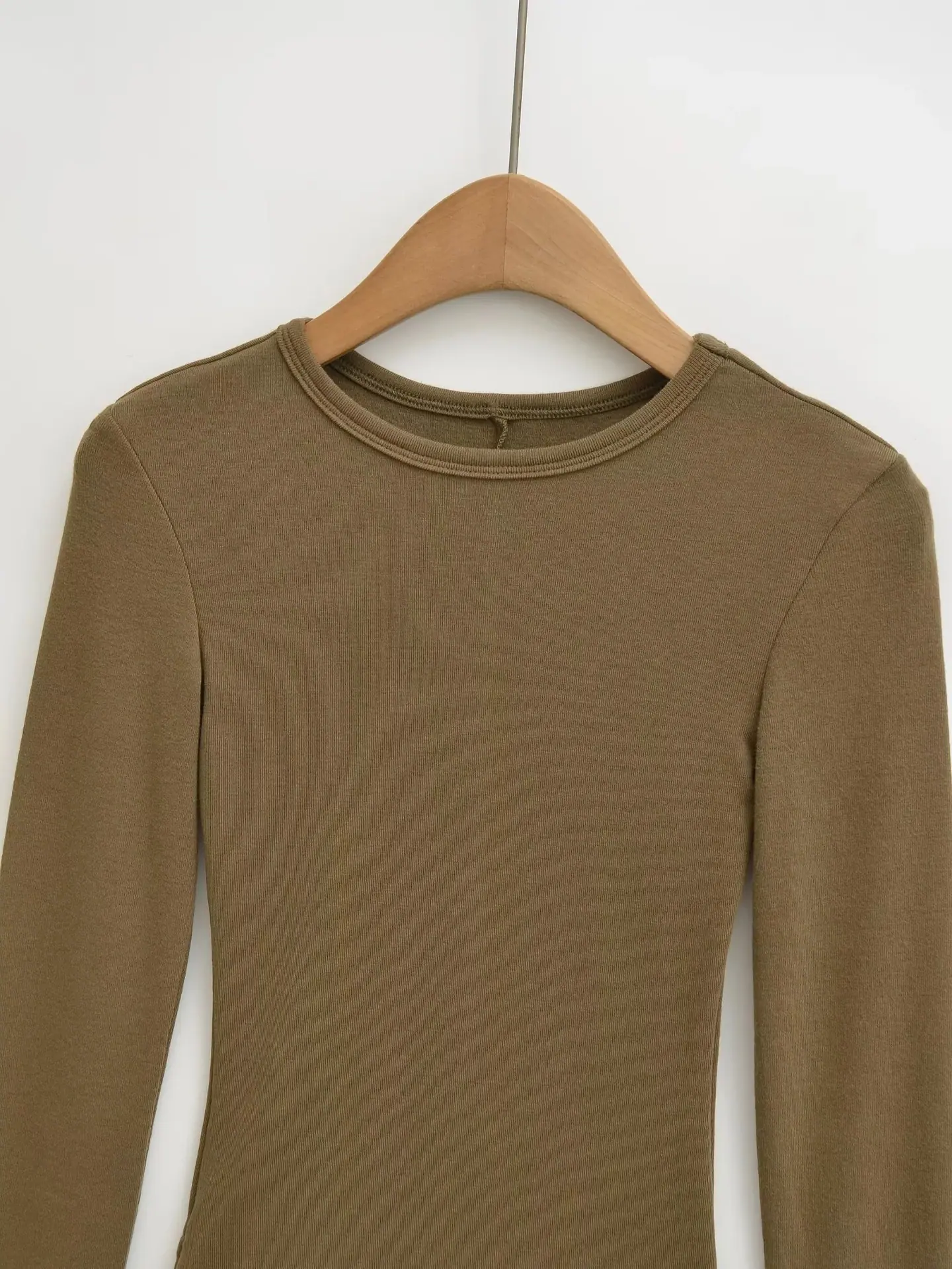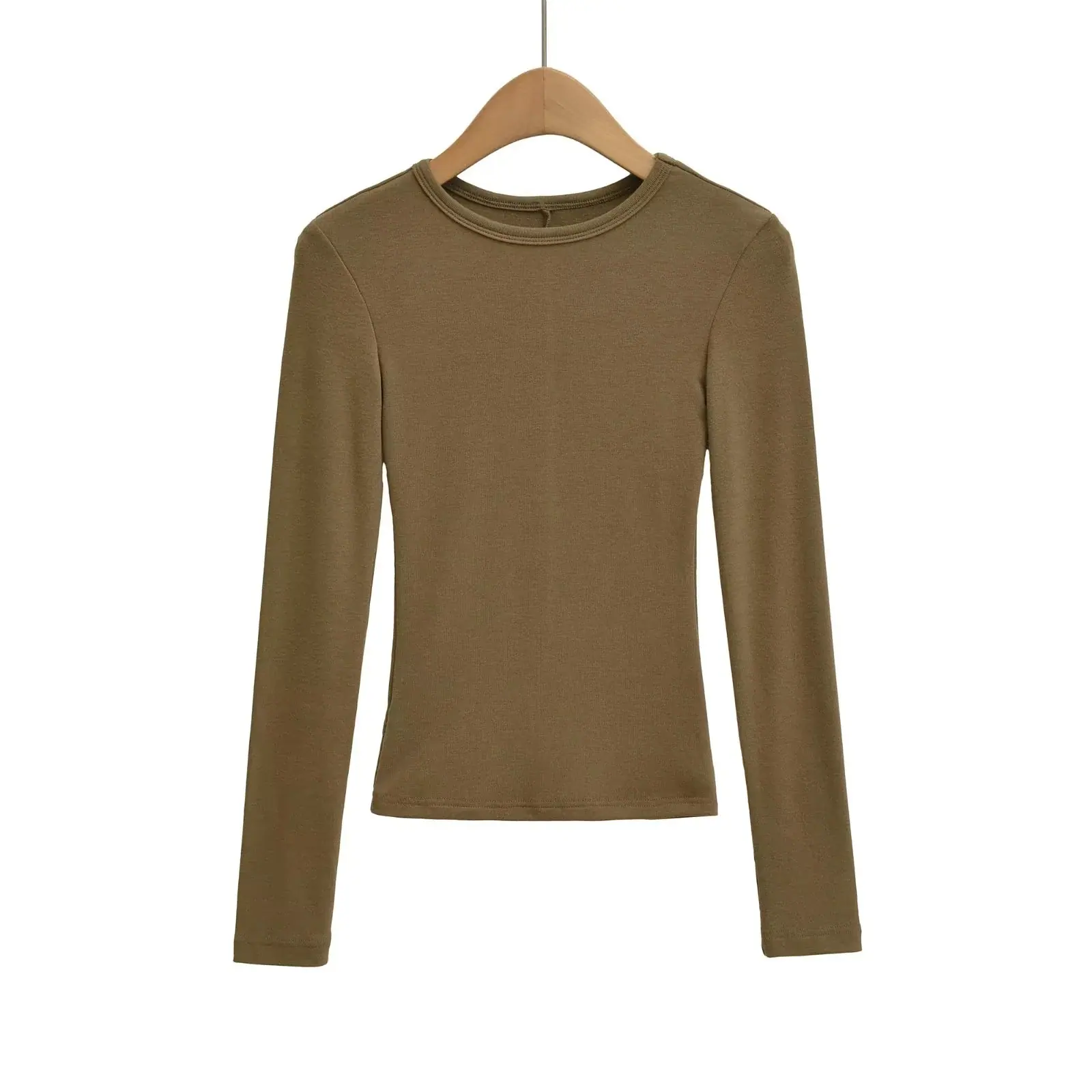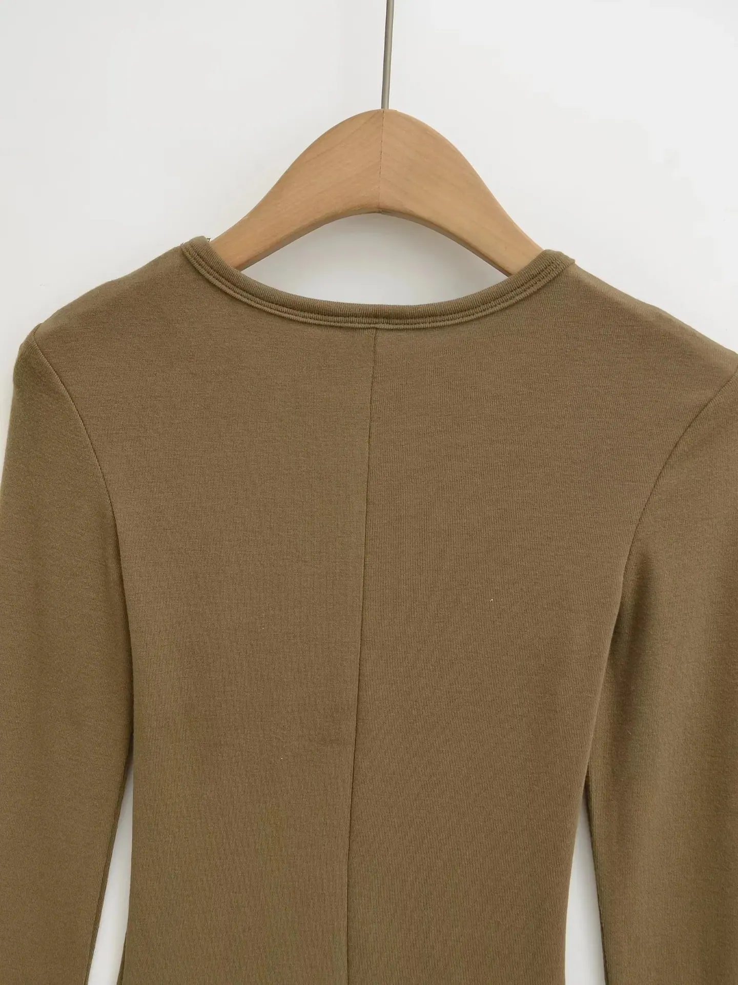 Playera de Manga Larga Color Sólido Cuello Redondo Mujer Verano Americano Chica Picante Bodycon Elástica Adelgazante Ajustada a la Cintura Hombro Recto Top Básico