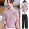 Blusa de Tricô de Outono da Mamãe 2025 Nova Primavera e Outono Elegante para Mulheres de Meia-Idade e Idosas Conjunto de Camiseta de Manga Longa