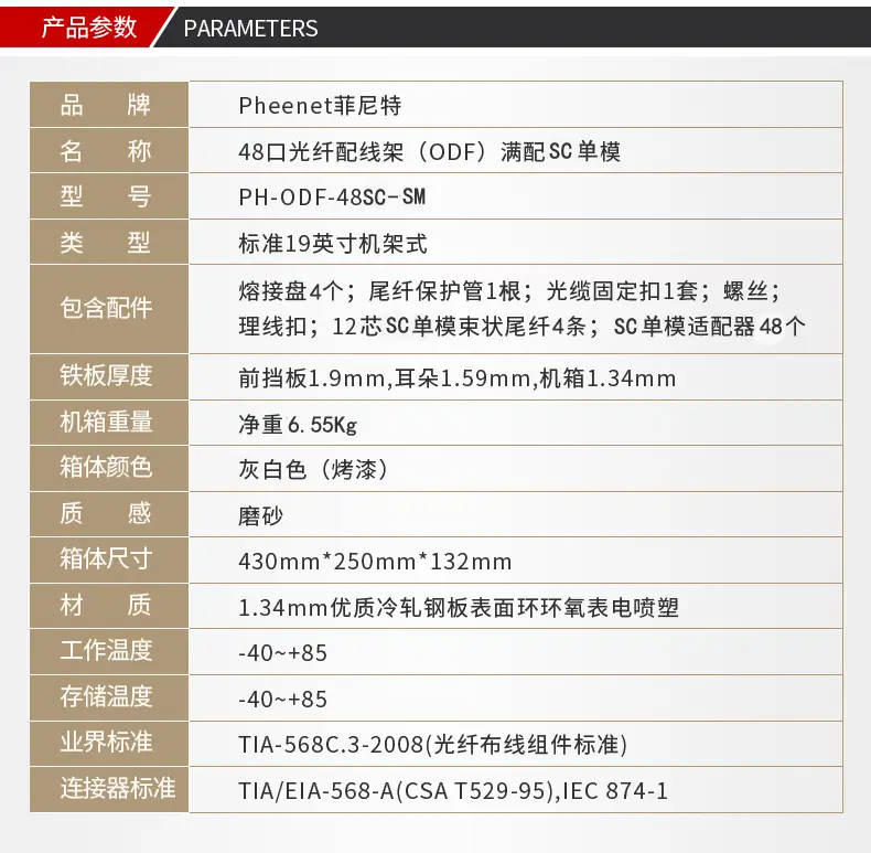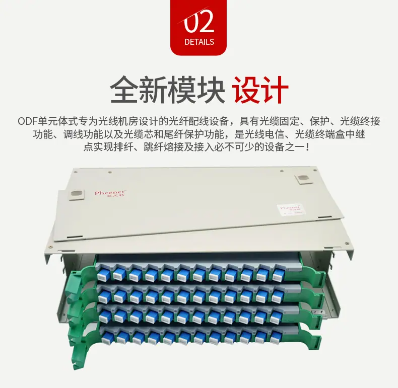 Bastidor de unidad de rack de marco de distribución de fibra óptica ODF monomodo SC de 48 núcleos finitos, caja de distribución de placa de fibra de fusión, grado telecomunicaciones