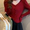 Camiseta de Punto de Manga Larga para Mujer con Cuello Colgante Nueva Camiseta Base de Diseño Interior para Primavera y Otoño Suéter Ajustado Combinable Top Corto
