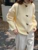Chaqueta de punto con botones de cuerno y cuello redondo estilo coreano para mujer, Otoño e Invierno, Nueva, Holgada, Retro, Color Sólido, Cardigan Grueso