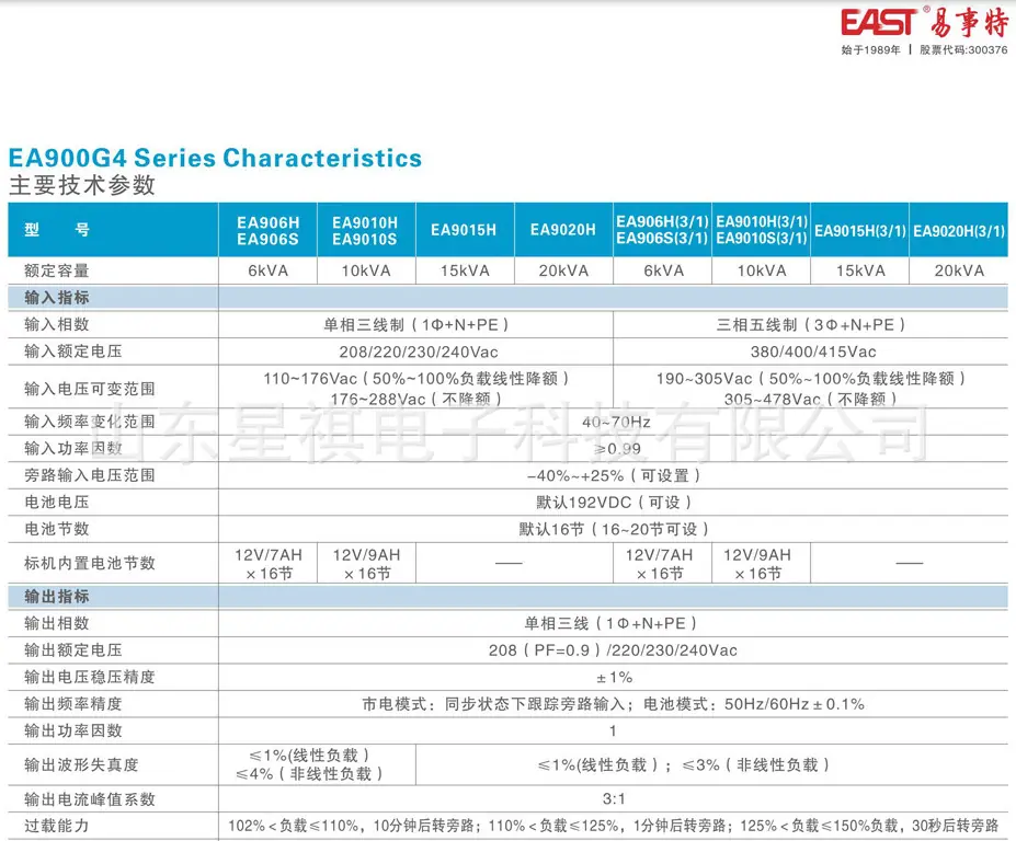 East UPS Fuente de Alimentación Ininterrumpida EA9020H Entrada Trifásica Salida Monofásica Torre 20KVA Sala de Cómputo Voltaje Estabilizado Suministro de Energía de Emergencia