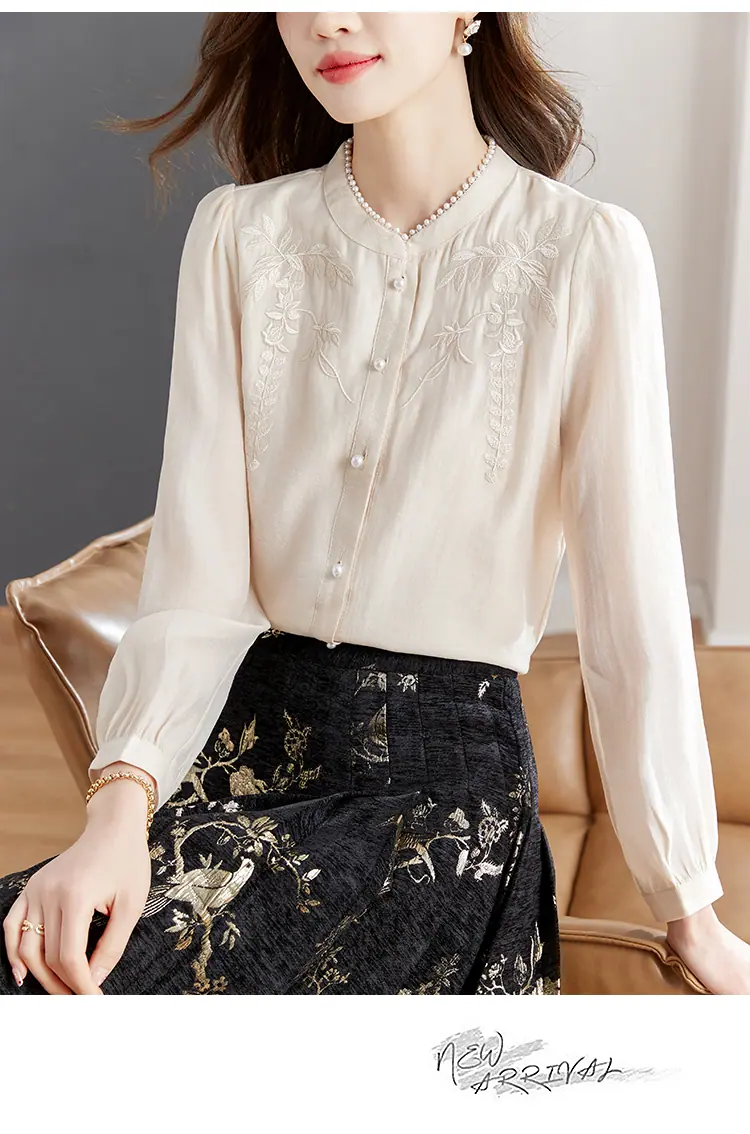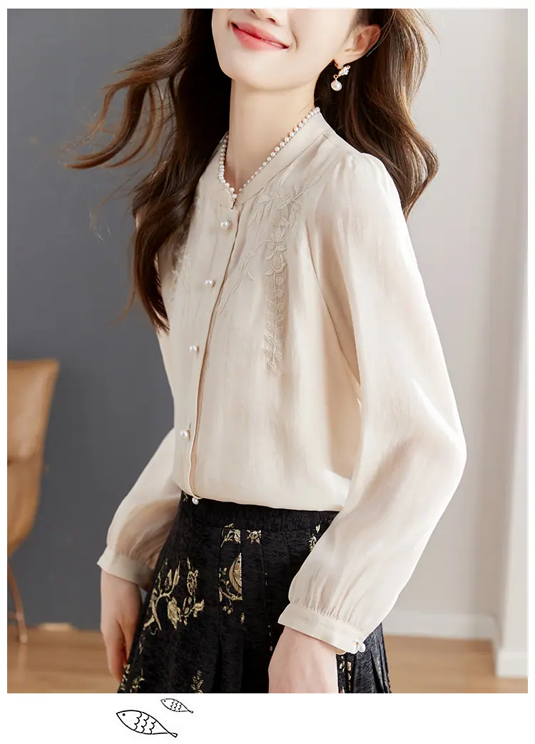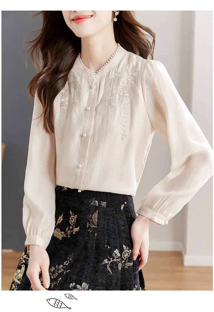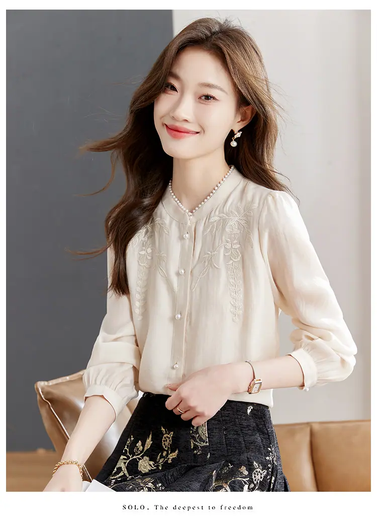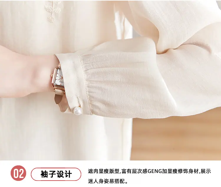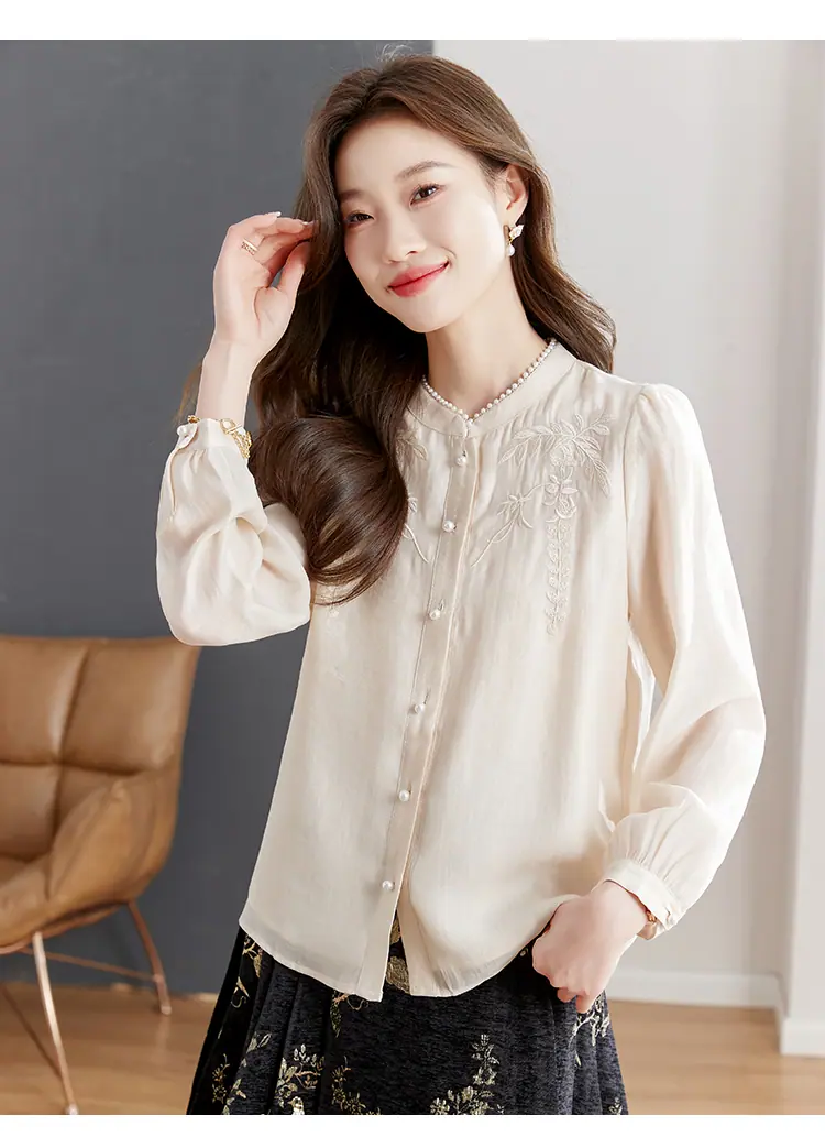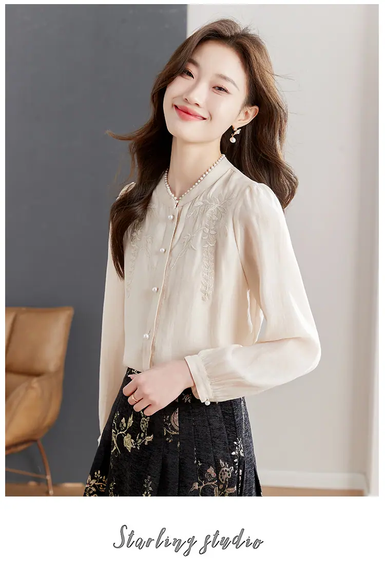 Moda Nueva Camisa de Chifón de Manga Larga China para Mujer Ropa de Primavera Principios de la Primavera 2025 Nueva Camisa Bordada Estilo Nacional Top