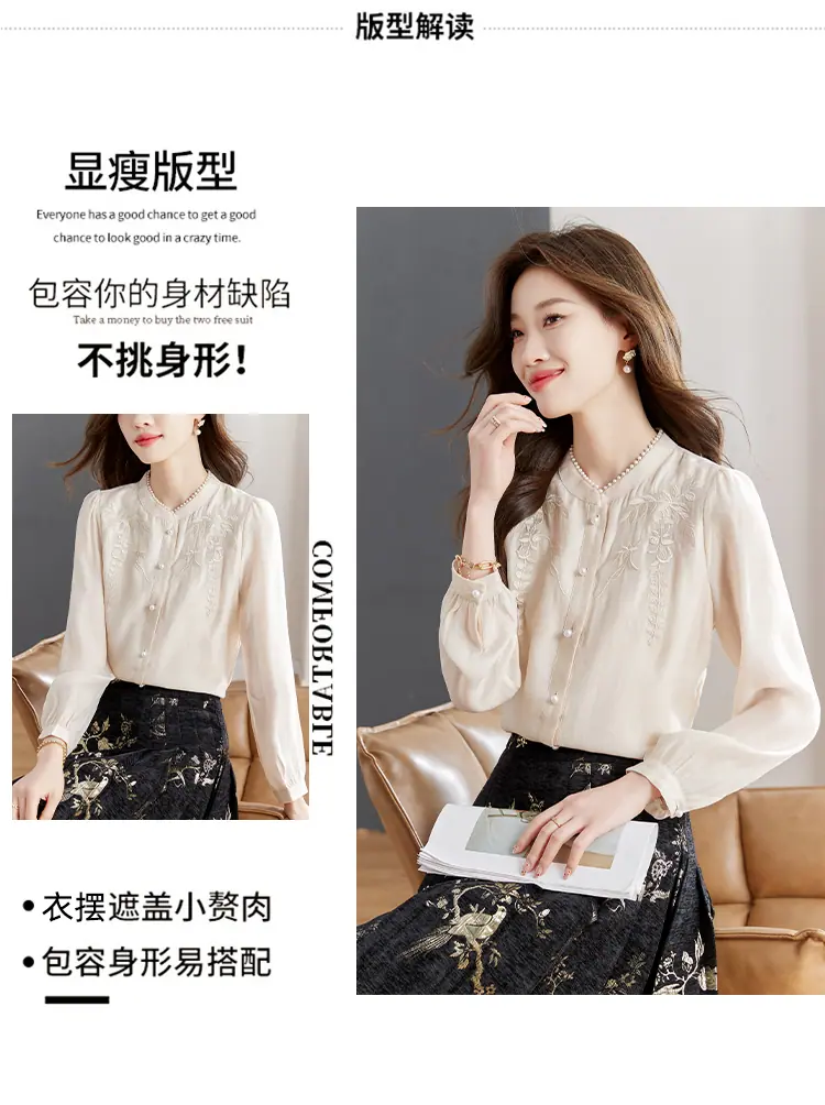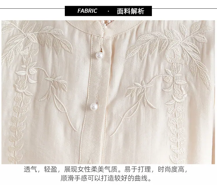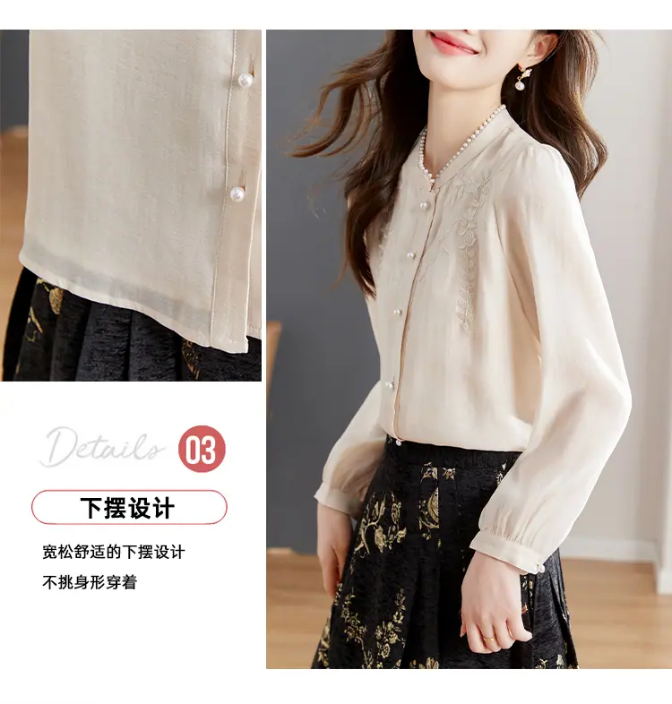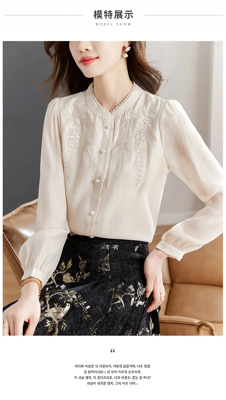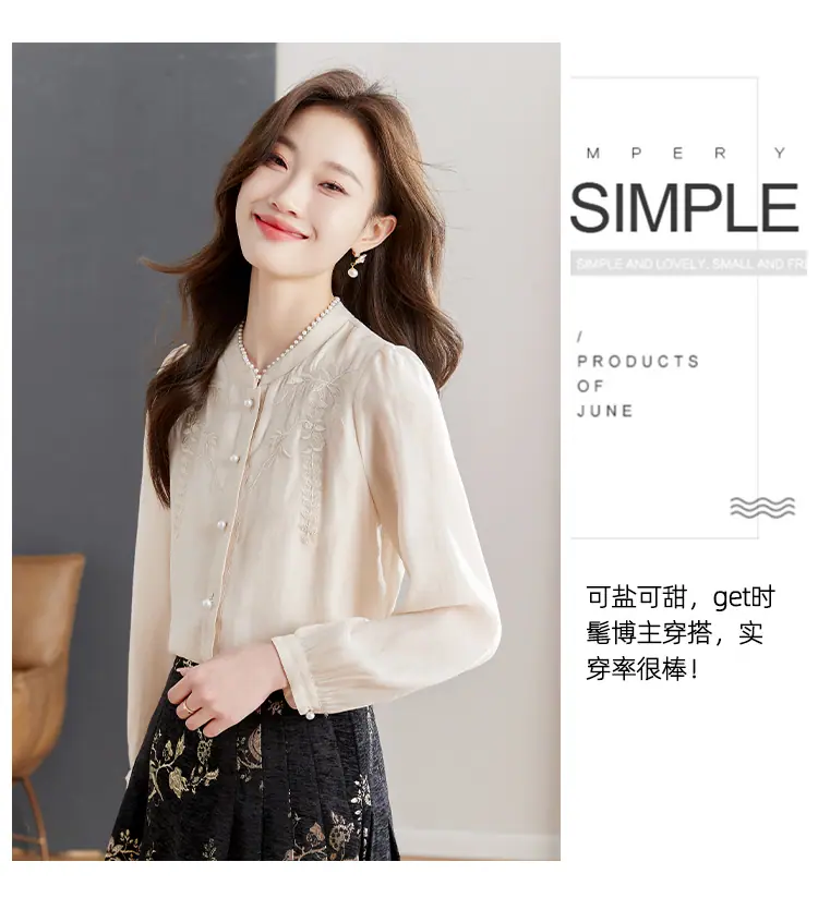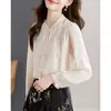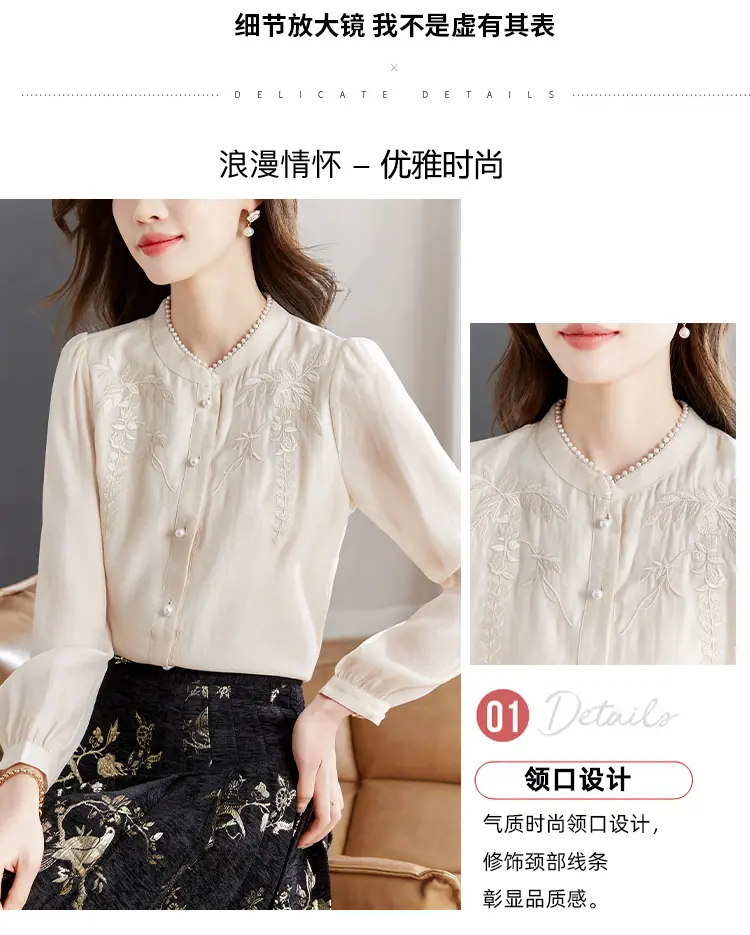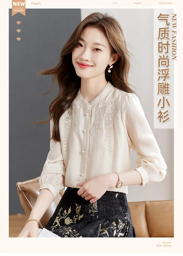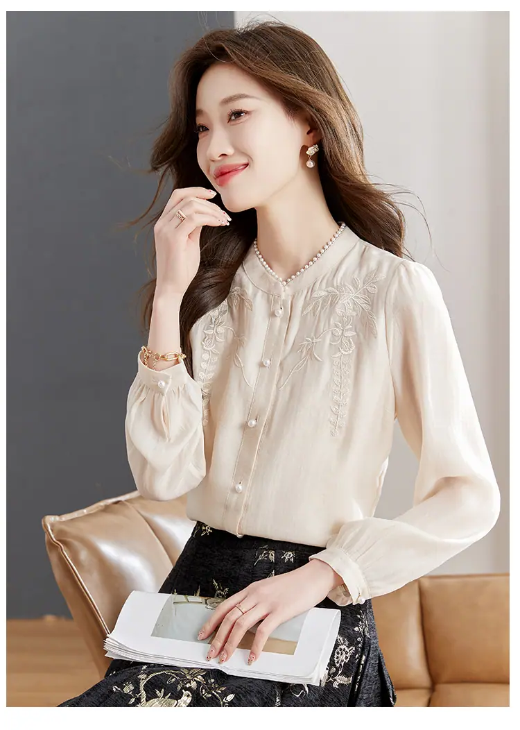 Moda Nueva Camisa de Chifón de Manga Larga China para Mujer Ropa de Primavera Principios de la Primavera 2025 Nueva Camisa Bordada Estilo Nacional Top