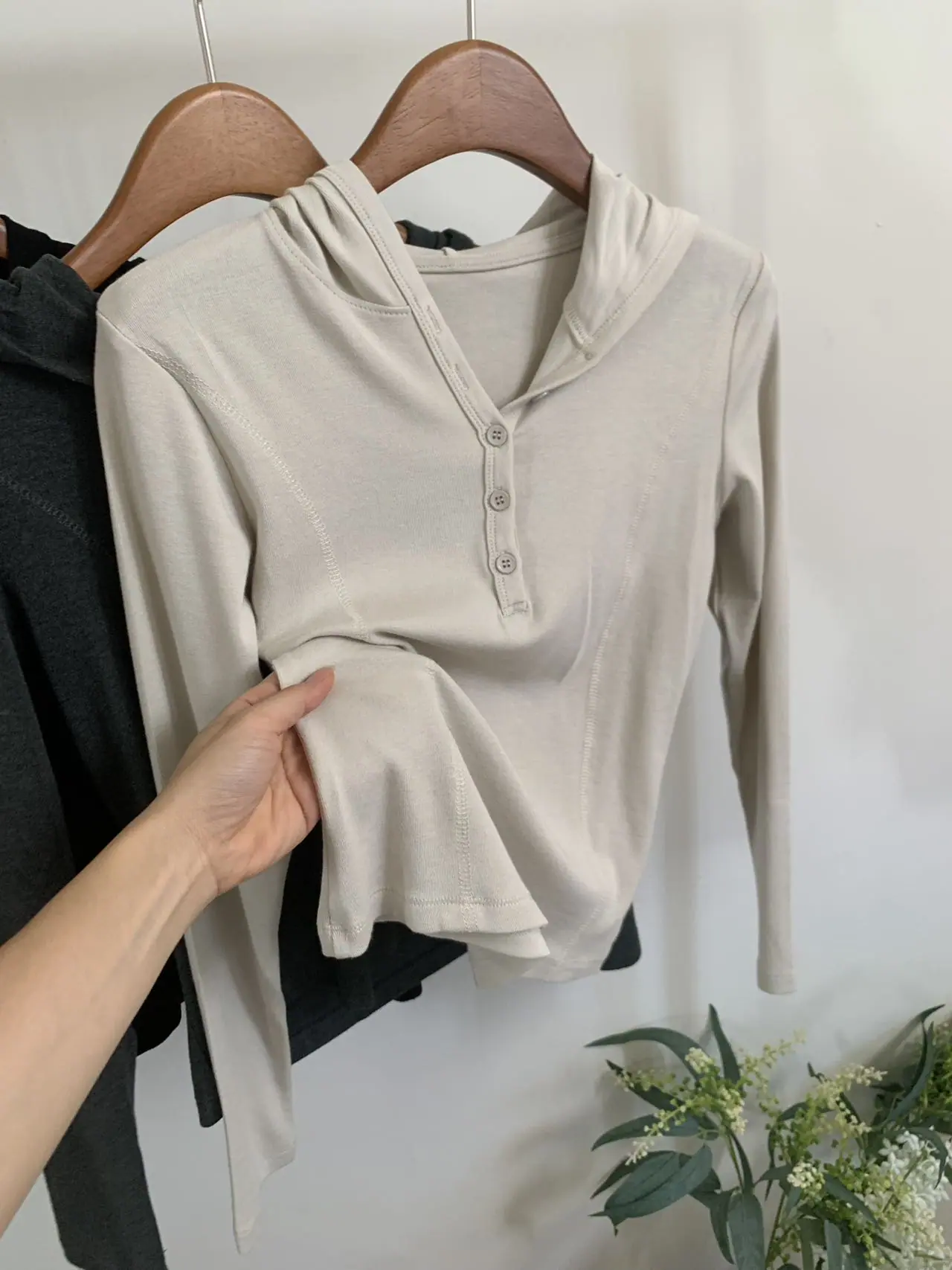 Playeras de otoño e invierno, camisetas básicas con capucha de terciopelo nube para mujer, nuevas camisetas de manga larga ajustadas de otoño e invierno